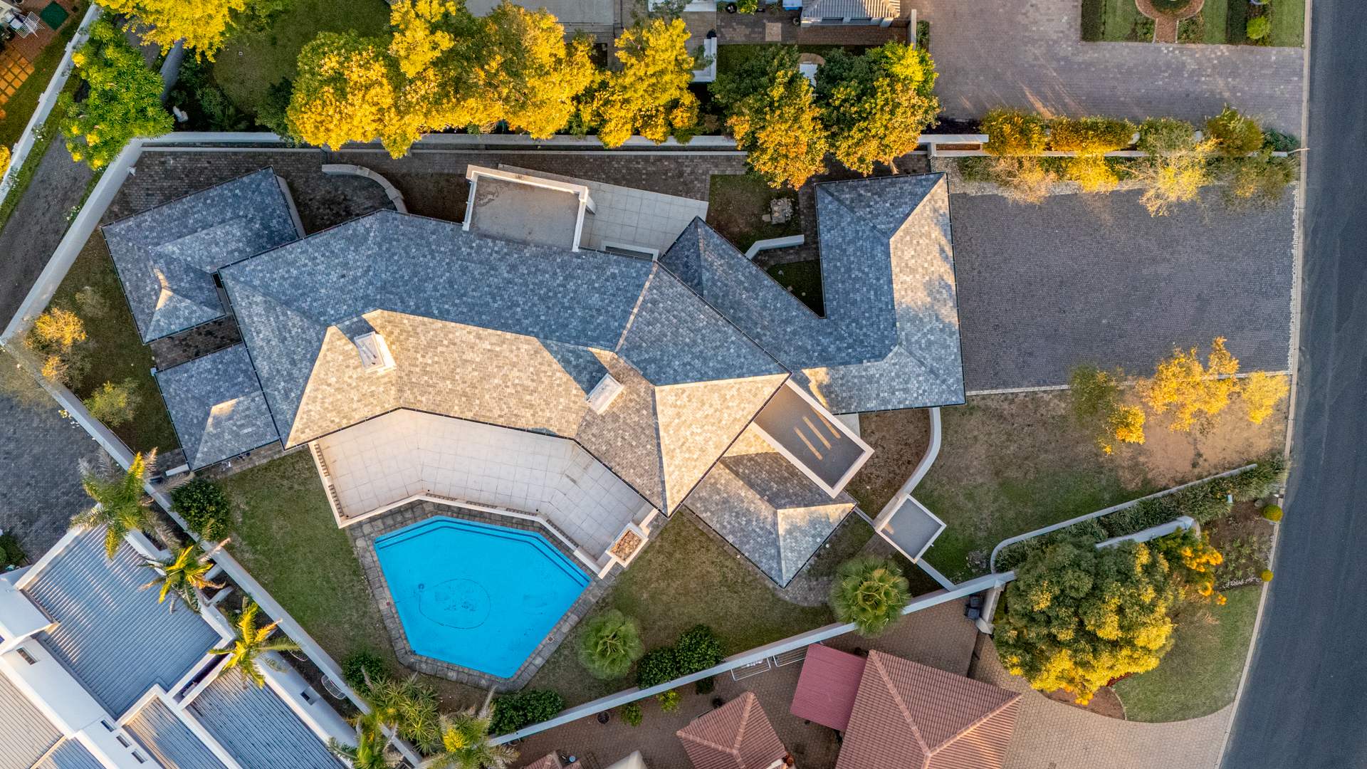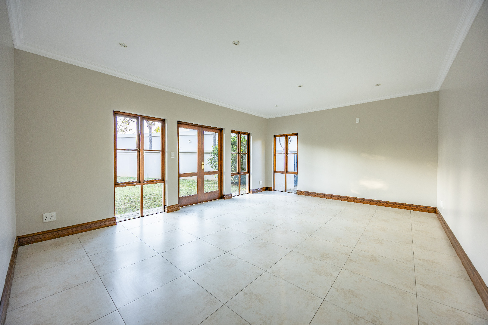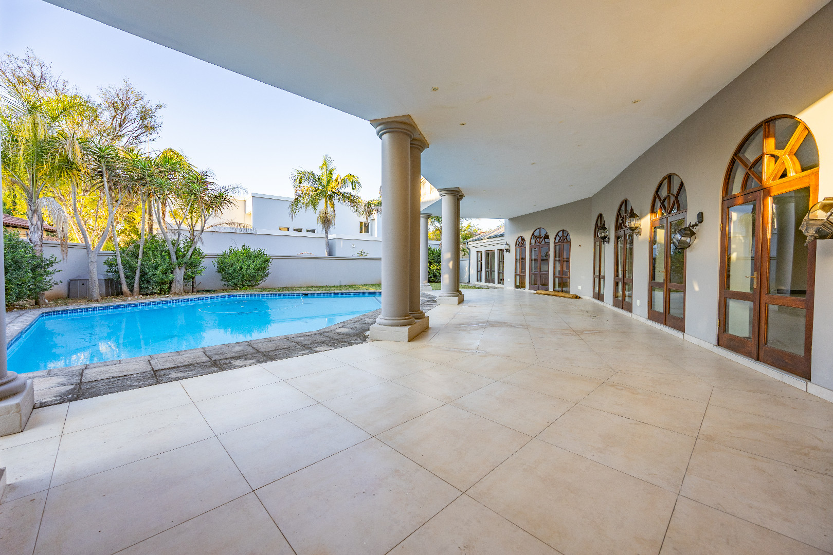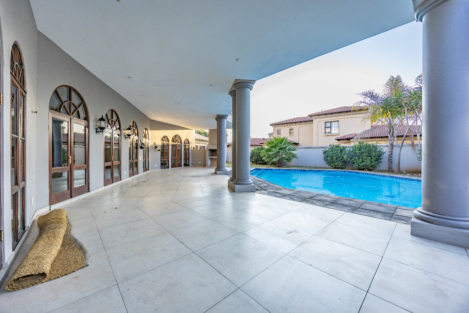 Designed for entertaining, the home opens out to a beautifully arranged outdoor area complete with a built-in braai, swimming pool, and covered alfresco dining space. Two domestic quarters with exterior access provide added flexibility and convenience for extended households or live-in staff.