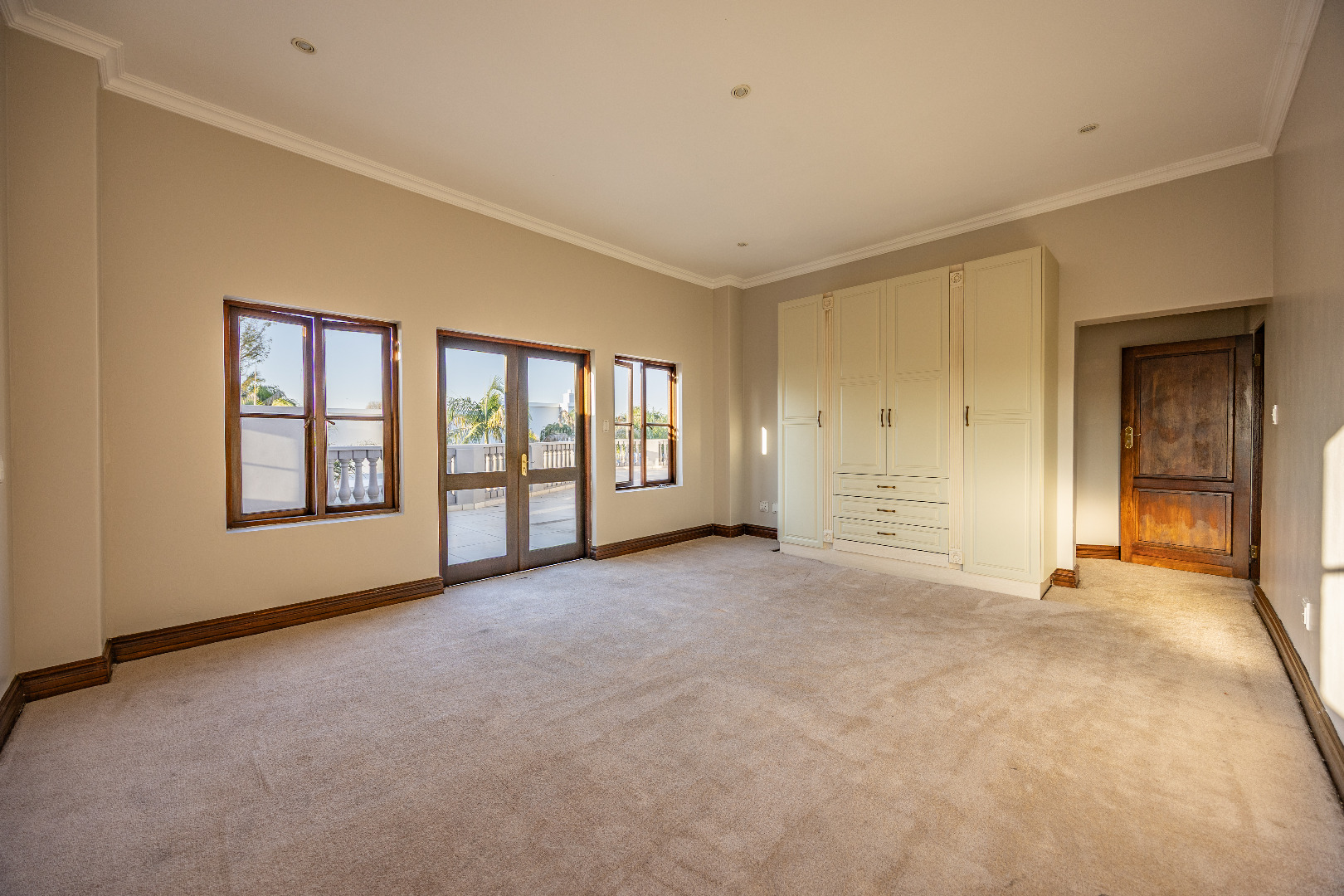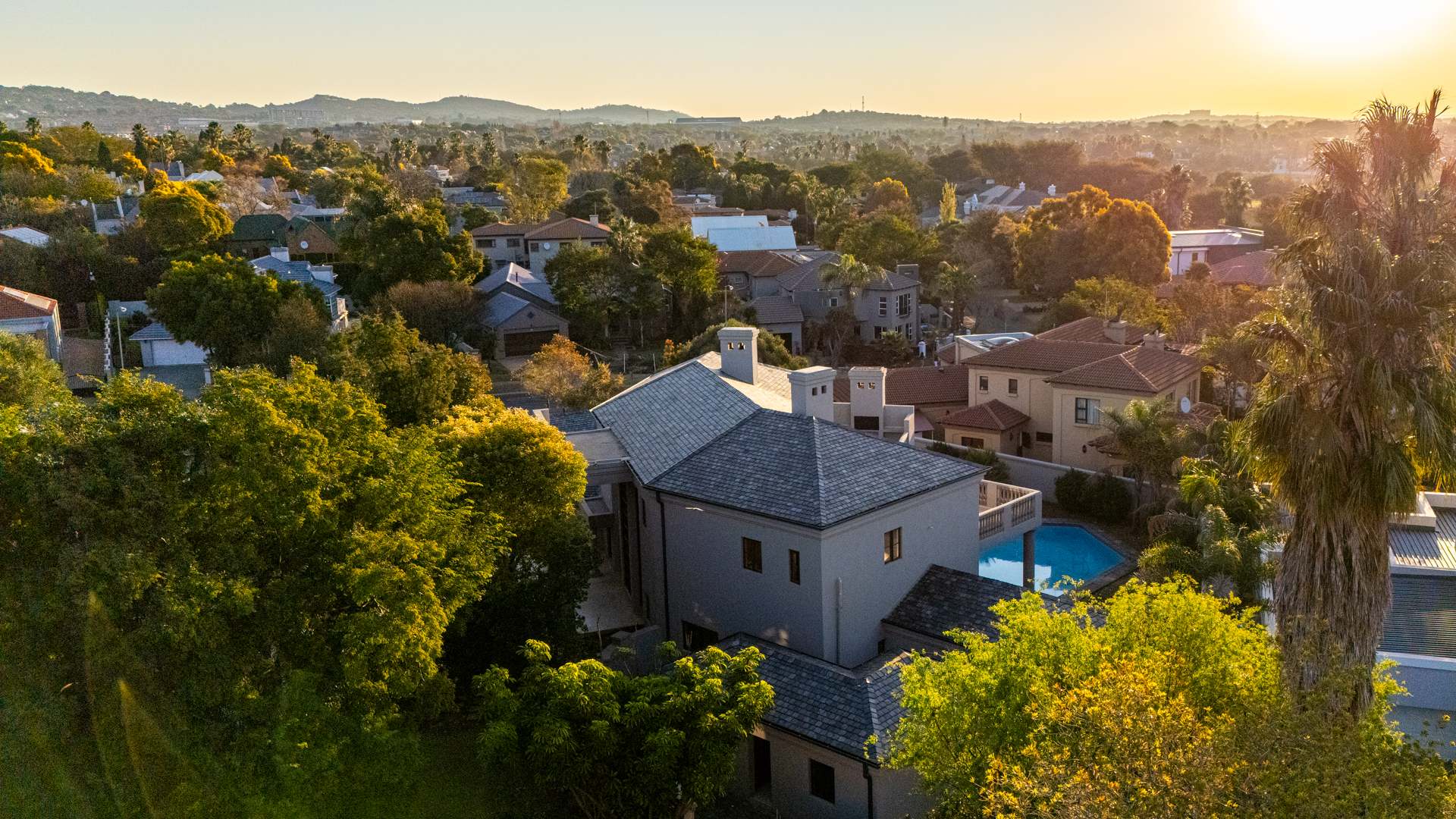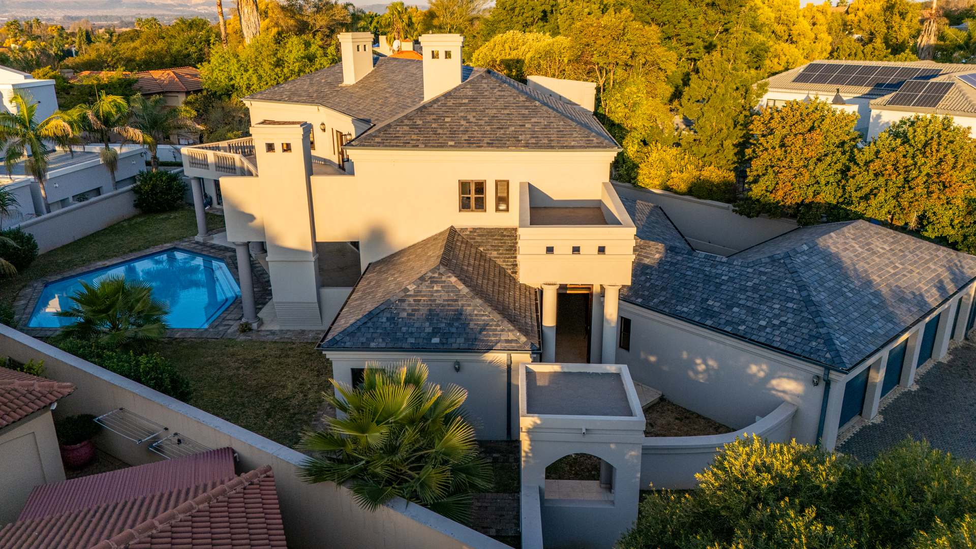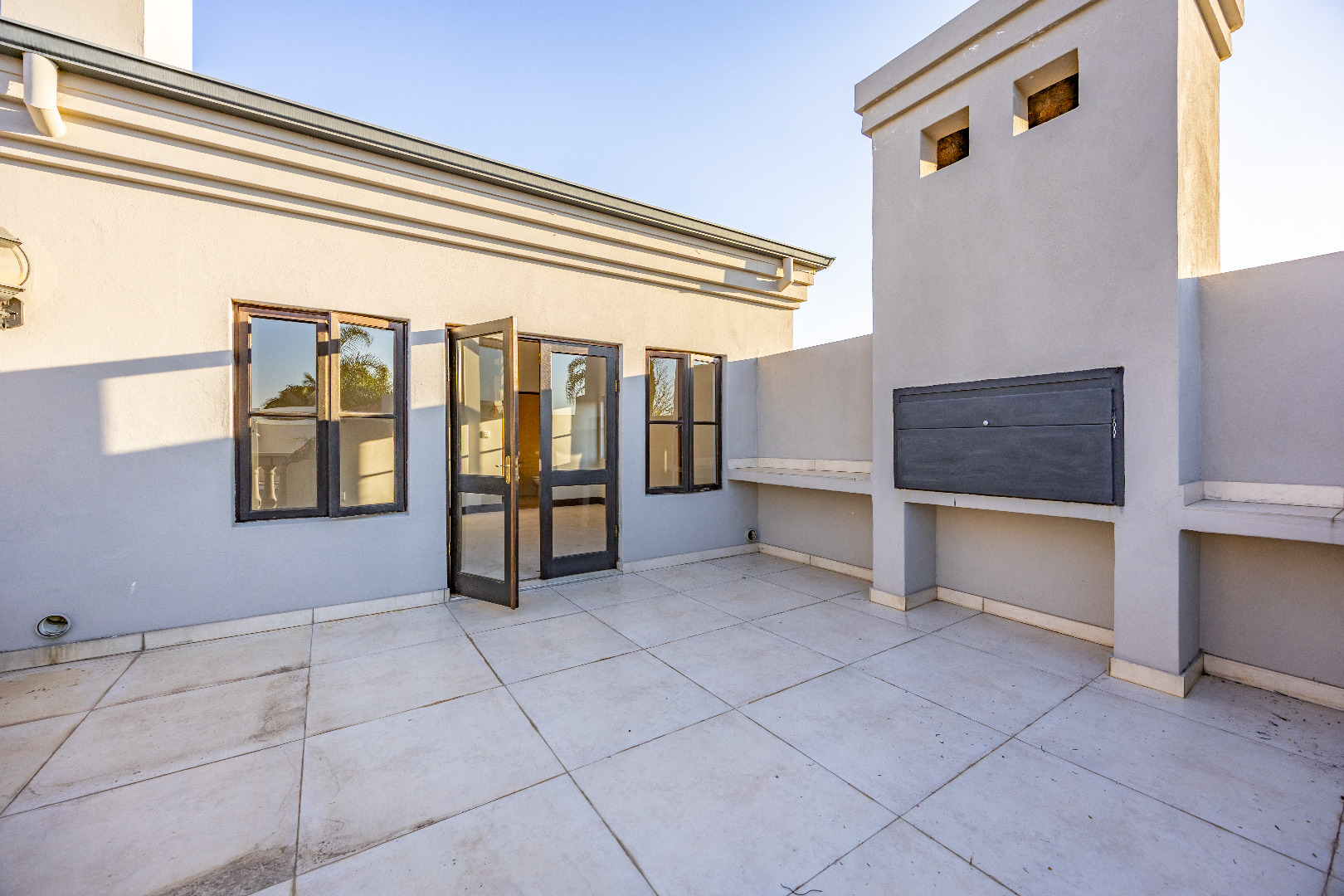 Designed for entertaining, the home opens out to a beautifully arranged outdoor area complete with a built-in braai, swimming pool, and covered alfresco dining space. Two domestic quarters with exterior access provide added flexibility and convenience for extended households or live-in staff.