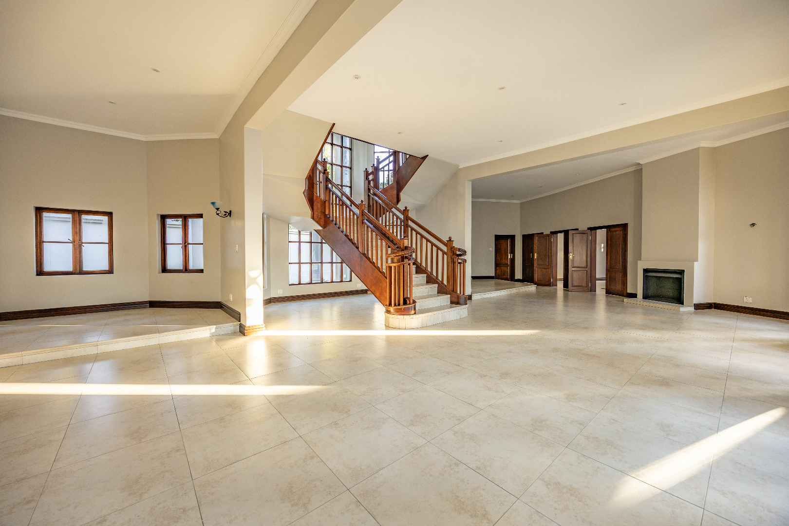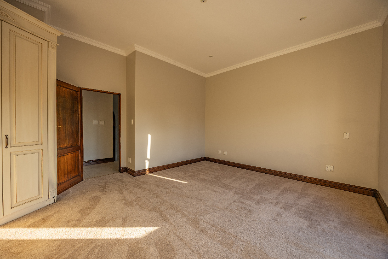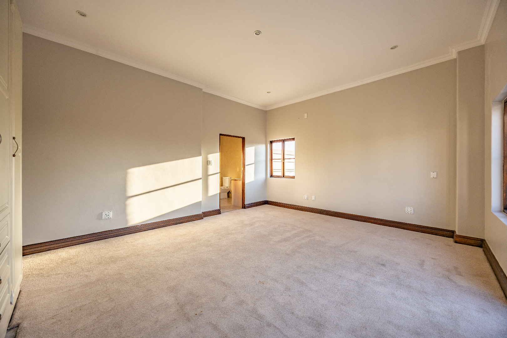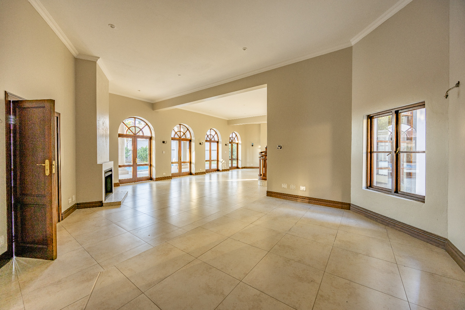 This expansive family home in the prestigious Silver Lakes Golf Estate offers luxurious living with ample space and top-tier finishes. The welcoming entrance hall flows into a versatile room that can serve as a first bedroom or study, followed by a generous dining area ideal for family meals and gatherings. The ground floor also features a stylish guest bathroom with a shower, a wine cellar, and a spacious living area with two fireplaces—creating a warm and inviting atmosphere. A large, well-equipped kitchen with a separate scullery caters to every culinary need, while a downstairs bedroom adds extra convenience.
