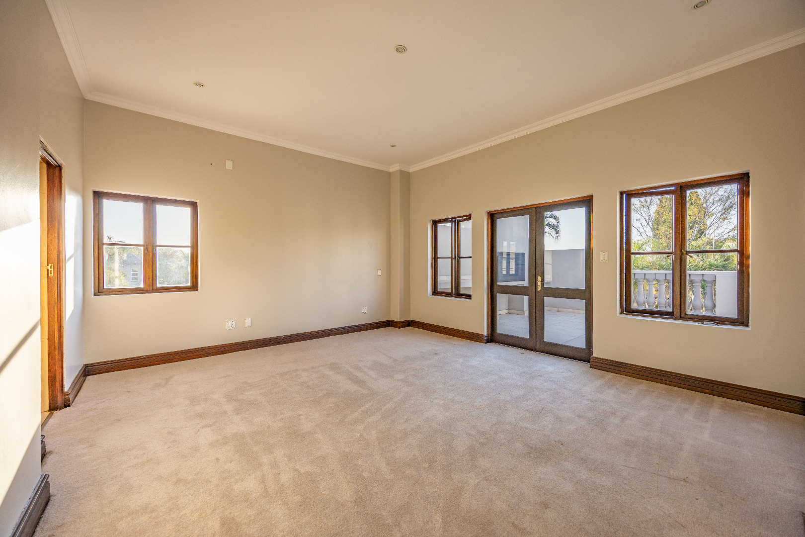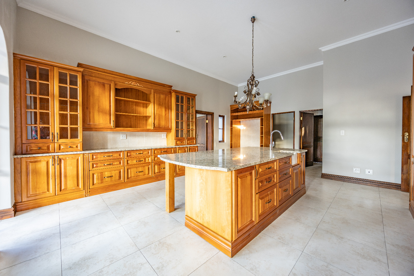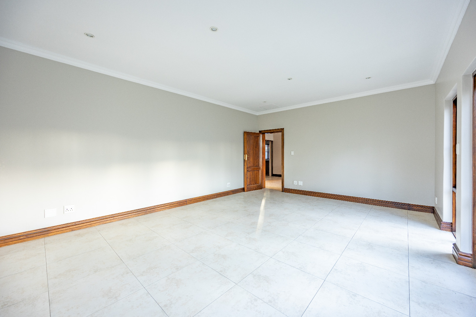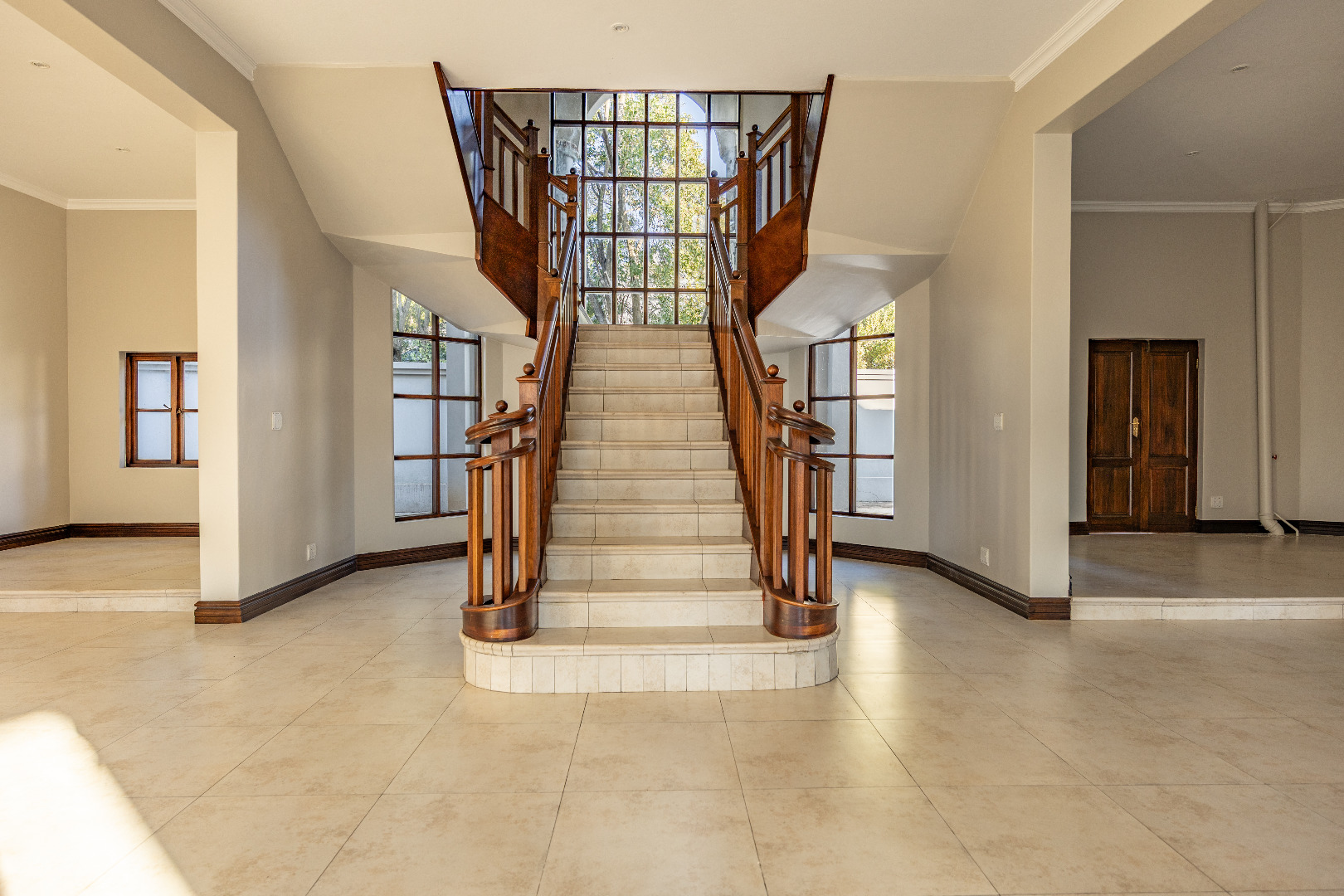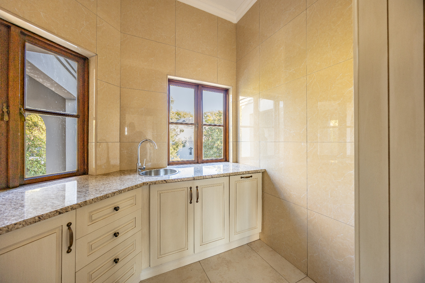 This expansive family home in the prestigious Silver Lakes Golf Estate offers luxurious living with ample space and top-tier finishes. The welcoming entrance hall flows into a versatile room that can serve as a first bedroom or study, followed by a generous dining area ideal for family meals and gatherings. The ground floor also features a stylish guest bathroom with a shower, a wine cellar, and a spacious living area with two fireplaces—creating a warm and inviting atmosphere. A large, well-equipped kitchen with a separate scullery caters to every culinary need, while a downstairs bedroom adds extra convenience.
