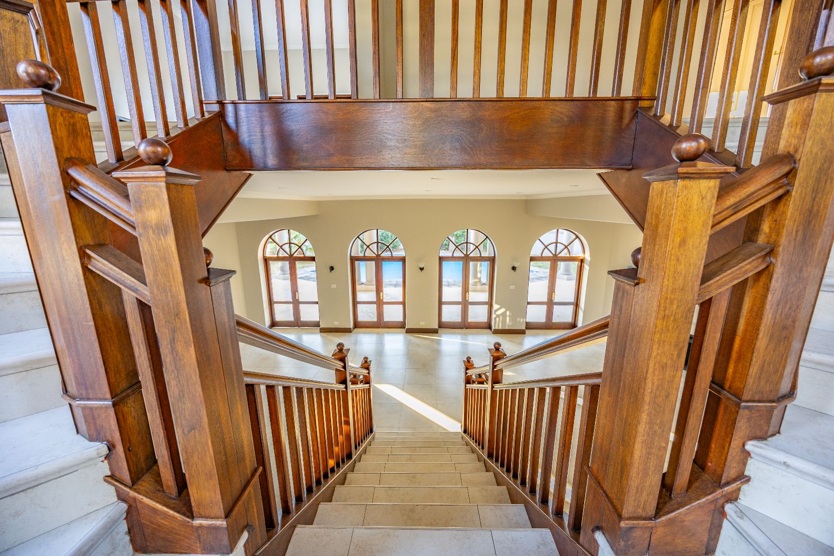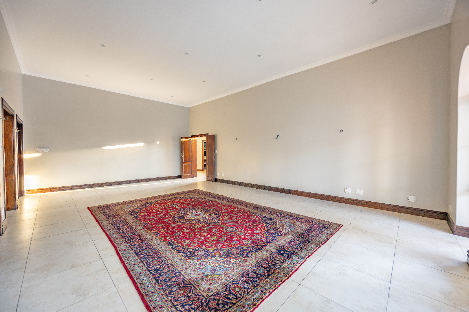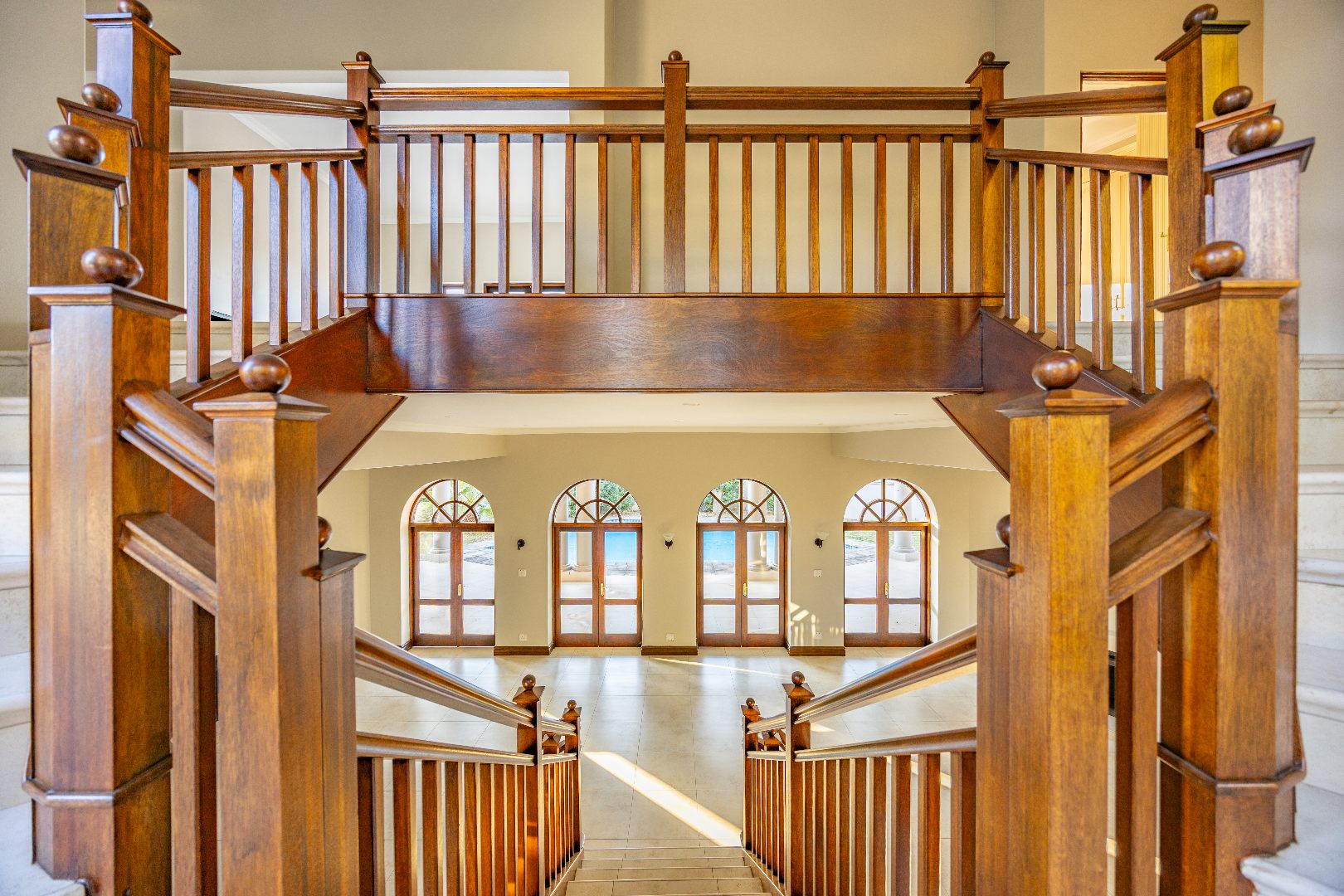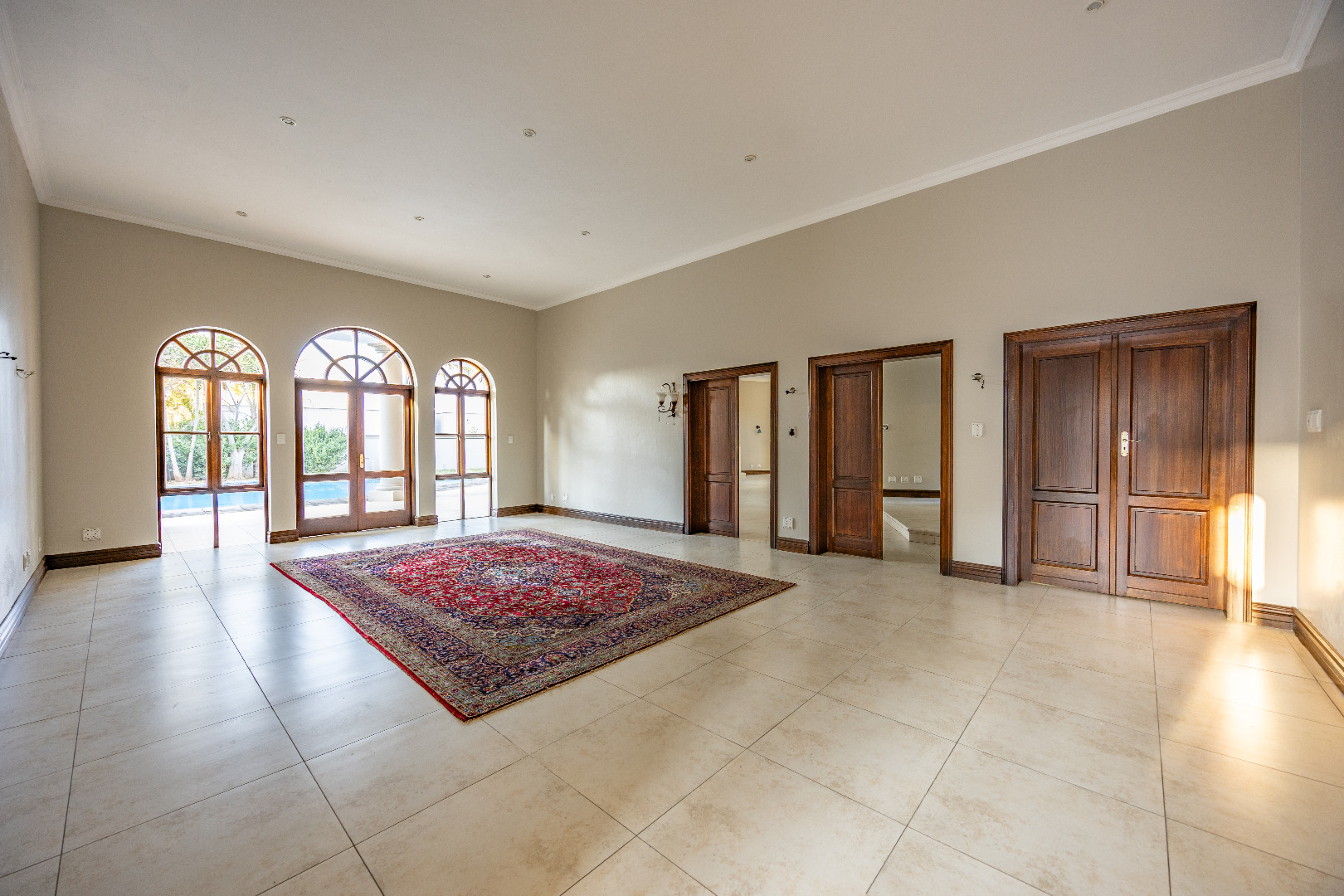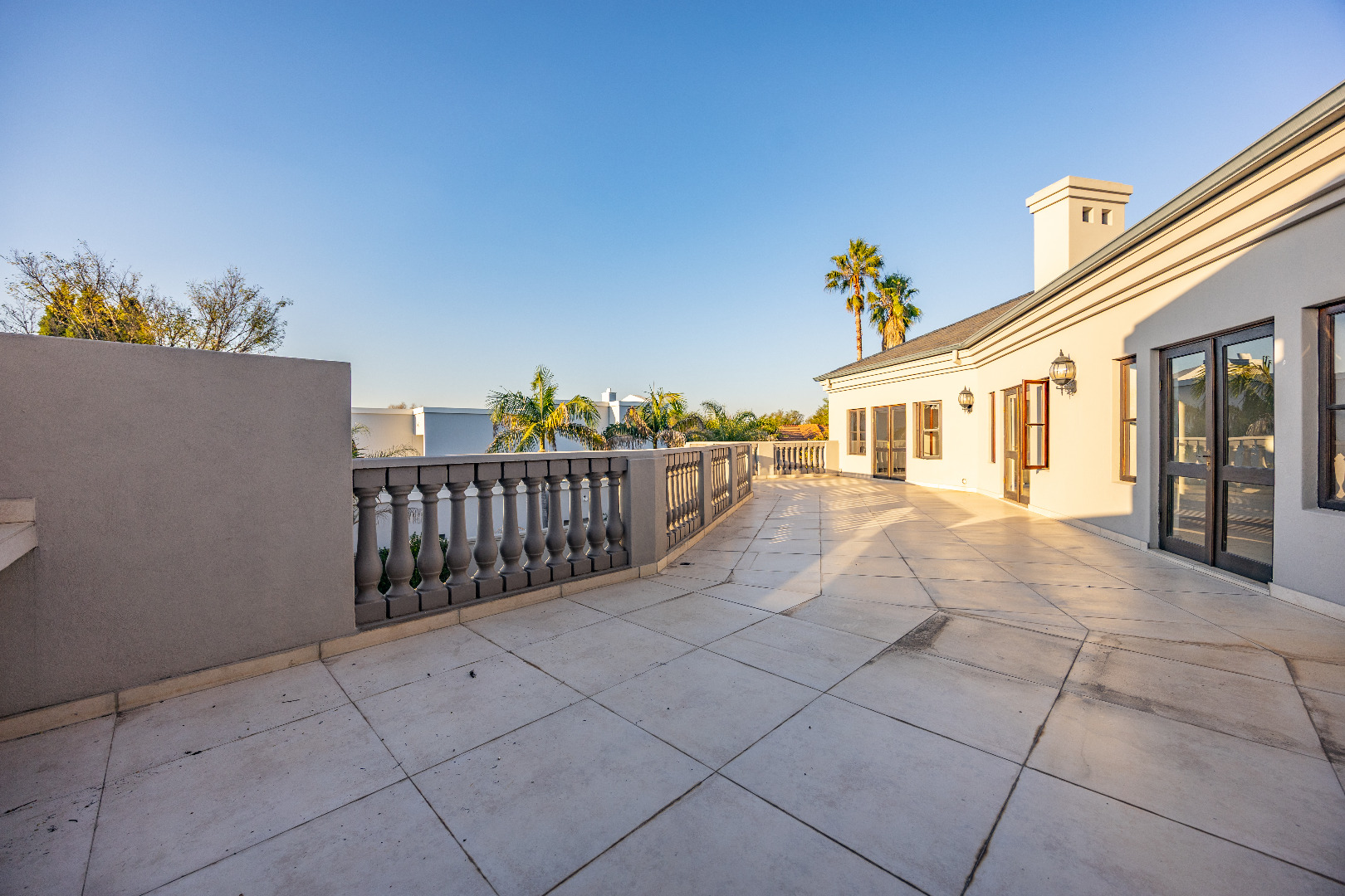This expansive family home in the prestigious Silver Lakes Golf Estate offers luxurious living with ample space and top-tier finishes. The welcoming entrance hall flows into a versatile room that can serve as a first bedroom or study, followed by a generous dining area ideal for family meals and gatherings. The ground floor also features a stylish guest bathroom with a shower, a wine cellar, and a spacious living area with two fireplaces—creating a warm and inviting atmosphere. A large, well-equipped kitchen with a separate scullery caters to every culinary need, while a downstairs bedroom adds extra convenience.