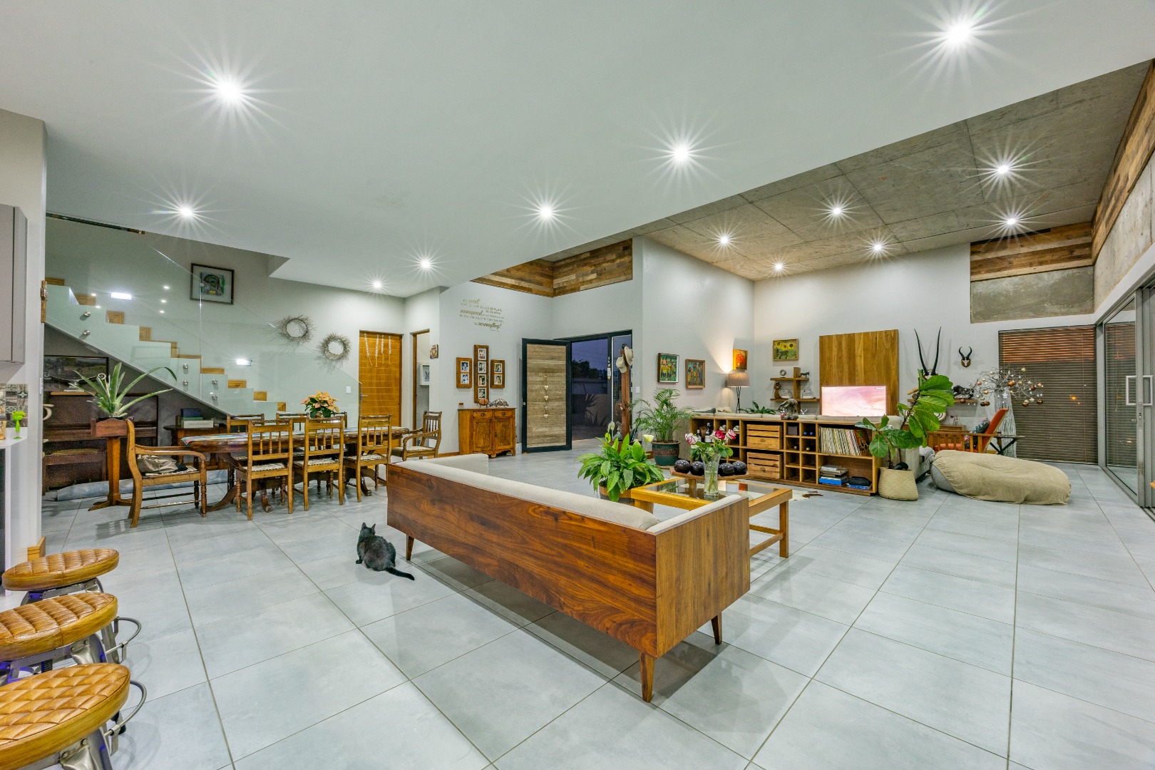 Multiple open-plan living and entertainment areas with seamless flow to outdoor patios