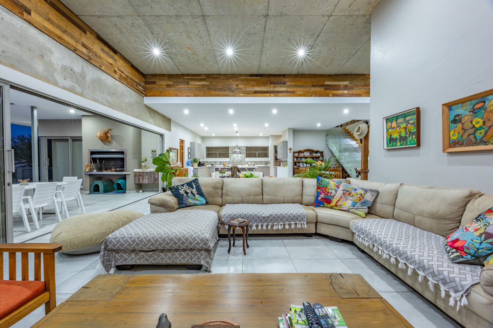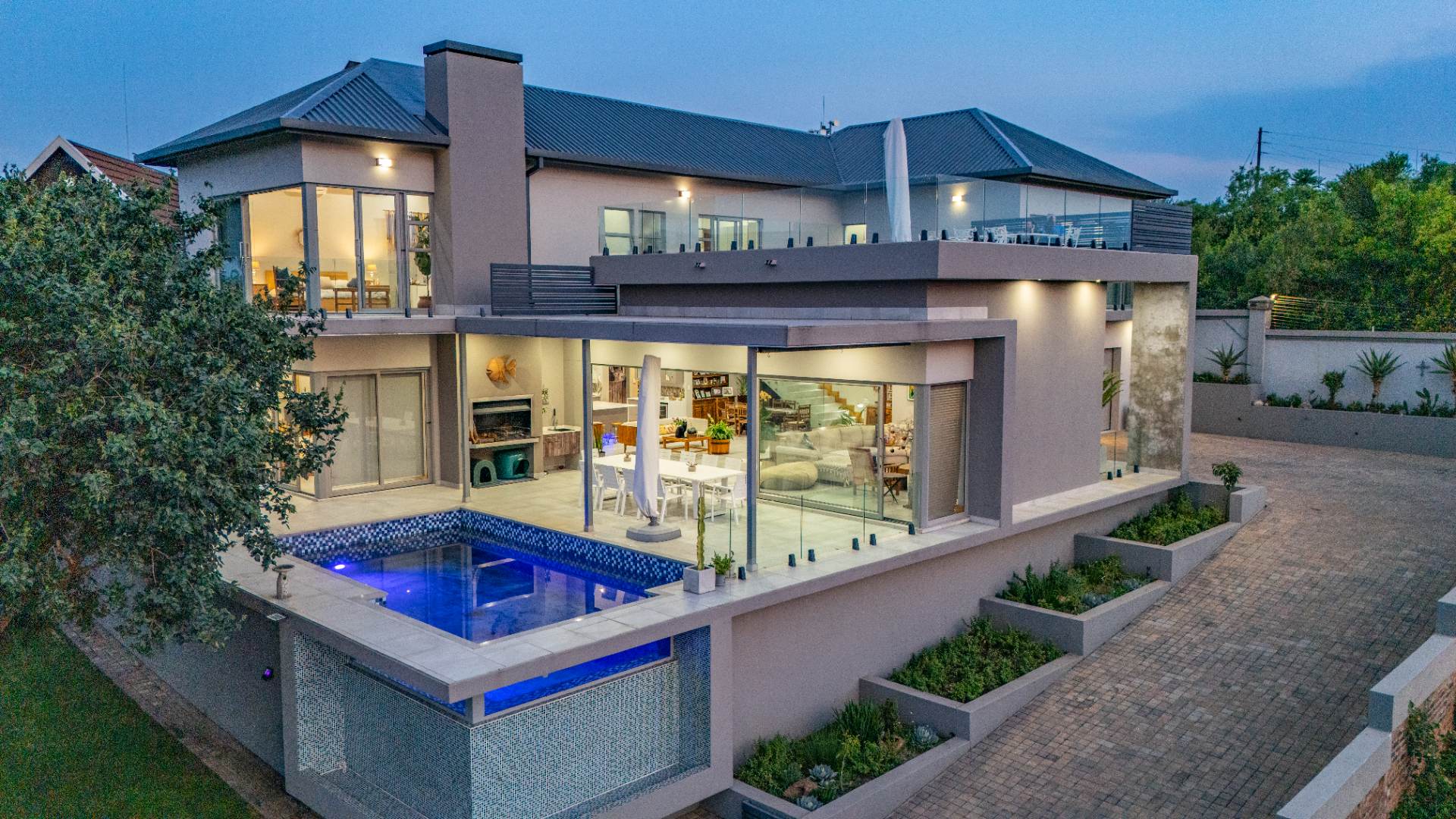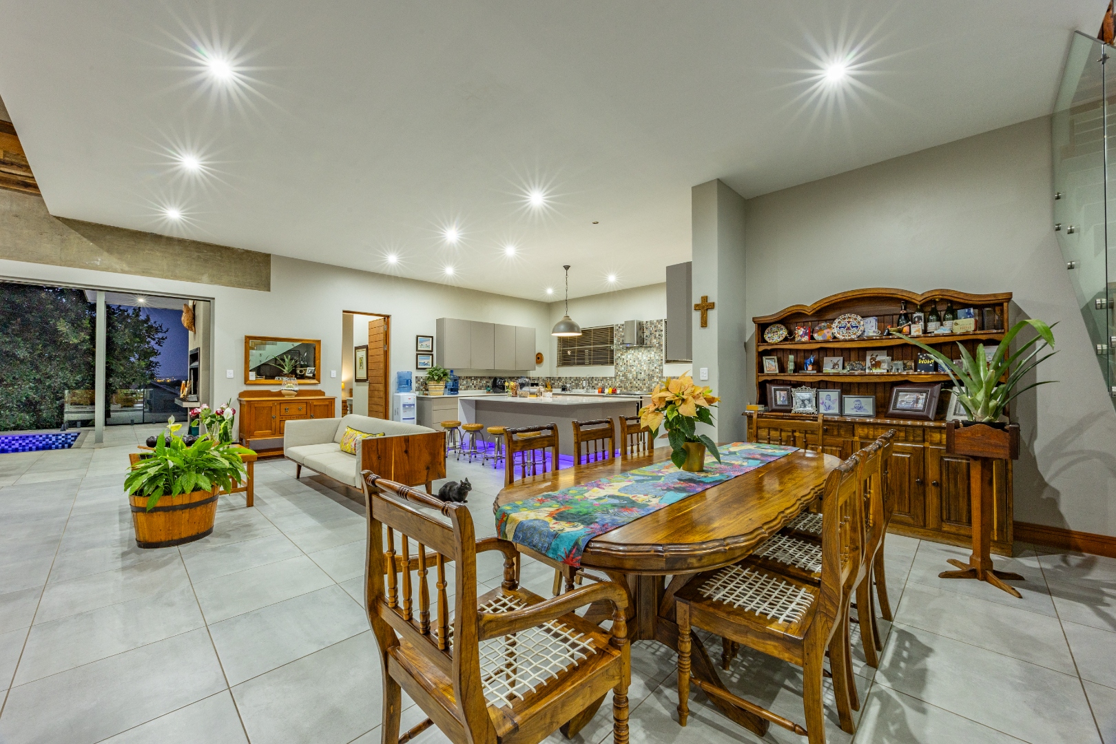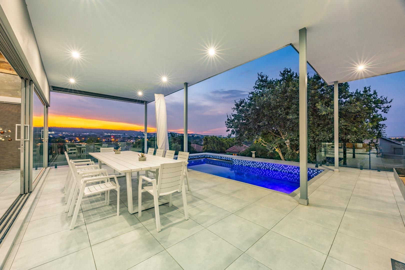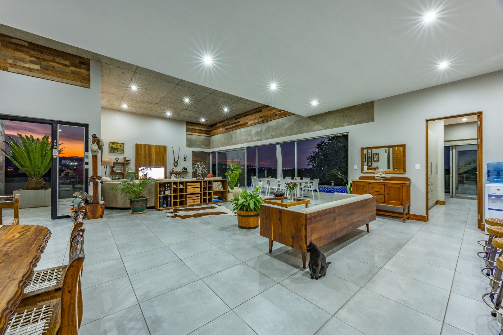 High ceilings, exclusive modern finishes, and disappearing stacking doors flood the home with natural light while drawing your eye toward the sublime rim-flow pool, covered entertainers’ patio, and landscaped surrounds. Whether hosting vibrant gatherings or enjoying quiet sundowners, this home adapts beautifully to every season and occasion.