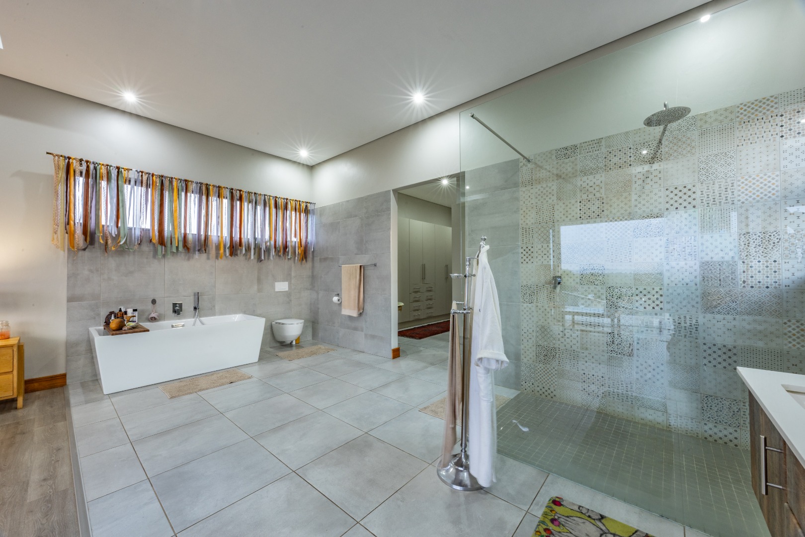 Opulent master suite featuring a walk-in closet and spa-inspired bathroom