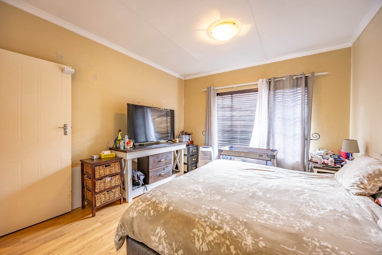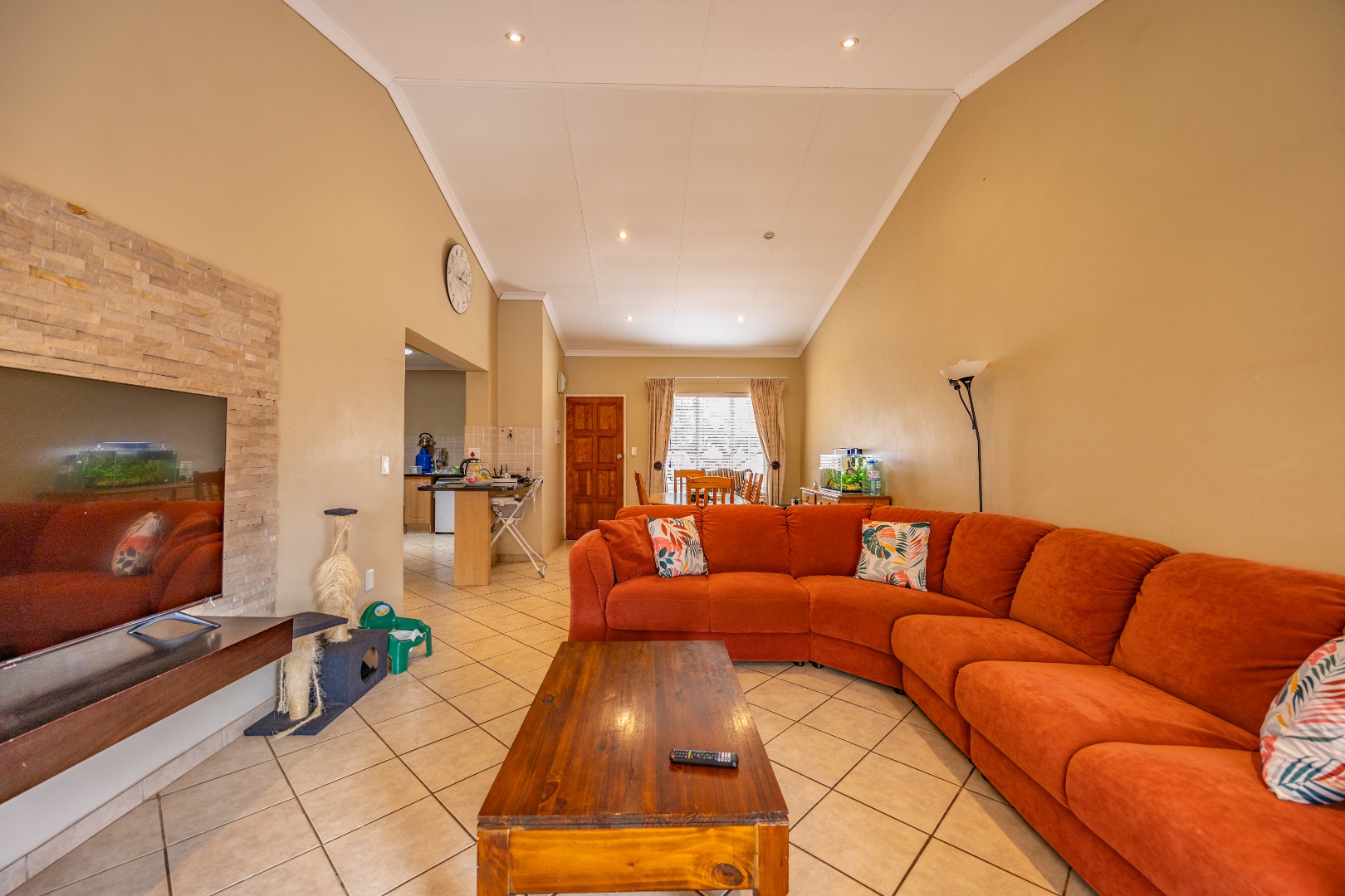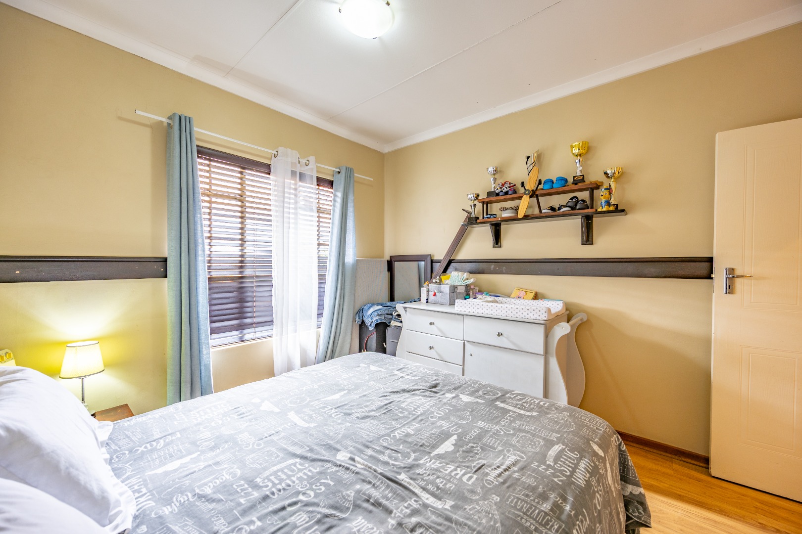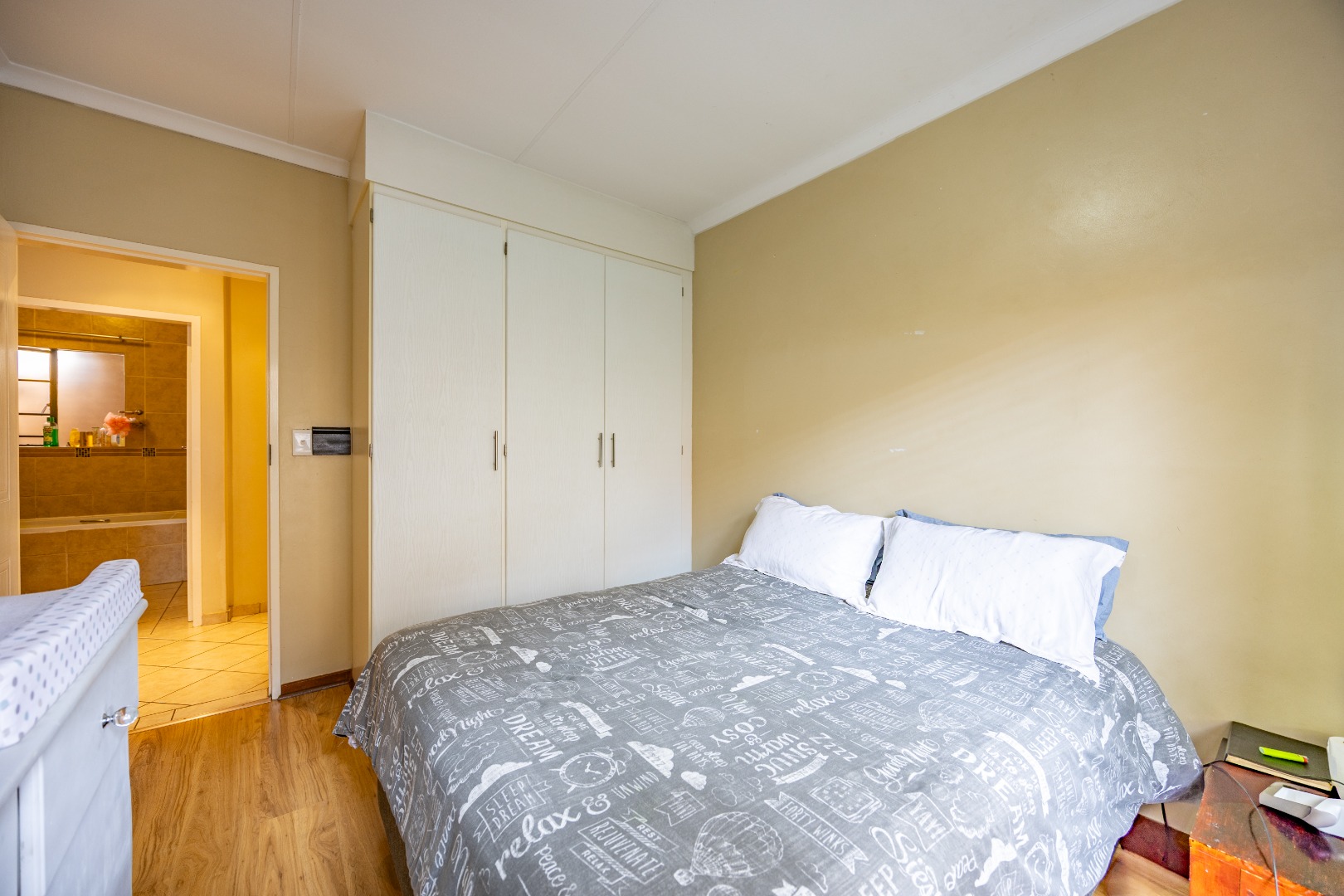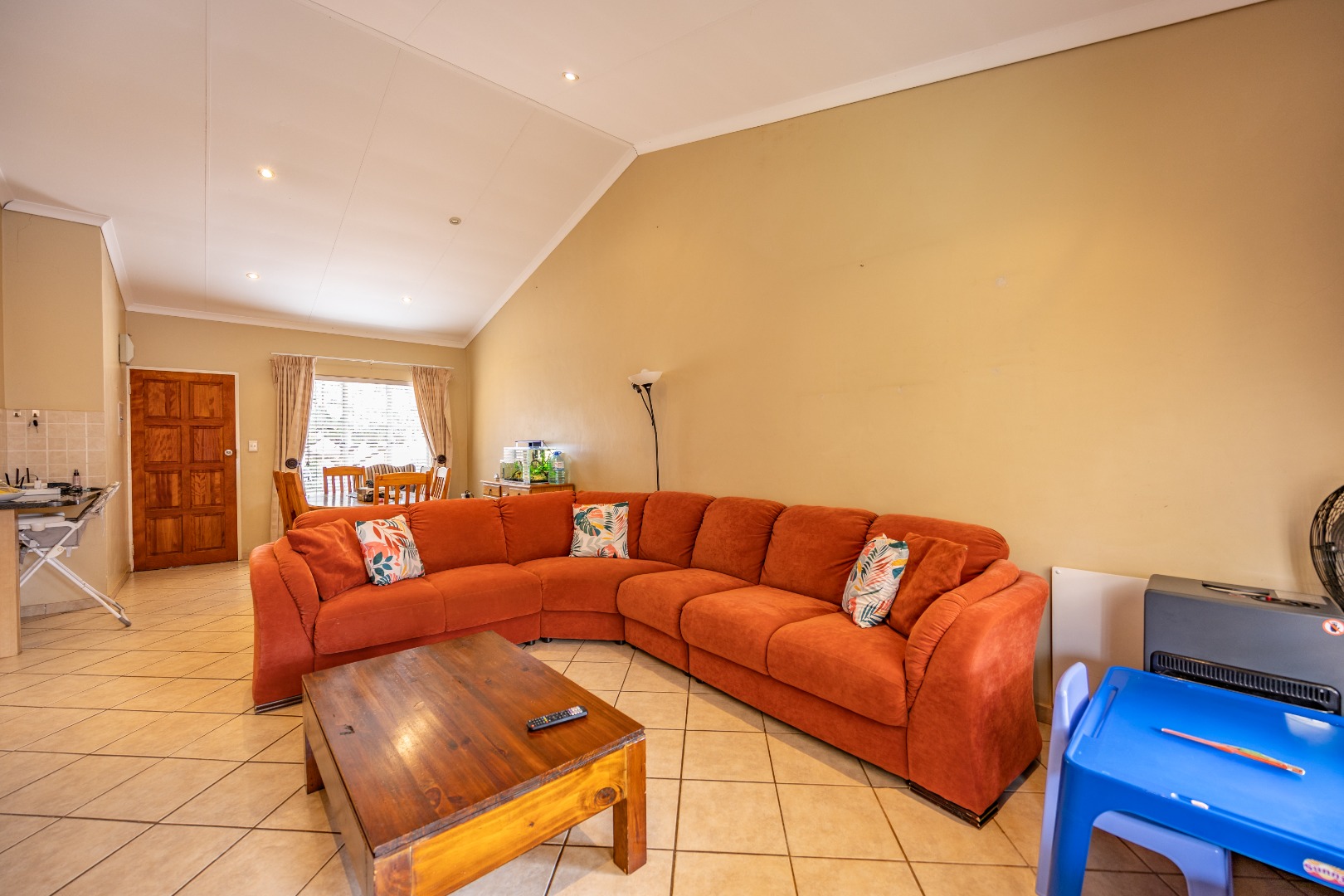 Additional features include linen cupboards, blinds in both bedrooms, a built-in braai on the patio, garden irrigation, and a double automated garage for secure parking.
