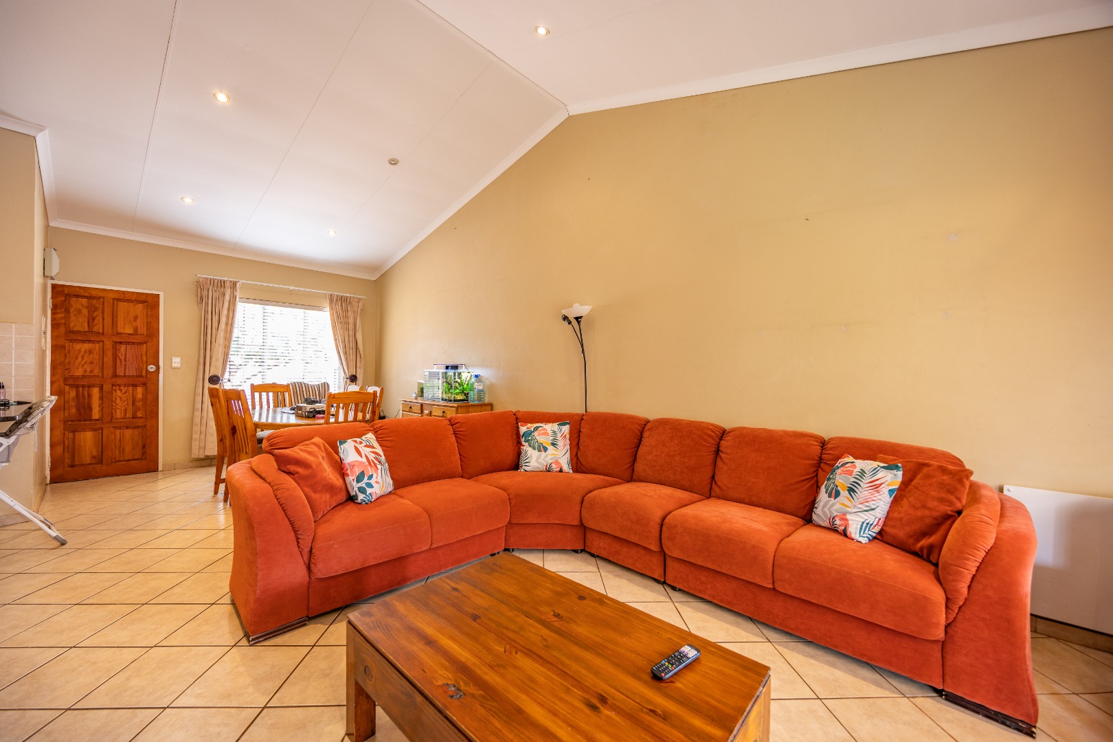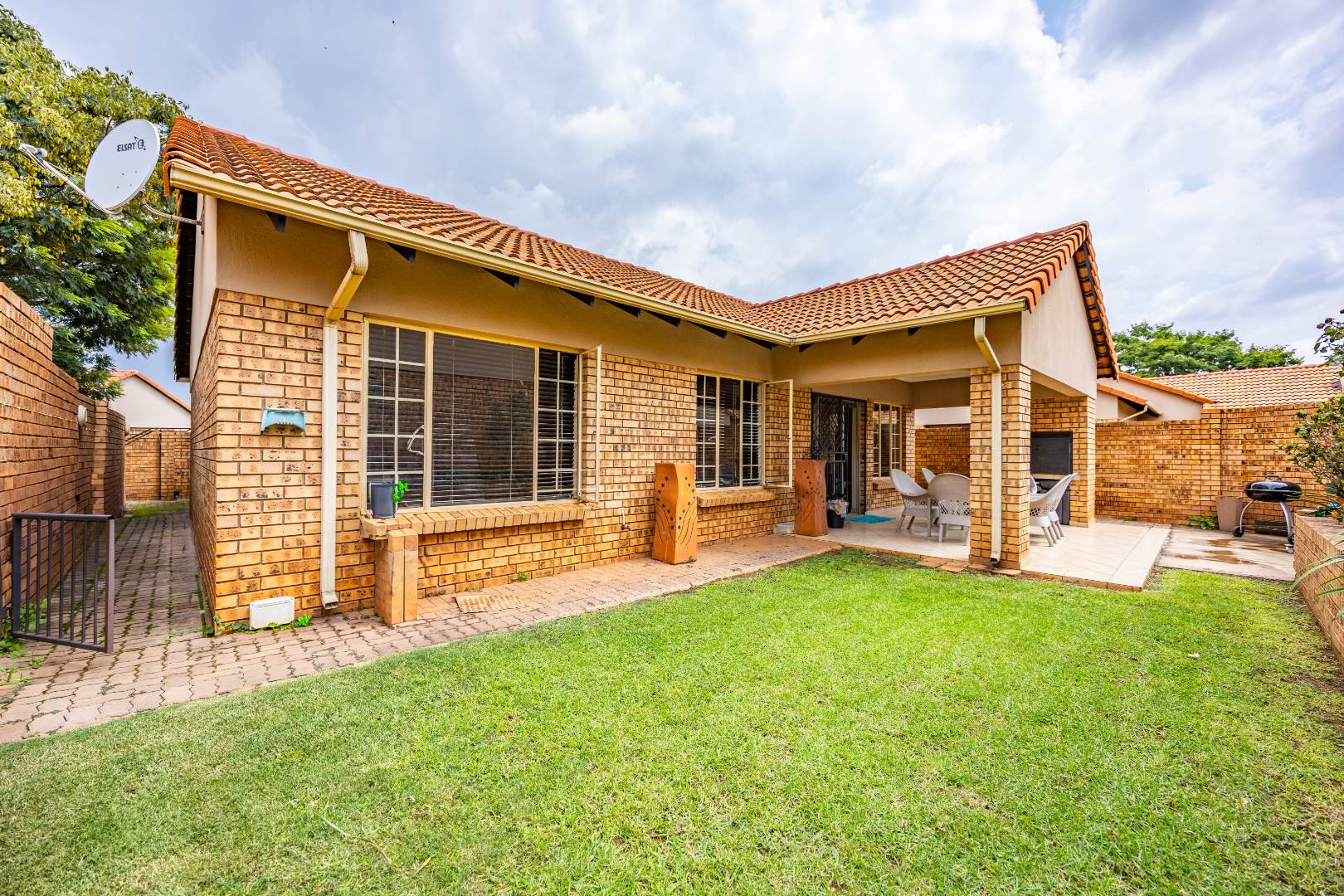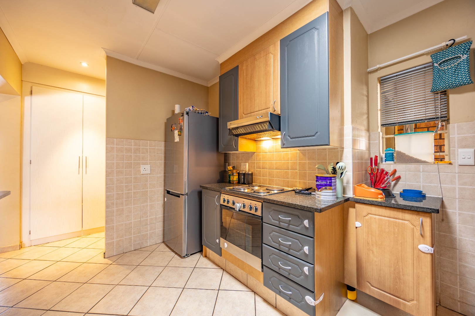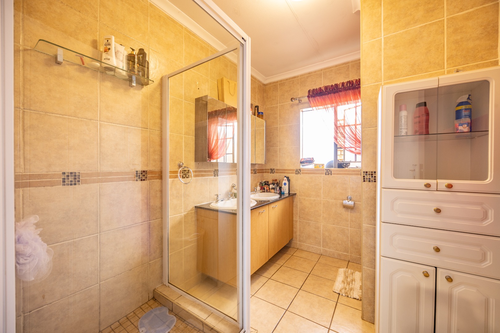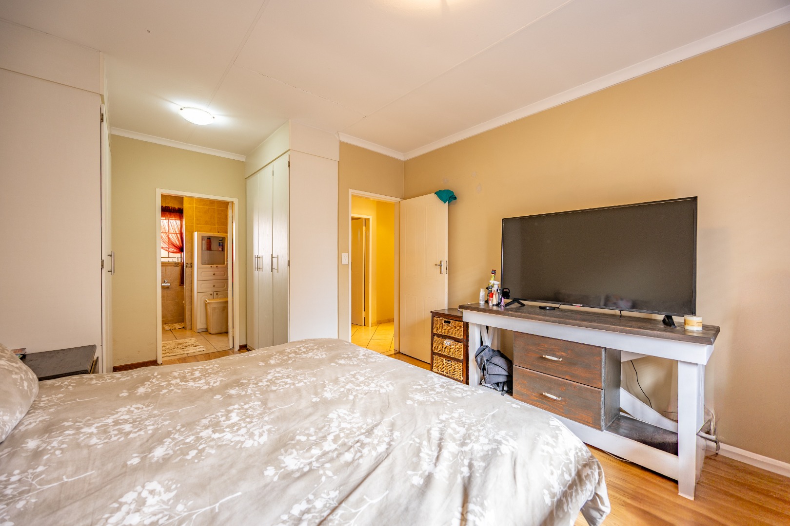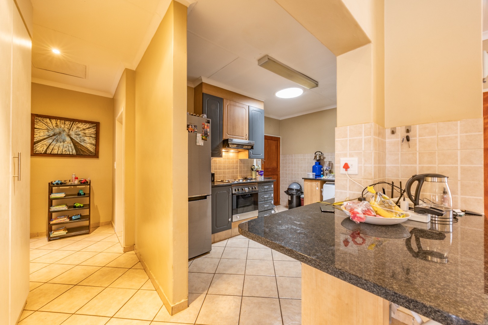 Additional features include linen cupboards, blinds in both bedrooms, a built-in braai on the patio, garden irrigation, and a double automated garage for secure parking.
