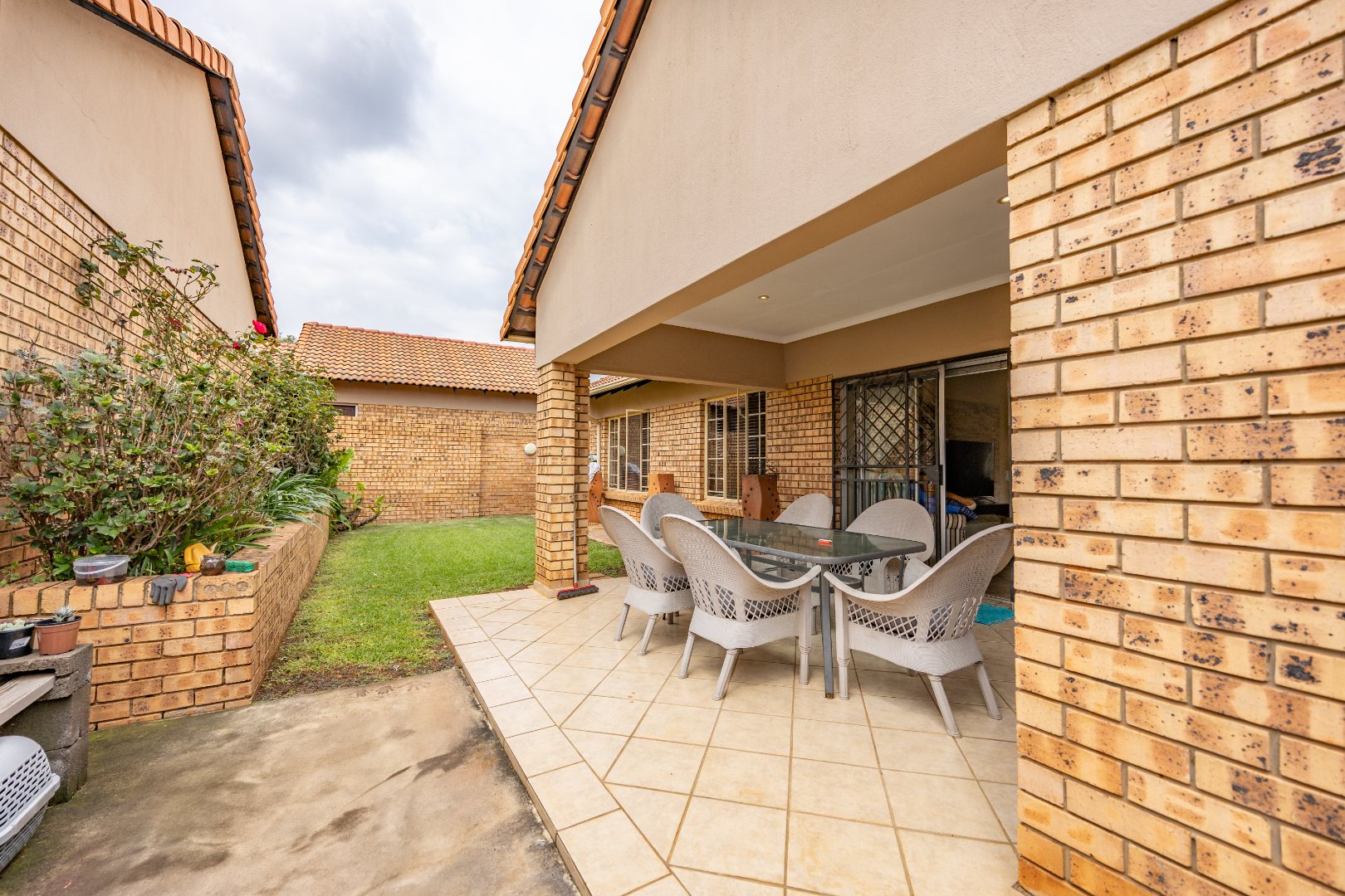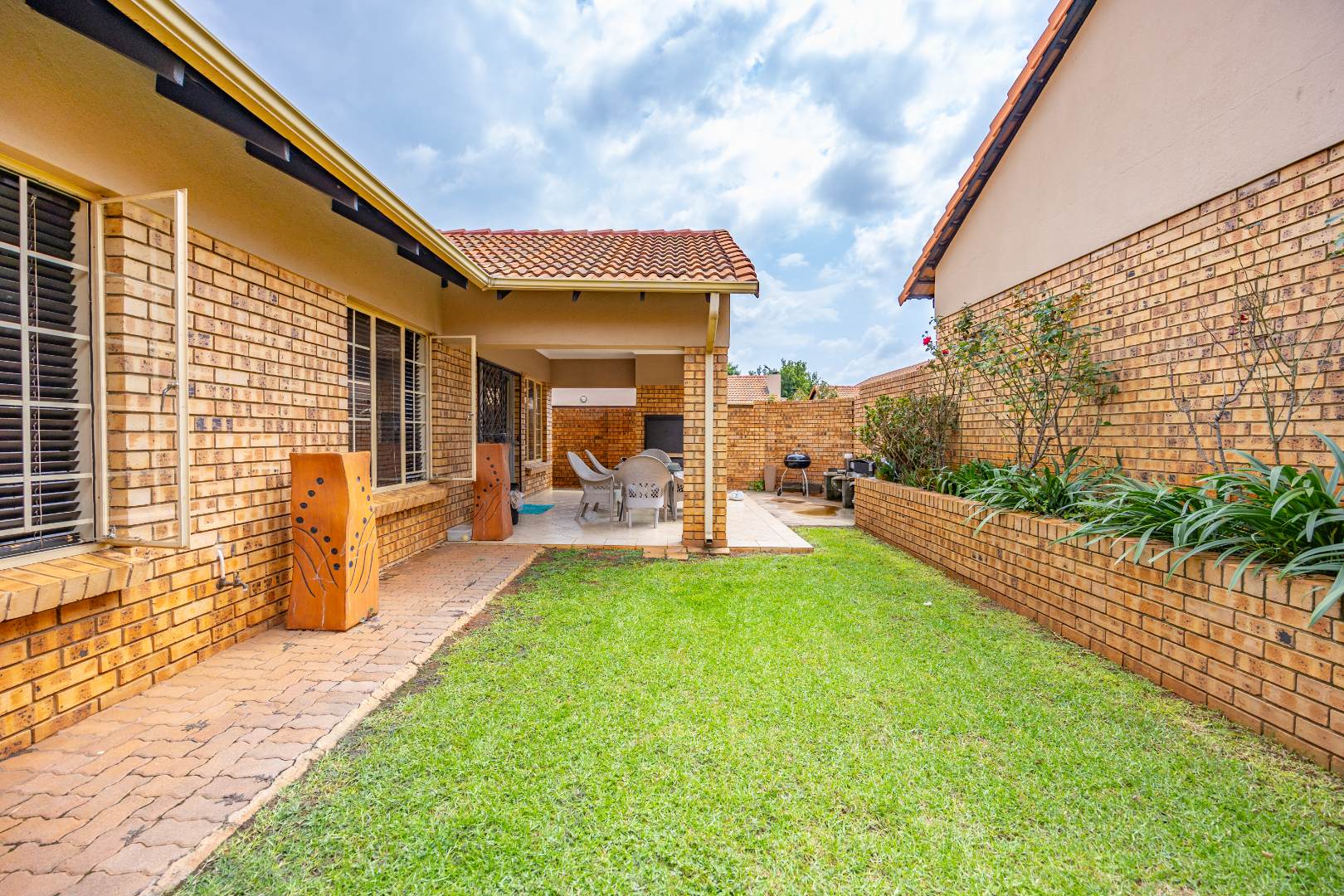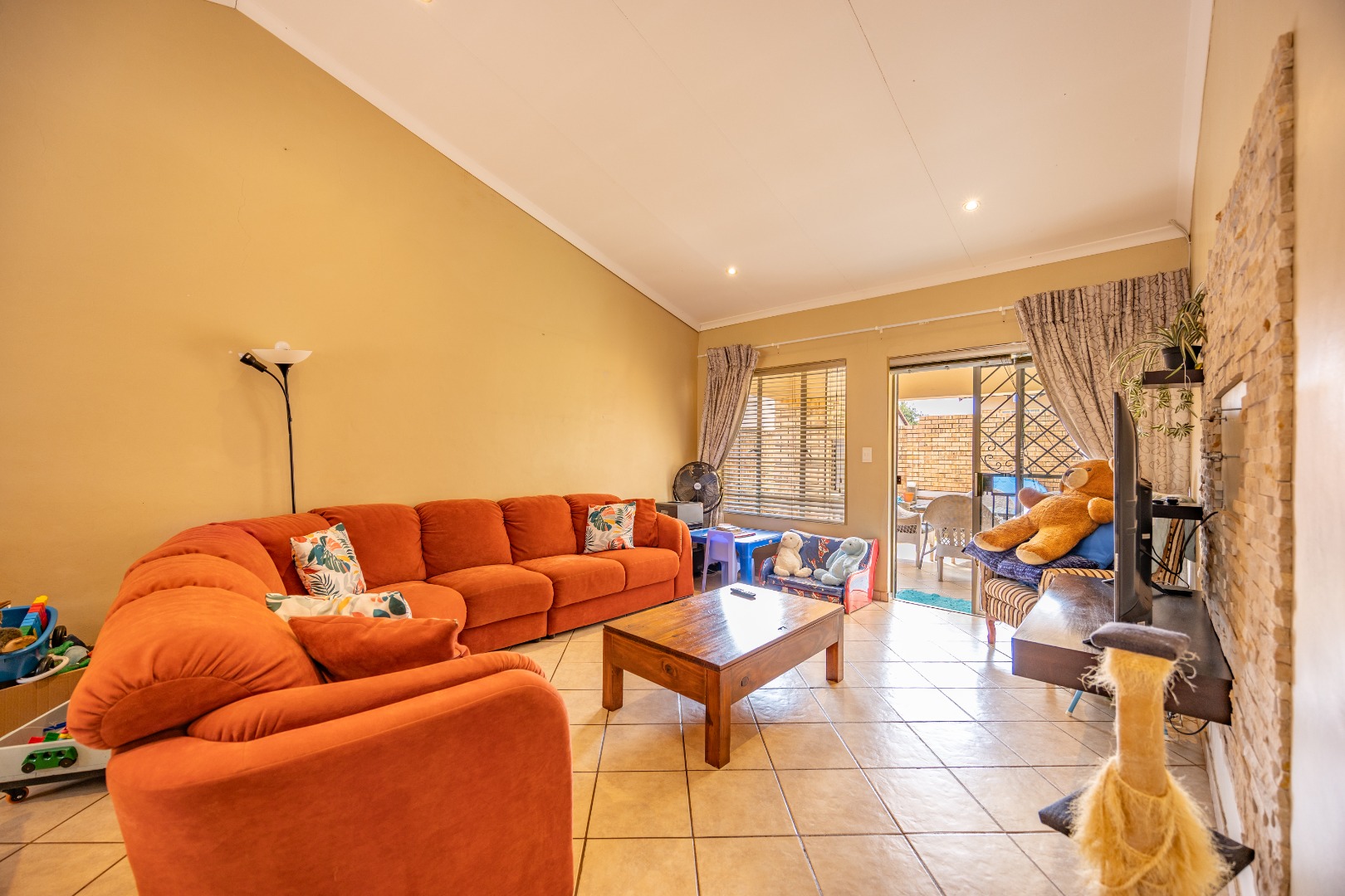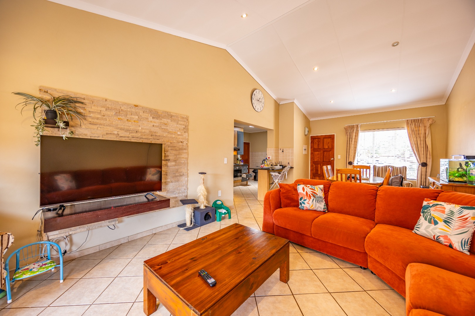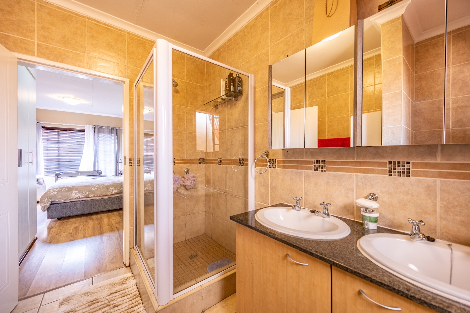 Additional features include linen cupboards, blinds in both bedrooms, a built-in braai on the patio, garden irrigation, and a double automated garage for secure parking.