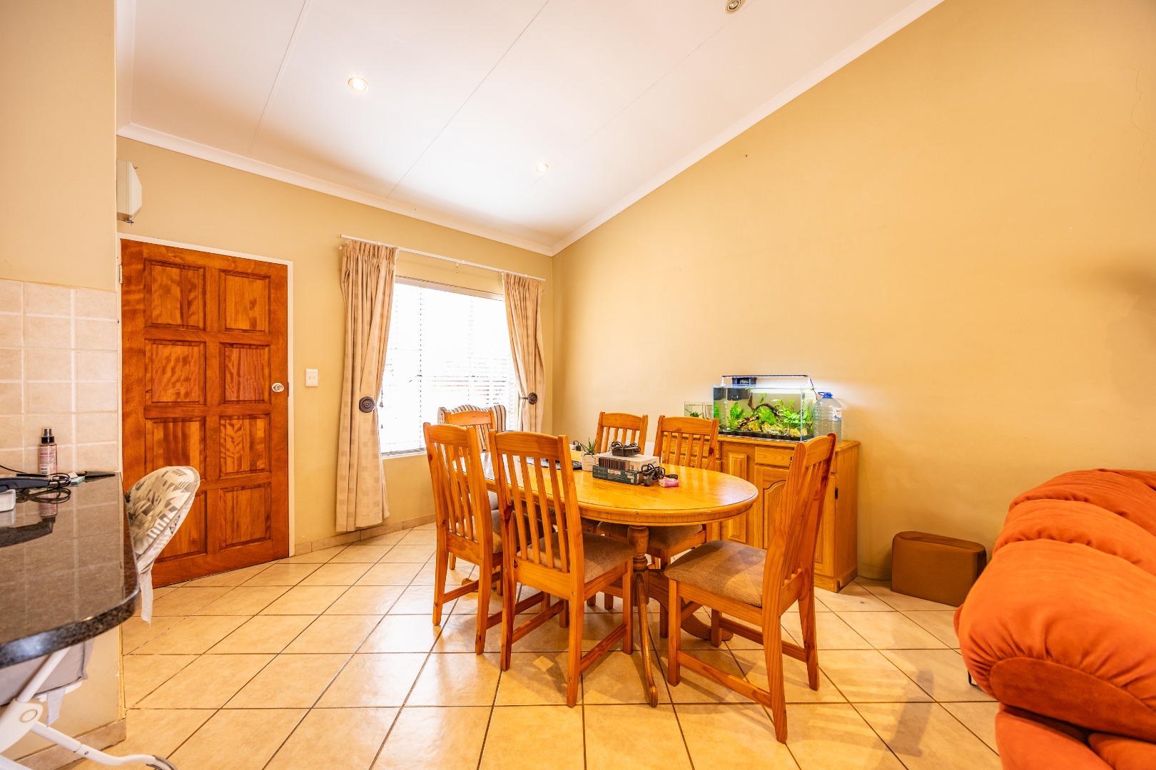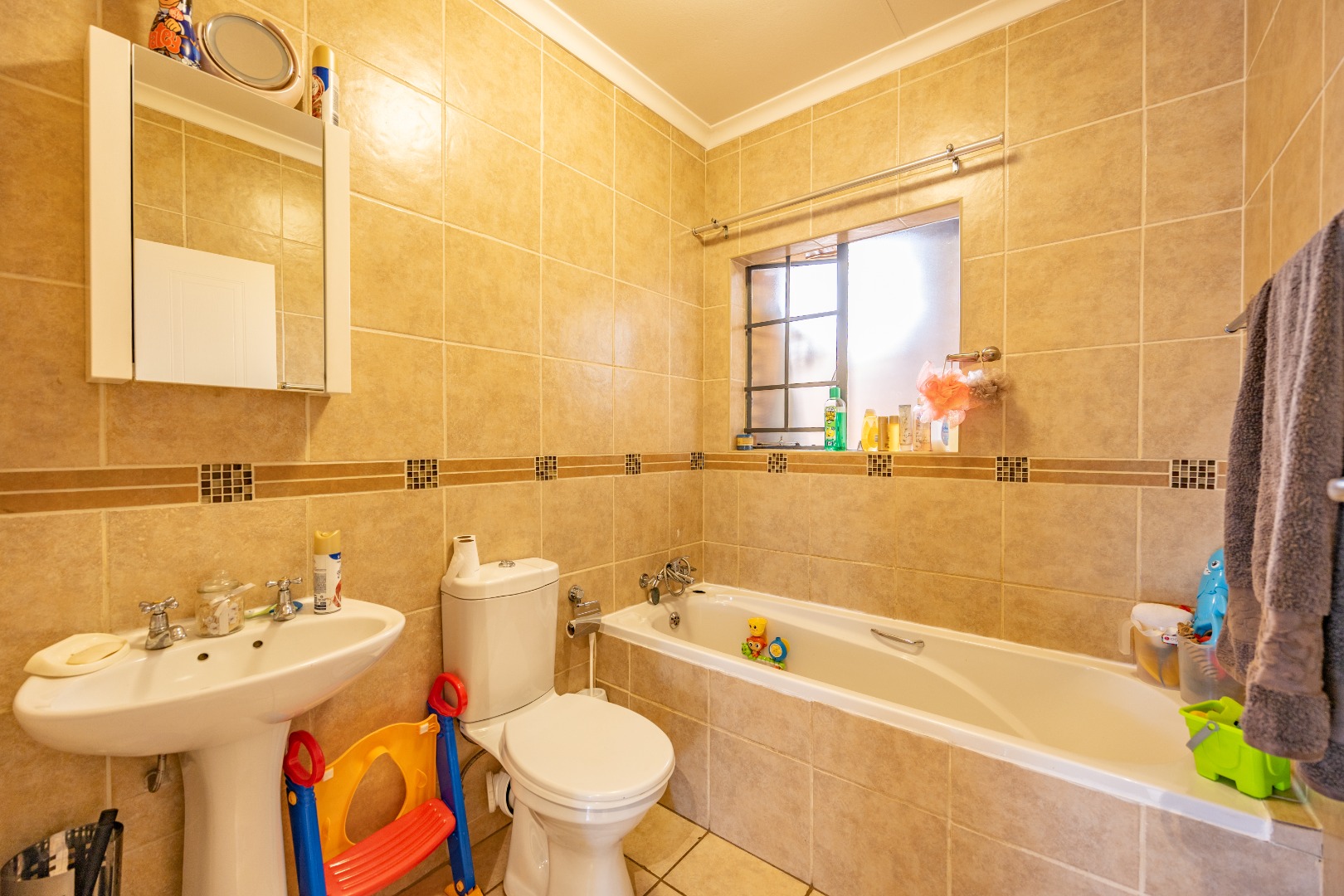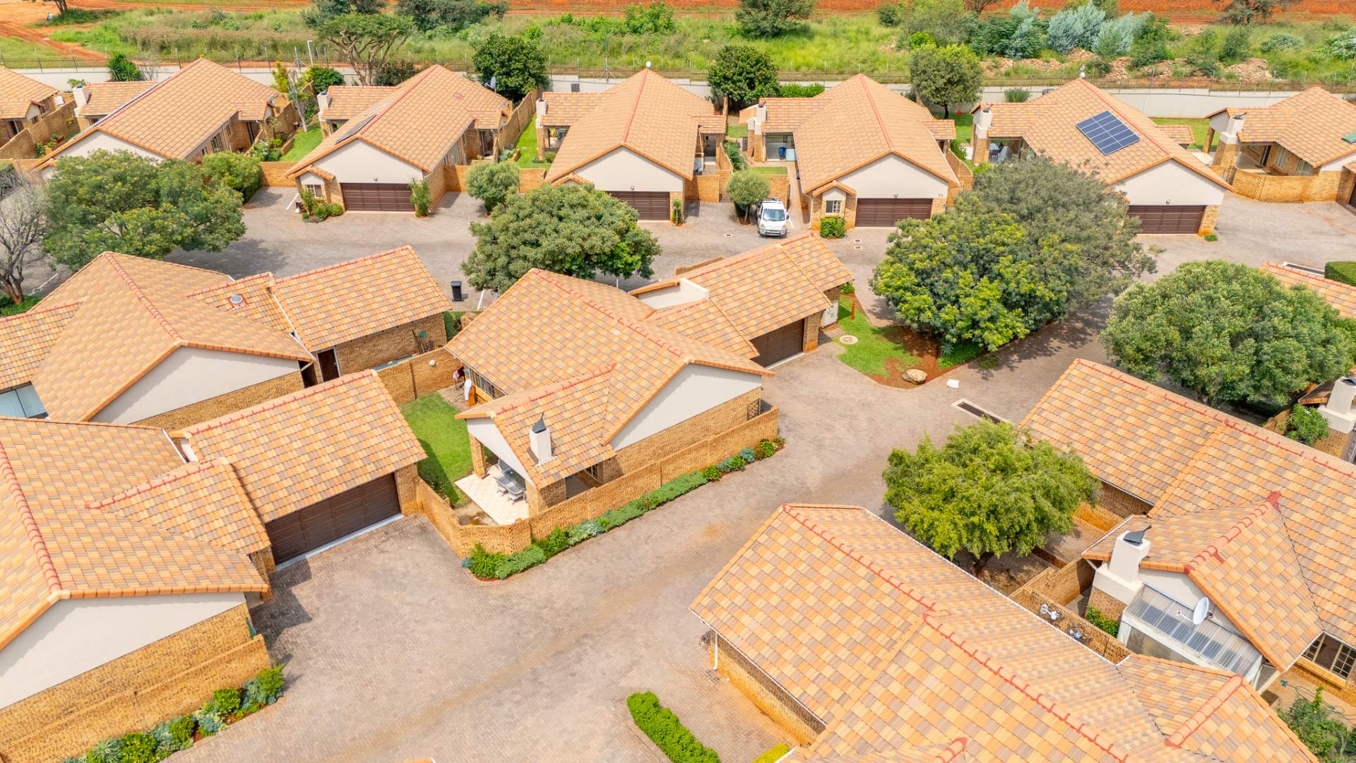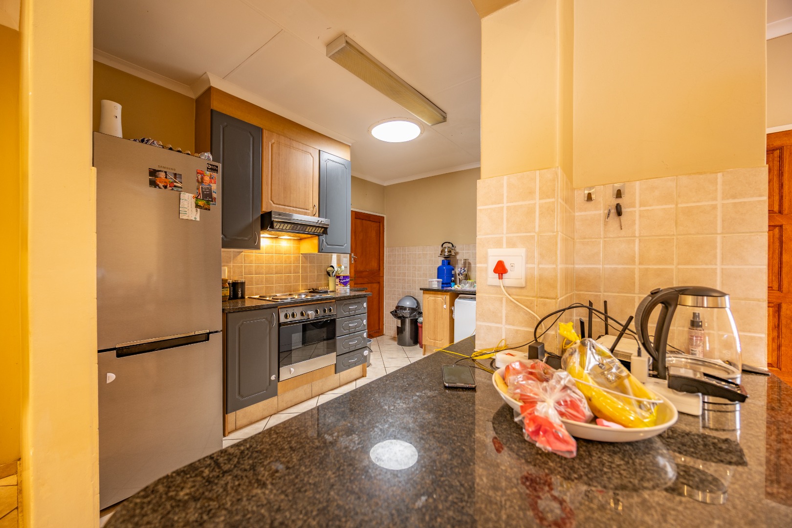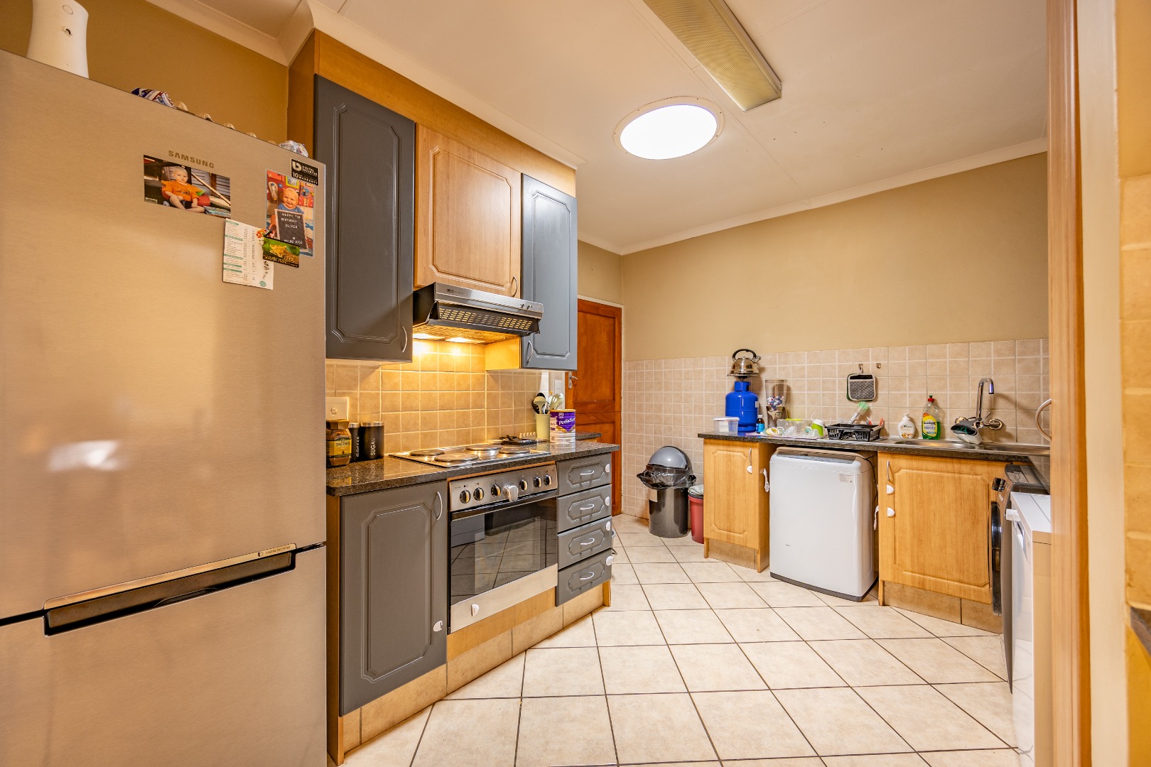Additional features include linen cupboards, blinds in both bedrooms, a built-in braai on the patio, garden irrigation, and a double automated garage for secure parking.