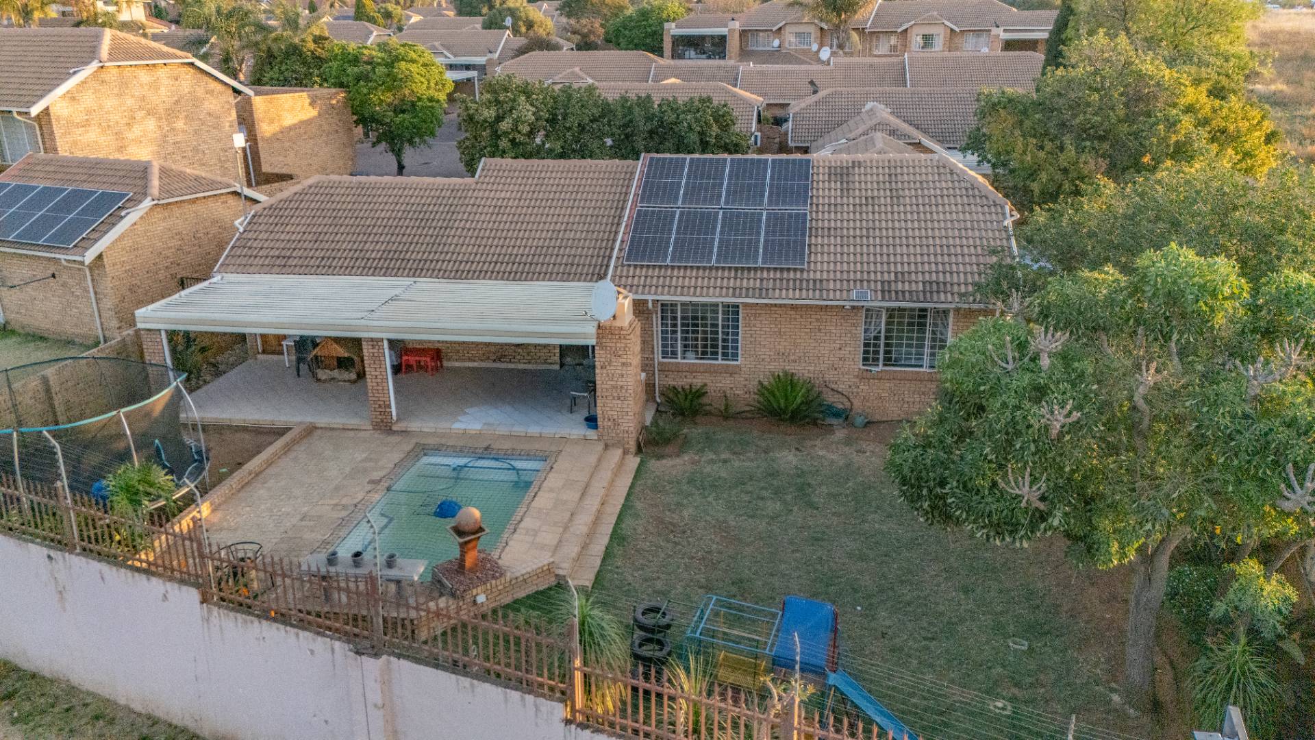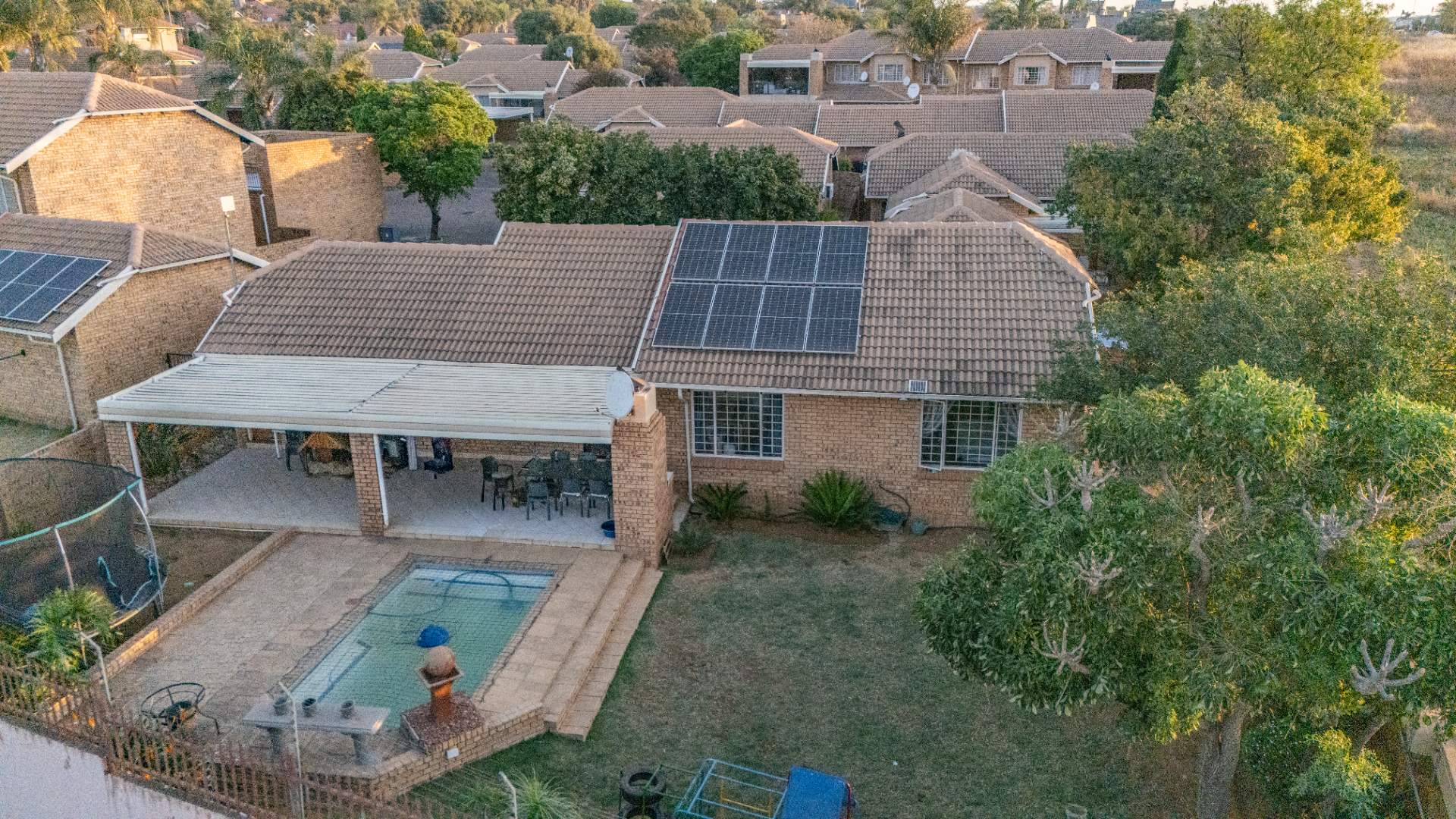 The outdoor spaces capture the essence of estate living with a large yard where children and pets can play freely, complemented by a sparkling swimming pool for summer enjoyment. A Wendy house adds valuable storage or hobby space, and a garage completes the offering. Living in The Wilds Estate means more than just owning a townhouse—it’s access to well-kept parks, walking trails, a clubhouse, and top-tier security, making this property the perfect blend of lifestyle and location.