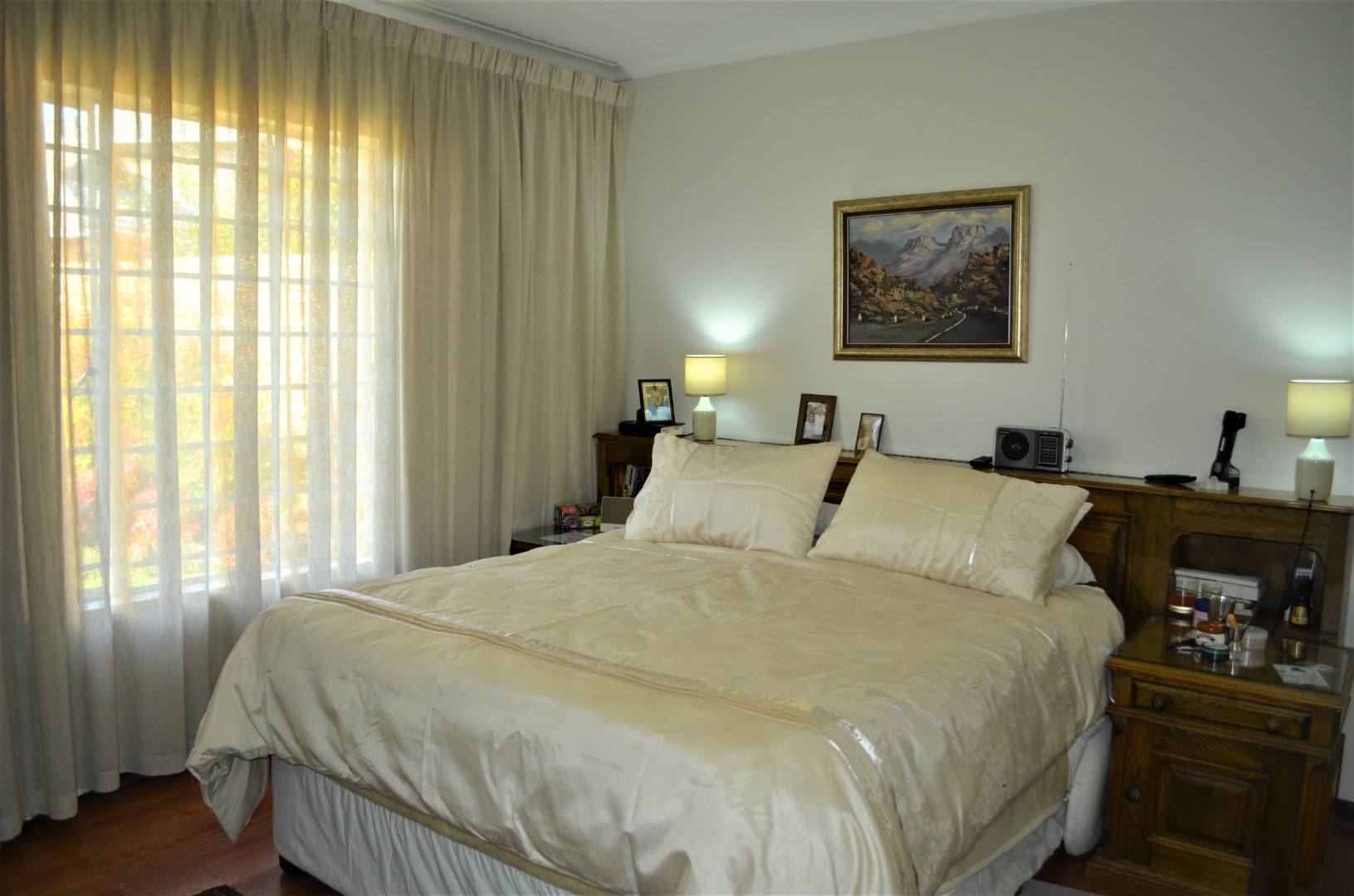 The fully-fitted kitchen features granite tops, a breakfast nook, pantry cupboard, scullery and space for a double door fridge/freezer and two appliances, making it a dream for any home chef. The heart of the home offers seamless flow between the tiled, open-plan dining and lounge areas, leading out to a covered patio complete with a built-in braai – ideal for year-round entertaining. The patio overlooks a beautifully manicured, irrigated garden with a tranquil water feature – a private retreat to enjoy nature and relax. The double automated garage offers direct access to the home, fitted with built-in cupboards and space for yet another appliance – ideal for your laundry setup.