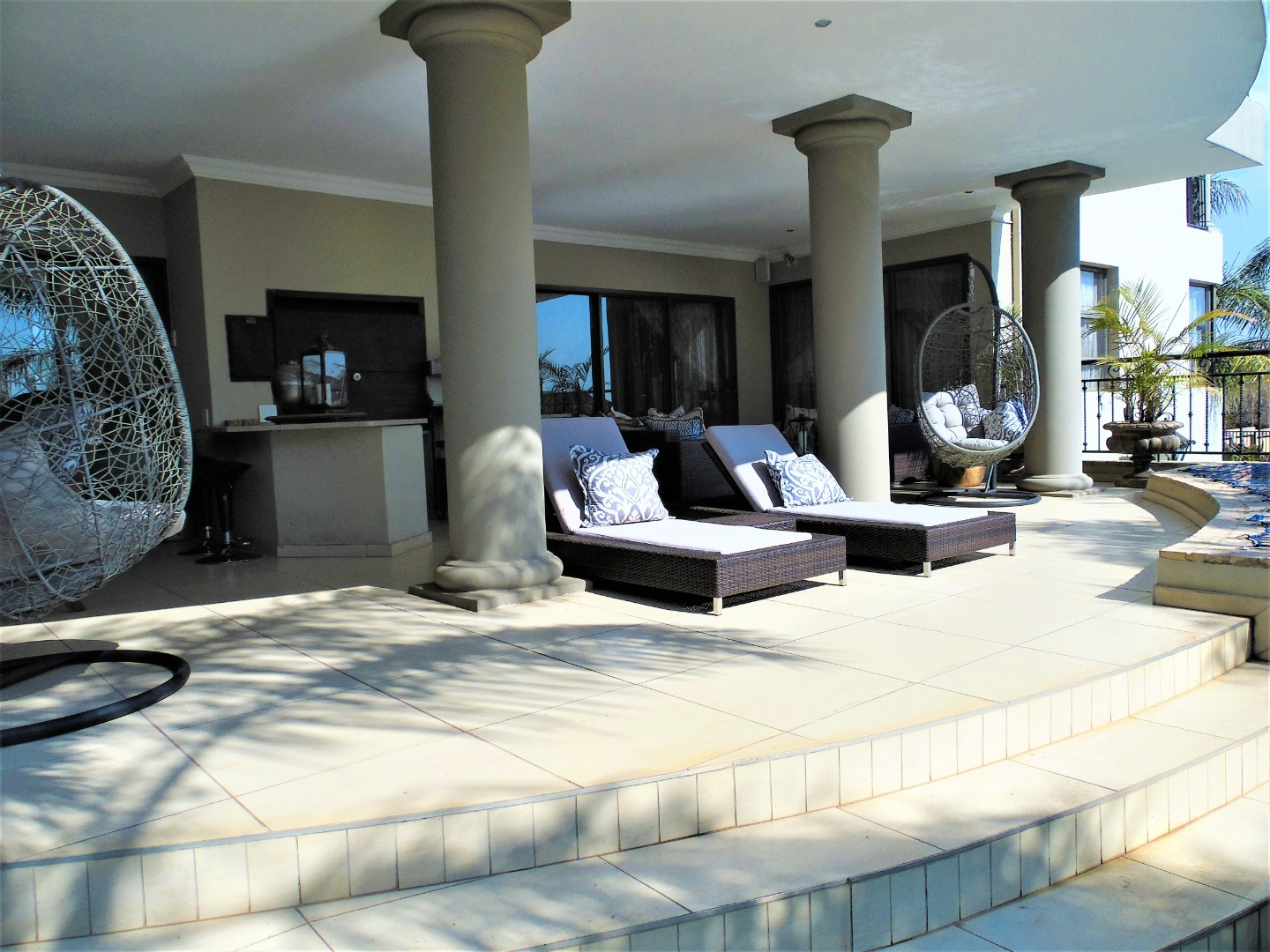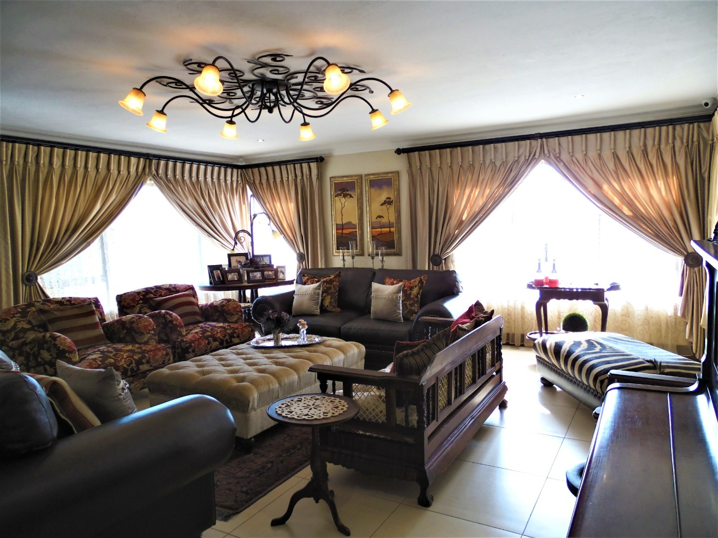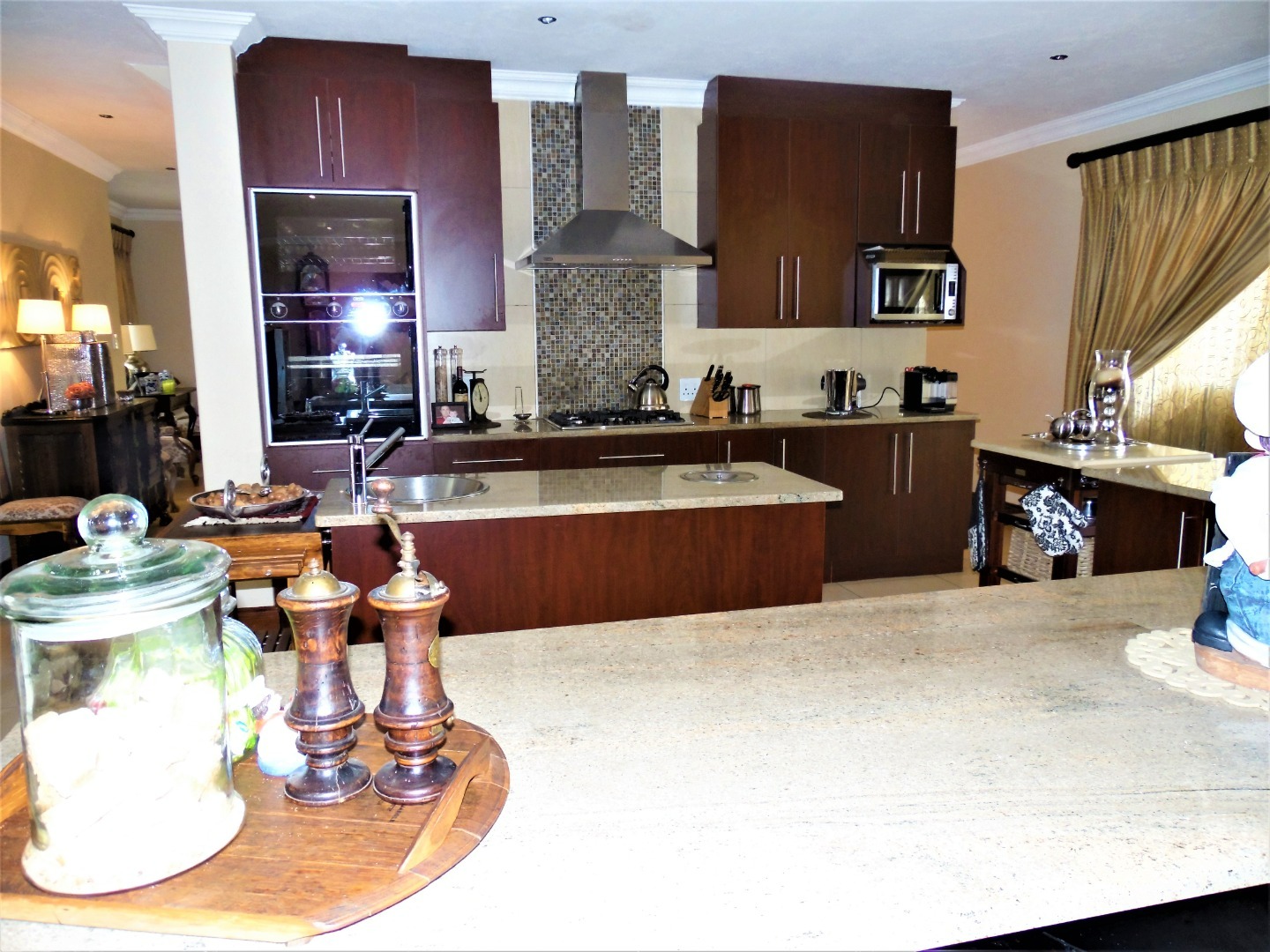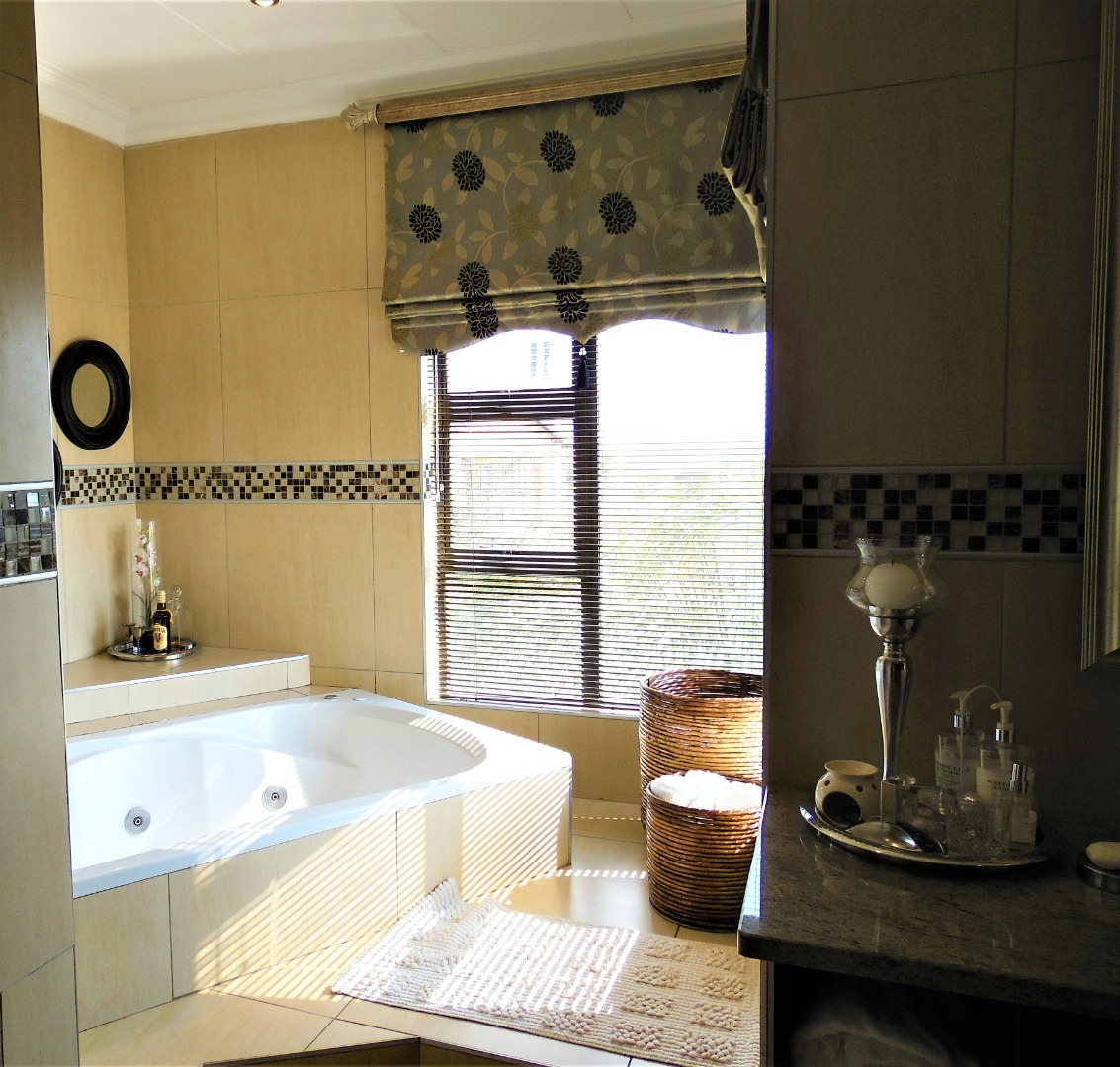 The multiple doors and expansive windows not only provide natural light and ventilation but also offer breathtaking views of the beautifully manicured garden. Four en-suite bedrooms, four reception areas, library/study, gym, kitchen with scullery, four garages extra length with storage space, staff accommodation, and a storeroom. This residence was designed for a family who appreciate luxury and style in a security estate