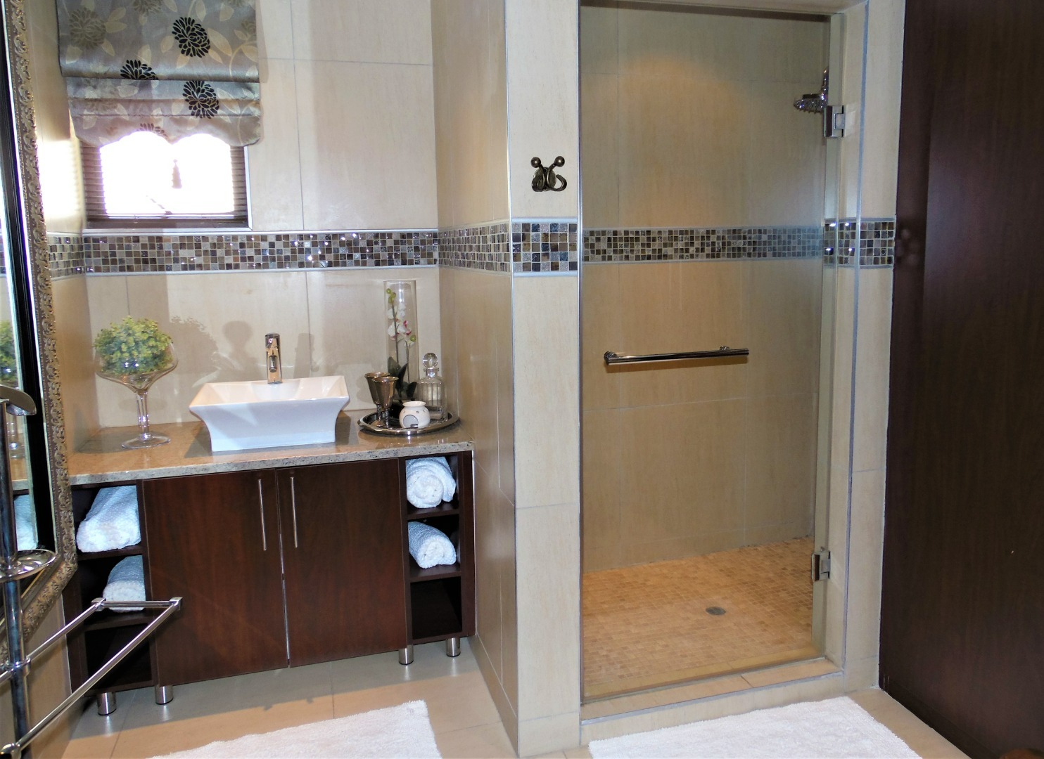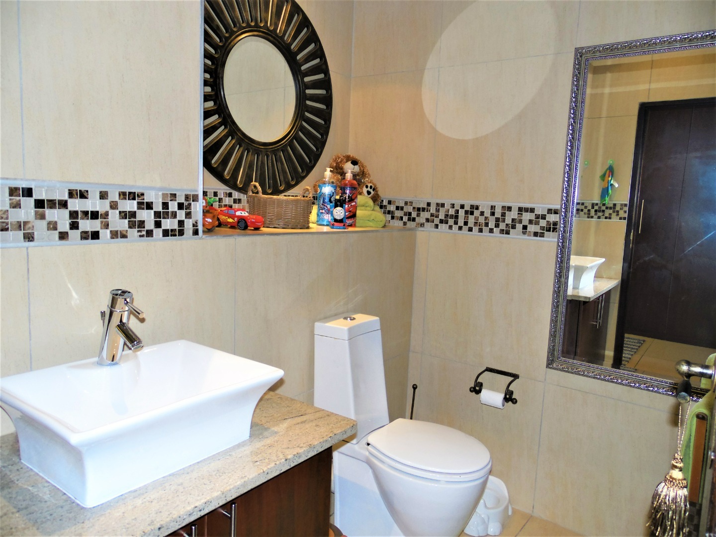 The guest bedroom is located on the lower level of this home, with a bathroom. Three other bedrooms are located on the upper level, from where one can enjoy privacy as well as a beautiful view. The spacious Master bedroom is a haven of relaxation and comfort, it boasts a walk-in closet, a private lounge/ study, and a full bathroom, a sliding door leads to a private patio.