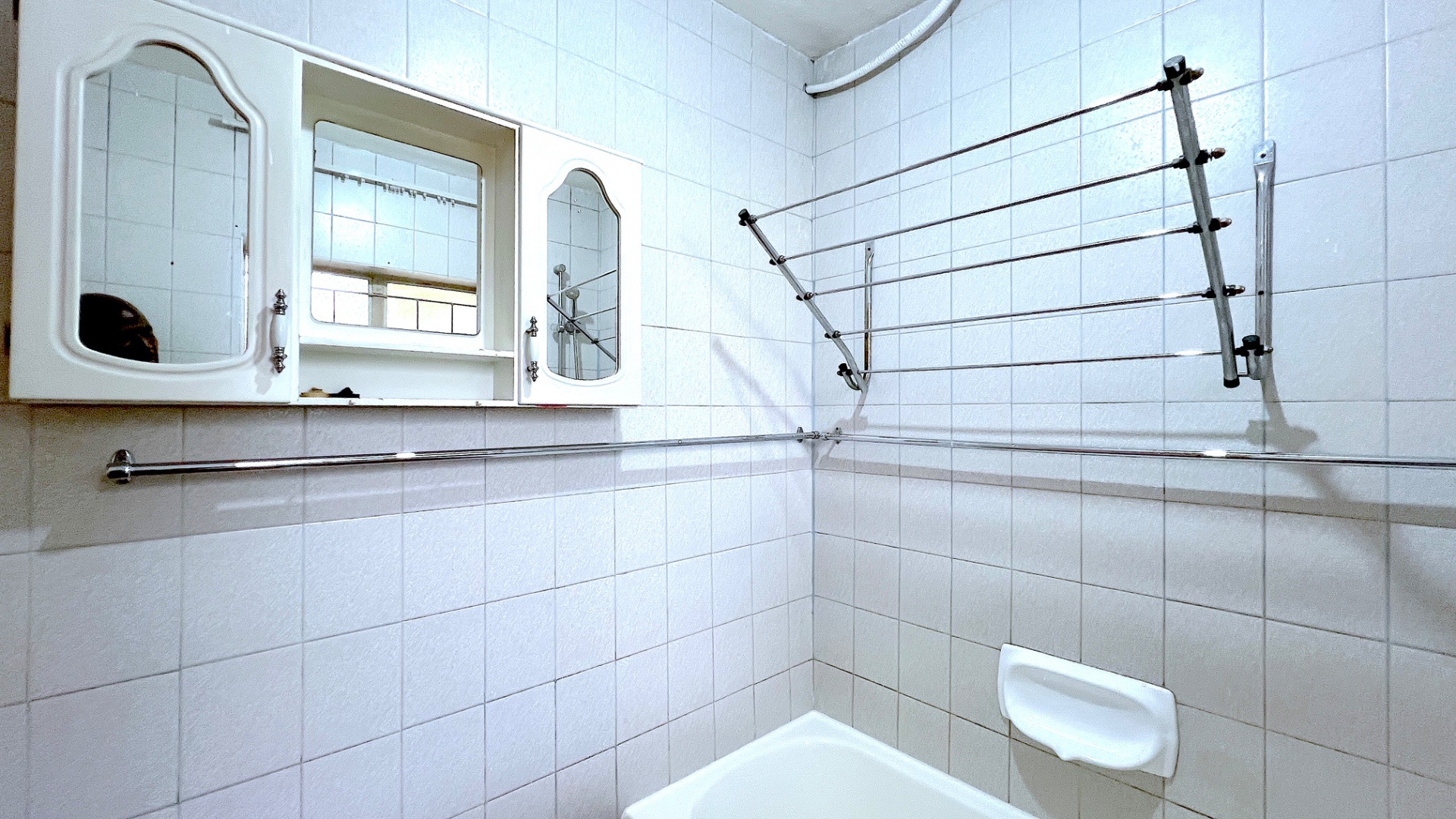A dedicated laundry area, complete with a washing line, is conveniently located in the garage, making household chores more manageable and efficient.