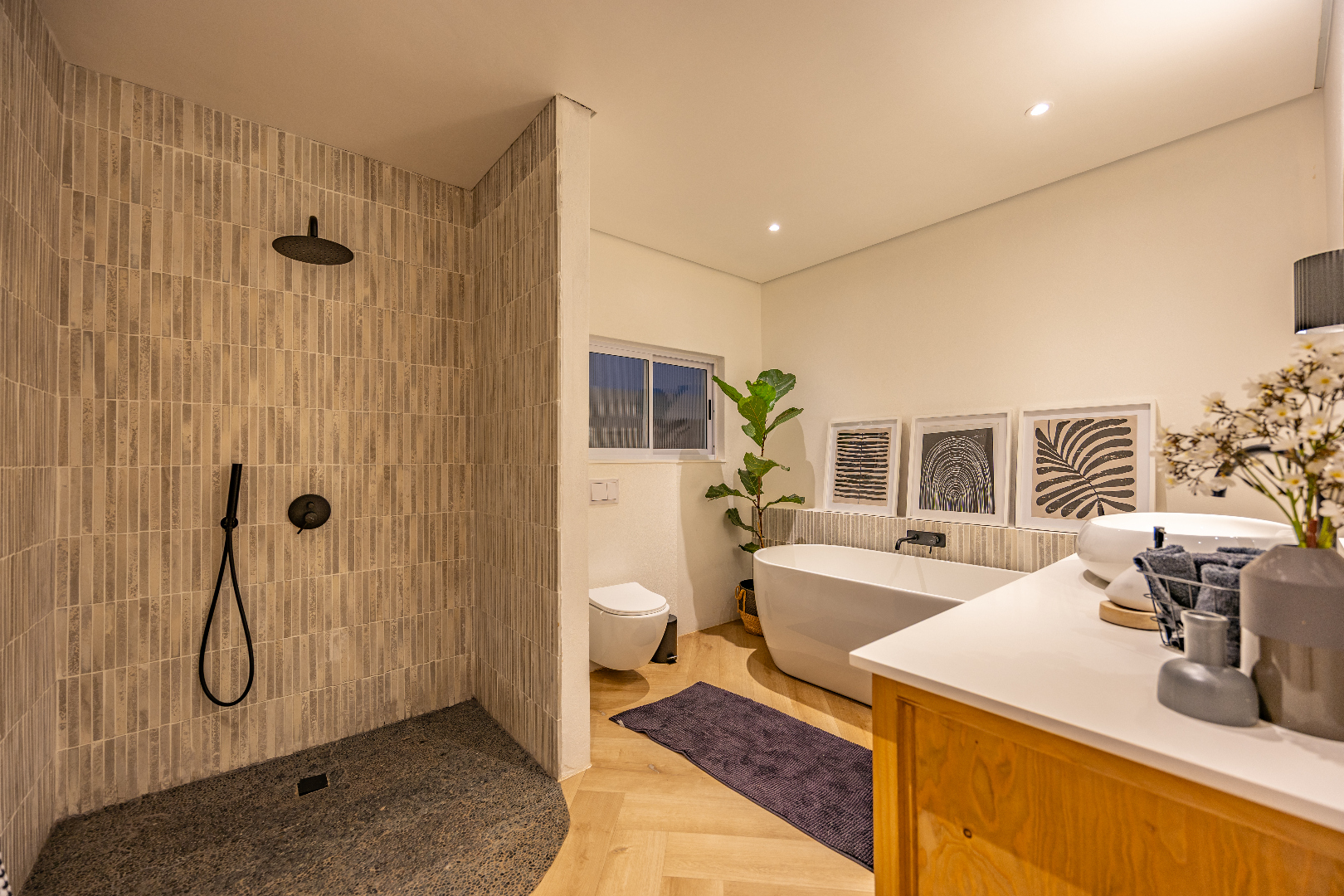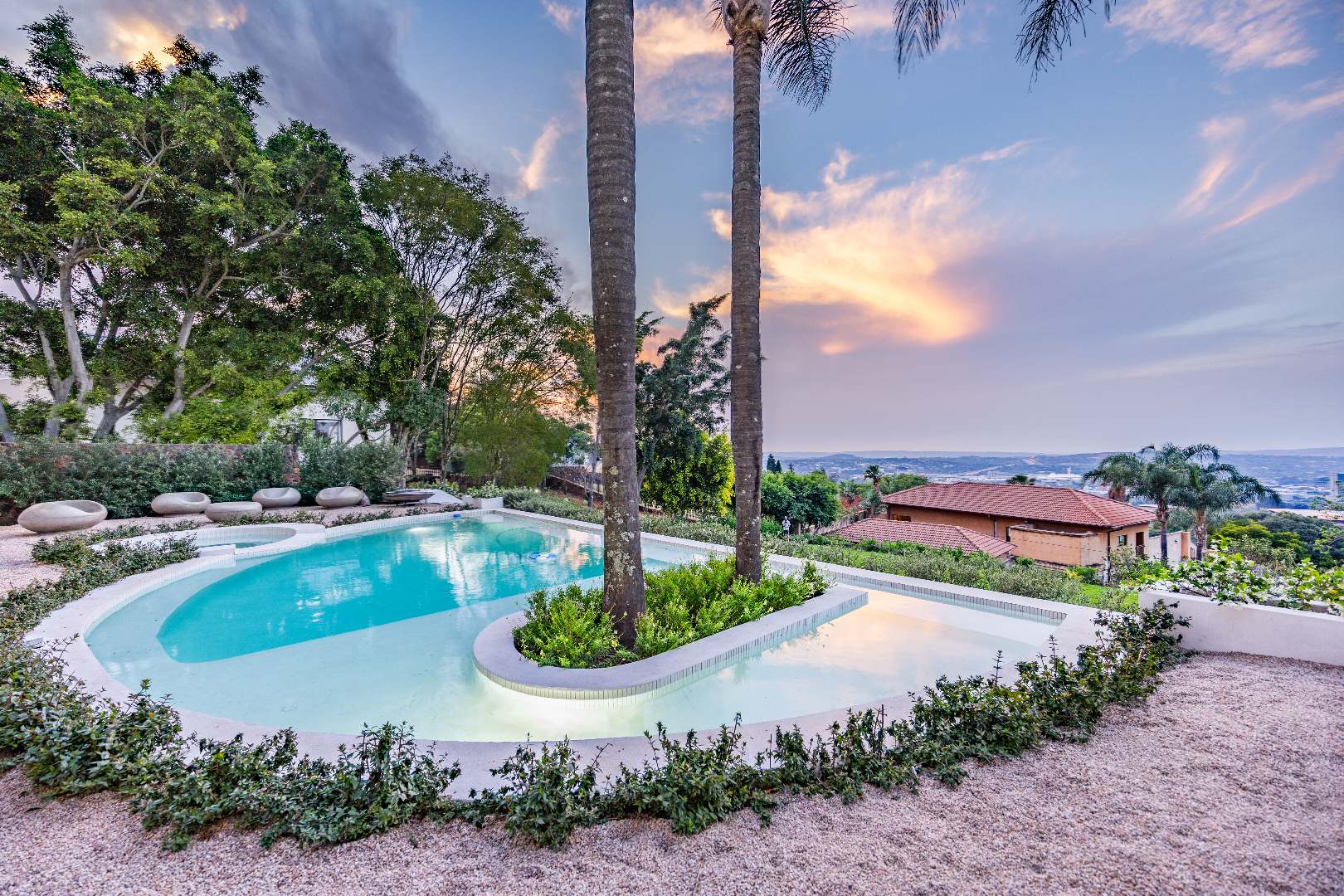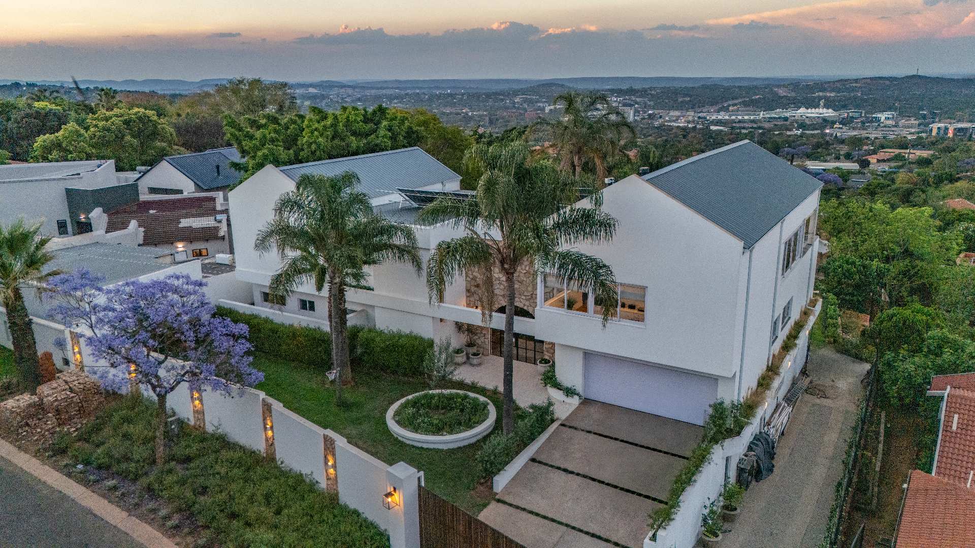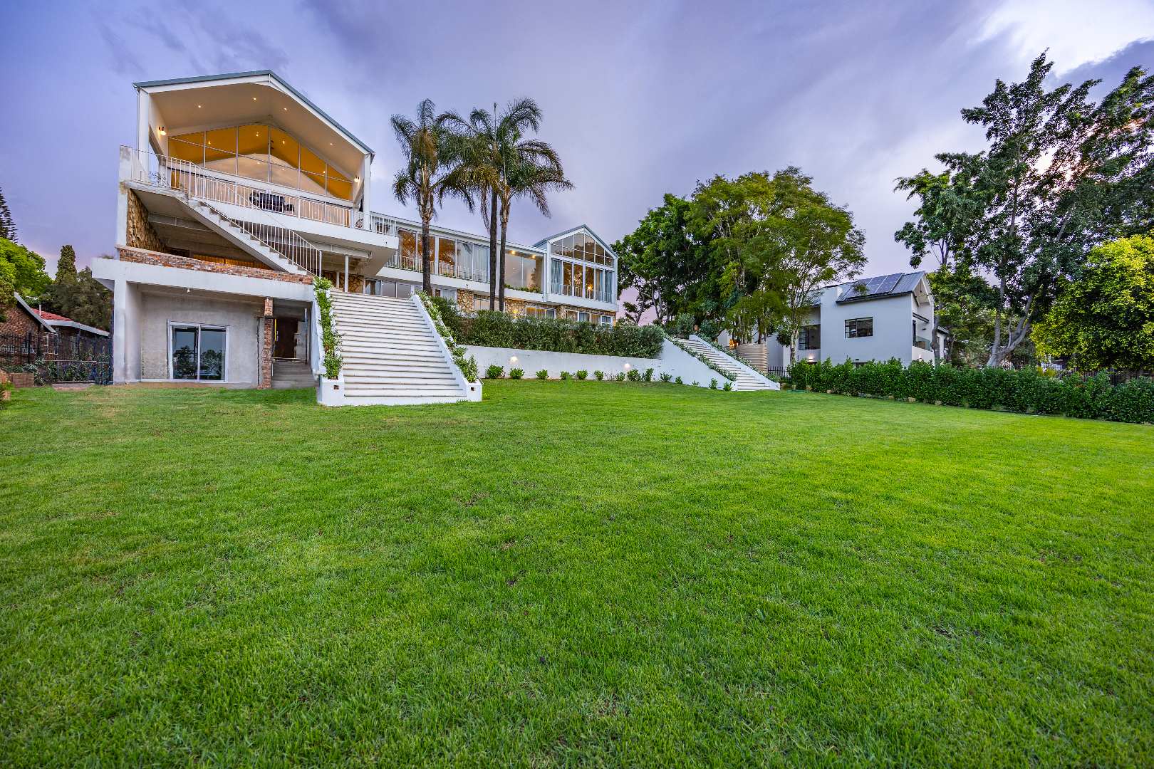 Discover an exceptional residential property in the sought-after Waterkloof Glen, Pretoria, offering a blend of sophisticated design and expansive living. This impressive home spans 716 sqm on a generous 2040 sqm erf, featuring a seamless open-concept layout with striking high vaulted ceilings and elegant herringbone wood flooring throughout. The interior boasts two spacious lounges, a dedicated dining room, and a modern kitchen with a pantry, all designed for contemporary living and entertaining. A captivating stone fireplace adds warmth and character to the main living area. The residence comprises five well-appointed bedrooms and four and a half luxurious bathrooms, including multiple en-suites. These private retreats offer stunning panoramic views through large windows, complemented by features such as freestanding tubs, double vanities, and unique open shower designs, creating a spa-like experience within your home. Outdoor amenities enhance the lifestyle, with a sparkling swimming pool and a deck perfect for relaxation and social gatherings. The property also includes a well-maintained garden, paving, two garages, and four additional parking spaces. Practical additions such as a laundry room, guest toilet, a separate flatlet, and domestic rooms provide convenience and versatility. Situated within a secure gated community and security complex, this home ensures peace of mind. Waterkloof Glen is a desirable Pretoria suburb known for its tranquil environment and accessibility to amenities, making it an ideal location for discerning homeowners. Key Features: * 5 Bedrooms, 4.5 Bathrooms * Open-plan living with vaulted ceilings * Herringbone wood flooring * Luxurious en-suite bathrooms * Swimming pool and deck * 2 Garages, 4 Parking spaces * Flatlet and domestic rooms * Gated community security