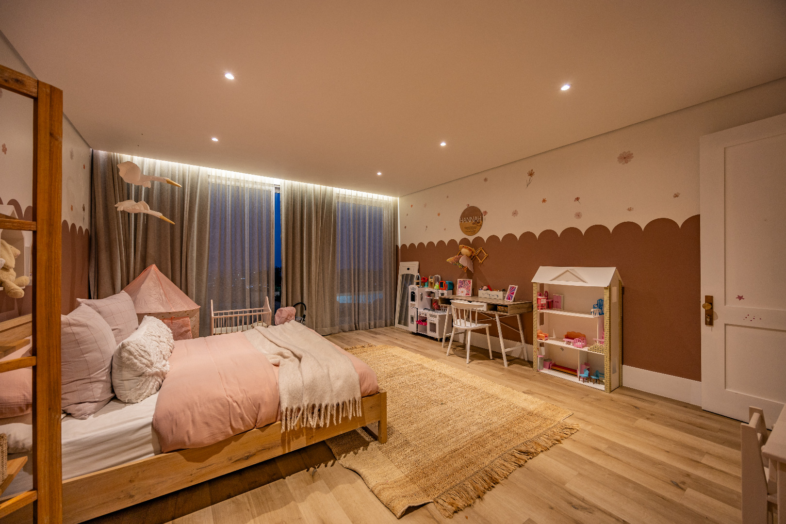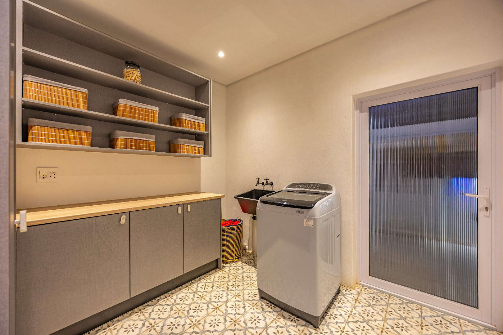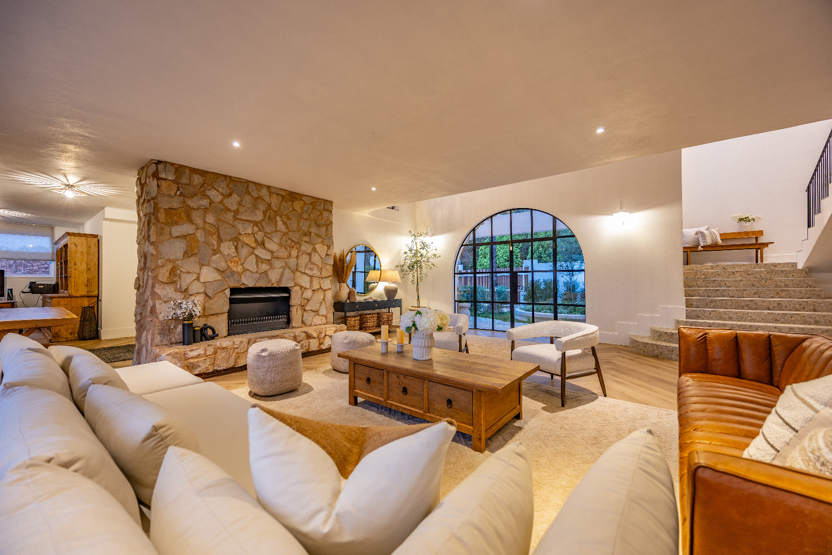 Discover an exceptional residential property in the sought-after Waterkloof Glen, Pretoria, offering a blend of sophisticated design and expansive living. This impressive home spans 716 sqm on a generous 2040 sqm erf, featuring a seamless open-concept layout with striking high vaulted ceilings and elegant herringbone wood flooring throughout. The interior boasts two spacious lounges, a dedicated dining room, and a modern kitchen with a pantry, all designed for contemporary living and entertaining. A captivating stone fireplace adds warmth and character to the main living area. The residence comprises five well-appointed bedrooms and four and a half luxurious bathrooms, including multiple en-suites. These private retreats offer stunning panoramic views through large windows, complemented by features such as freestanding tubs, double vanities, and unique open shower designs, creating a spa-like experience within your home. Outdoor amenities enhance the lifestyle, with a sparkling swimming pool and a deck perfect for relaxation and social gatherings. The property also includes a well-maintained garden, paving, two garages, and four additional parking spaces. Practical additions such as a laundry room, guest toilet, a separate flatlet, and domestic rooms provide convenience and versatility. Situated within a secure gated community and security complex, this home ensures peace of mind. Waterkloof Glen is a desirable Pretoria suburb known for its tranquil environment and accessibility to amenities, making it an ideal location for discerning homeowners. Key Features: * 5 Bedrooms, 4.5 Bathrooms * Open-plan living with vaulted ceilings * Herringbone wood flooring * Luxurious en-suite bathrooms * Swimming pool and deck * 2 Garages, 4 Parking spaces * Flatlet and domestic rooms * Gated community security