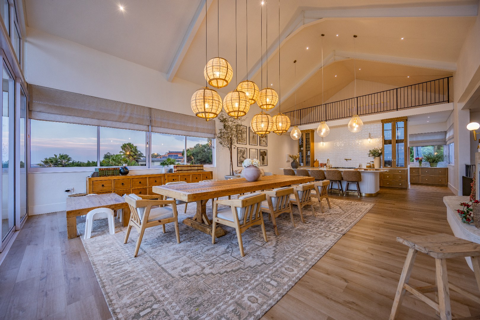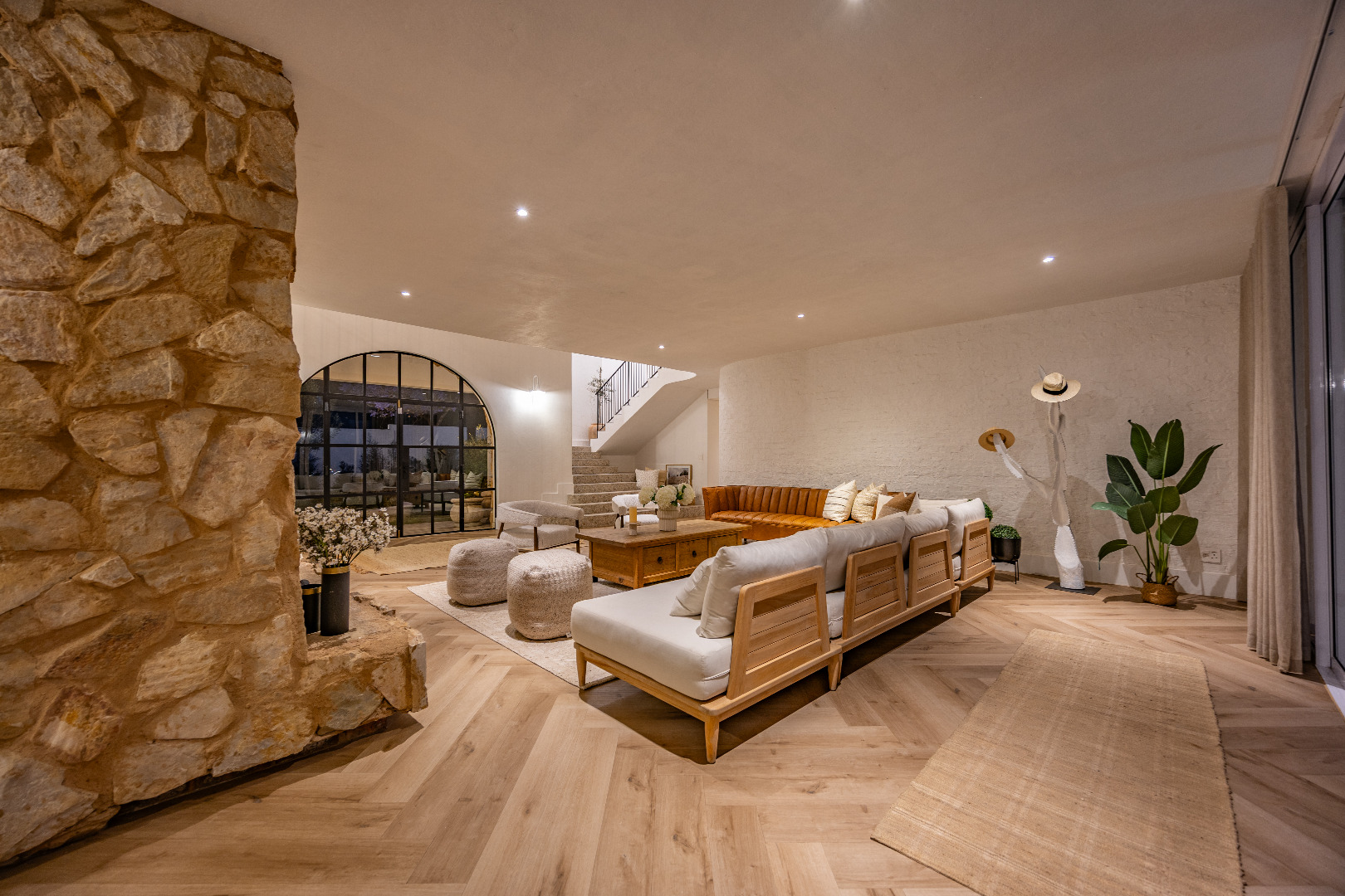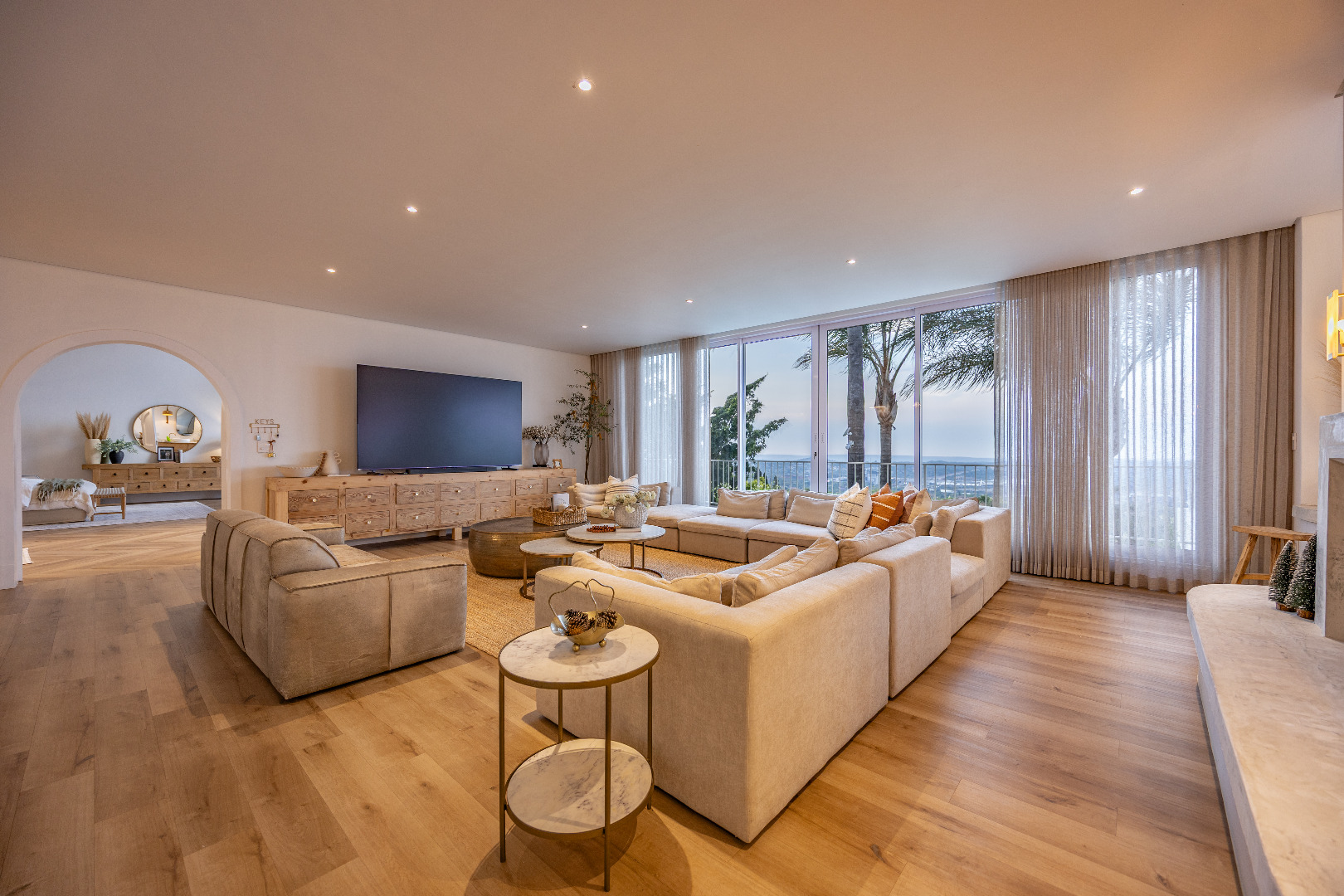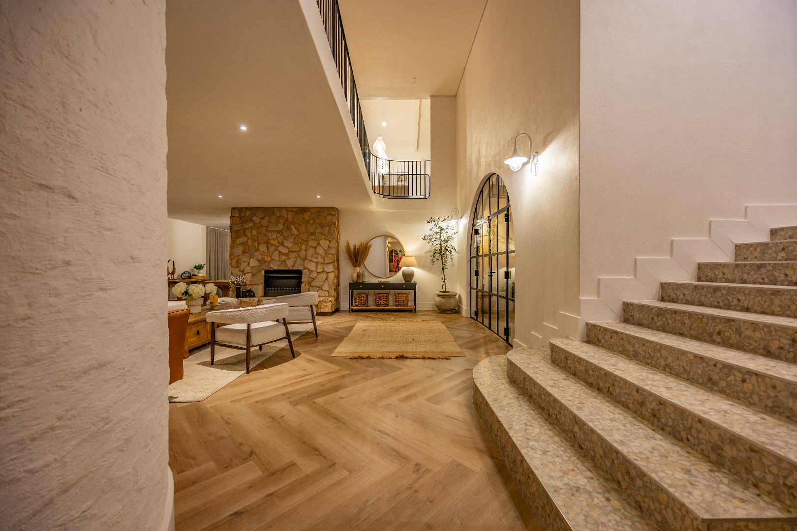 Discover an exceptional residential property in the sought-after Waterkloof Glen, Pretoria, offering a blend of sophisticated design and expansive living. This impressive home spans 716 sqm on a generous 2040 sqm erf, featuring a seamless open-concept layout with striking high vaulted ceilings and elegant herringbone wood flooring throughout. The interior boasts two spacious lounges, a dedicated dining room, and a modern kitchen with a pantry, all designed for contemporary living and entertaining. A captivating stone fireplace adds warmth and character to the main living area. The residence comprises five well-appointed bedrooms and four and a half luxurious bathrooms, including multiple en-suites. These private retreats offer stunning panoramic views through large windows, complemented by features such as freestanding tubs, double vanities, and unique open shower designs, creating a spa-like experience within your home. Outdoor amenities enhance the lifestyle, with a sparkling swimming pool and a deck perfect for relaxation and social gatherings. The property also includes a well-maintained garden, paving, two garages, and four additional parking spaces. Practical additions such as a laundry room, guest toilet, a separate flatlet, and domestic rooms provide convenience and versatility. Situated within a secure gated community and security complex, this home ensures peace of mind. Waterkloof Glen is a desirable Pretoria suburb known for its tranquil environment and accessibility to amenities, making it an ideal location for discerning homeowners. Key Features: * 5 Bedrooms, 4.5 Bathrooms * Open-plan living with vaulted ceilings * Herringbone wood flooring * Luxurious en-suite bathrooms * Swimming pool and deck * 2 Garages, 4 Parking spaces * Flatlet and domestic rooms * Gated community security