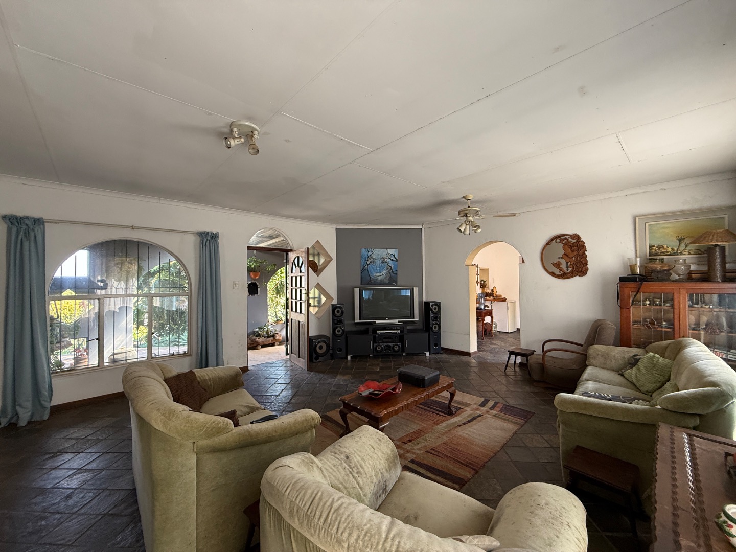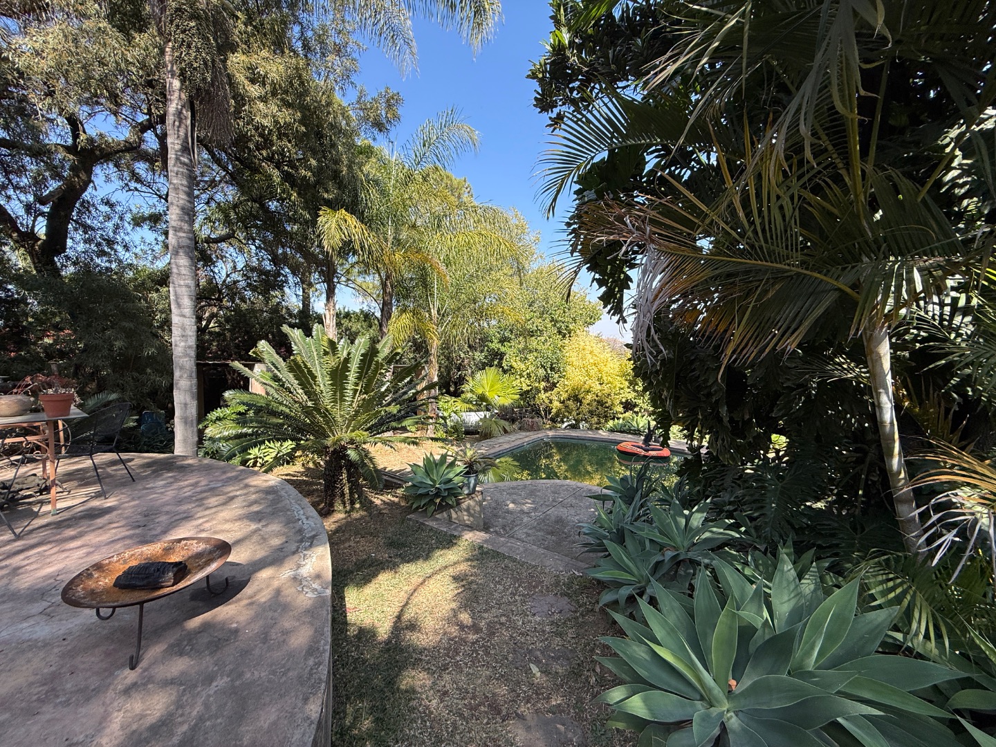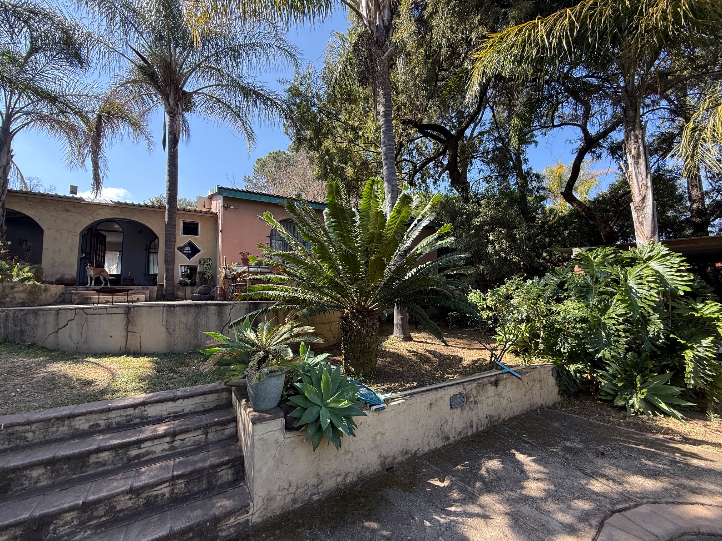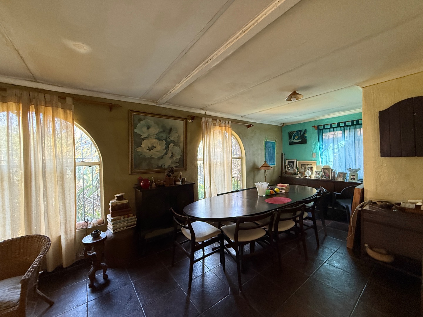 The property currently hosts two separate houses, offering rental income potential or accommodation during development. A large swimming pool and established garden enhance the appeal for both short-term use and long-term vision.