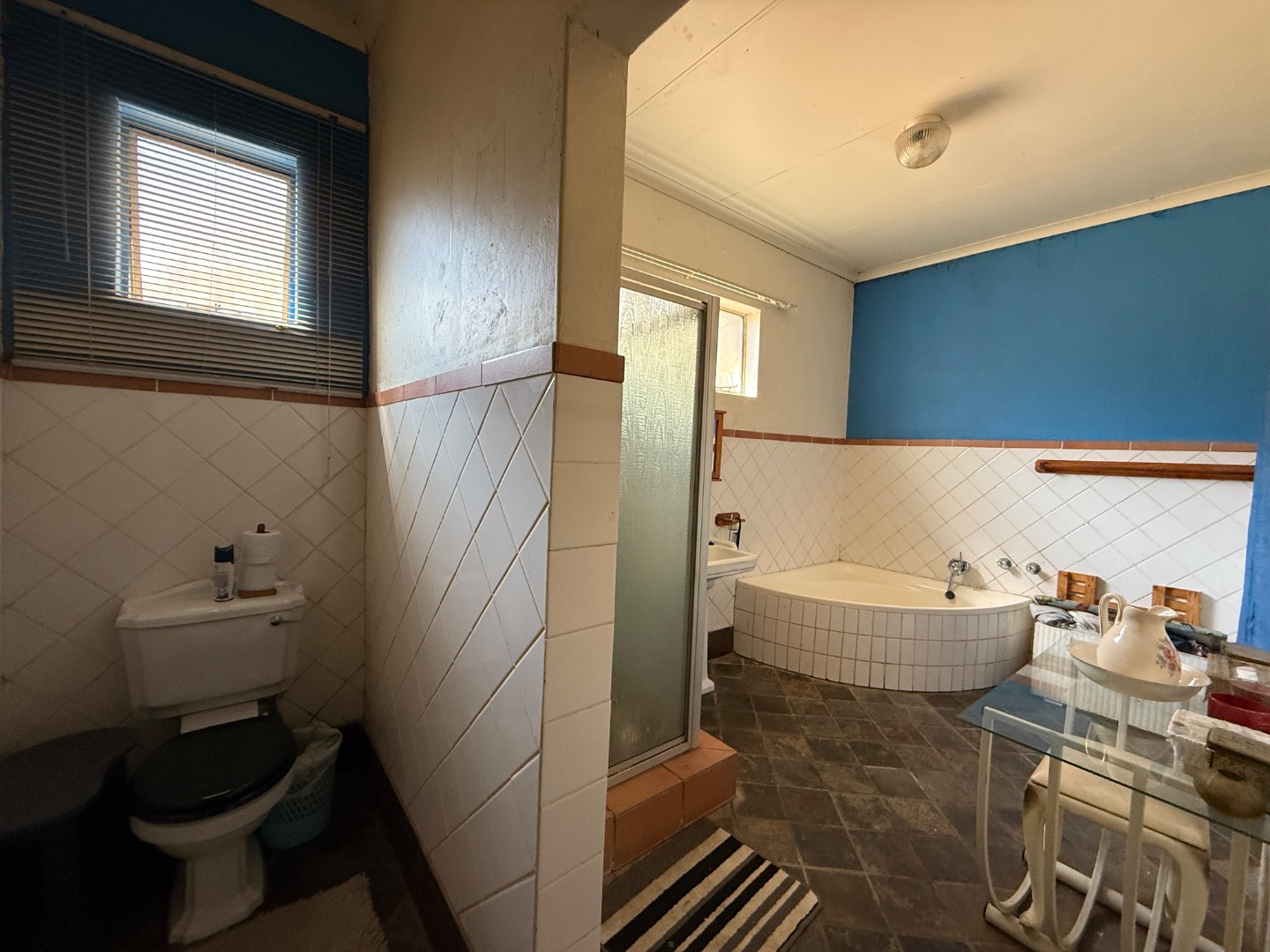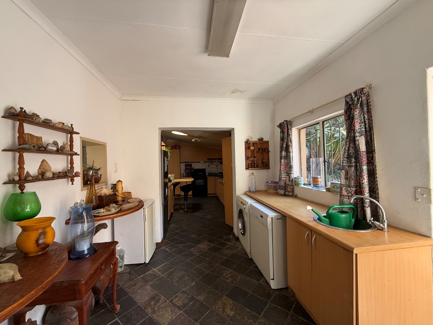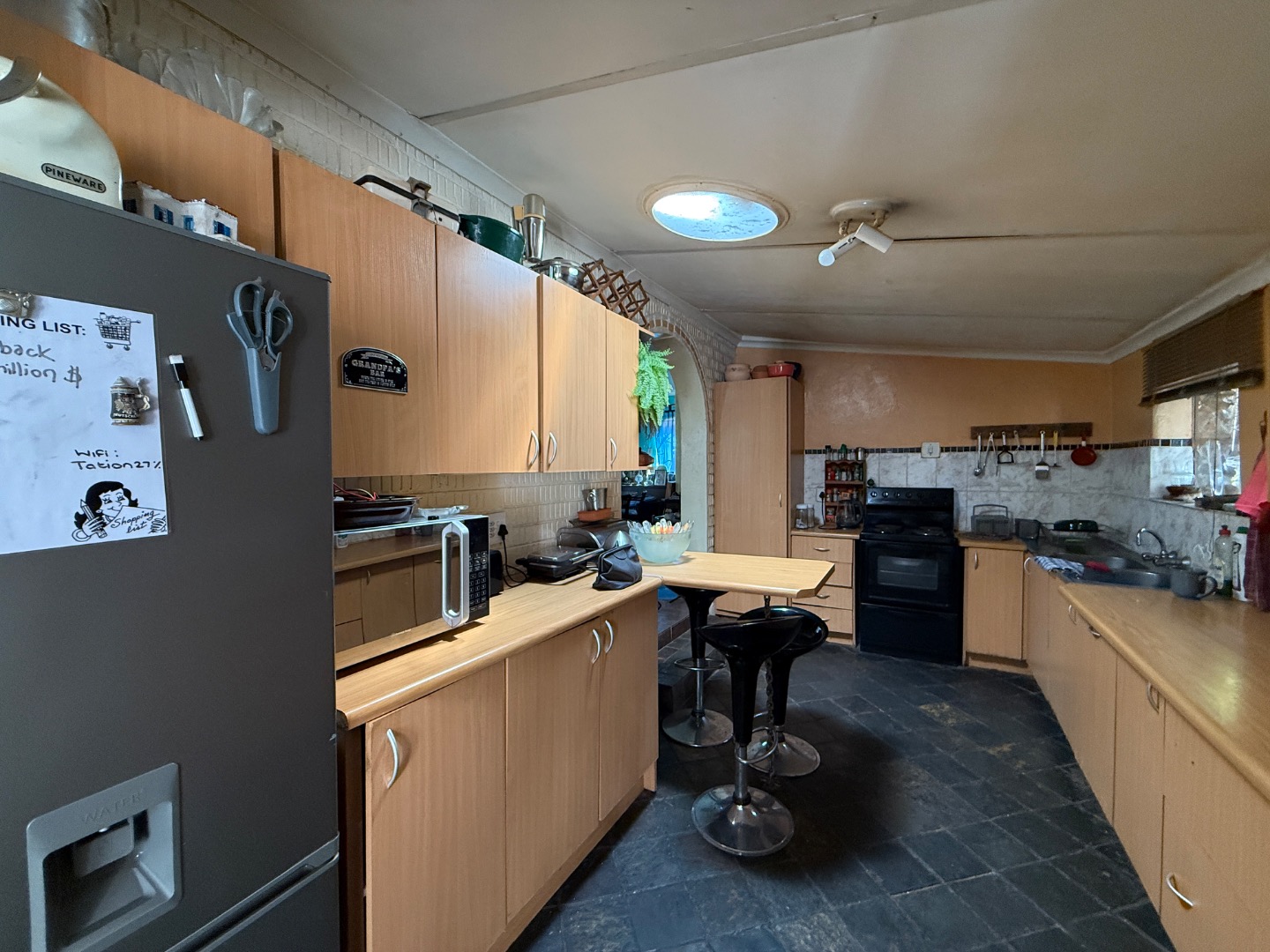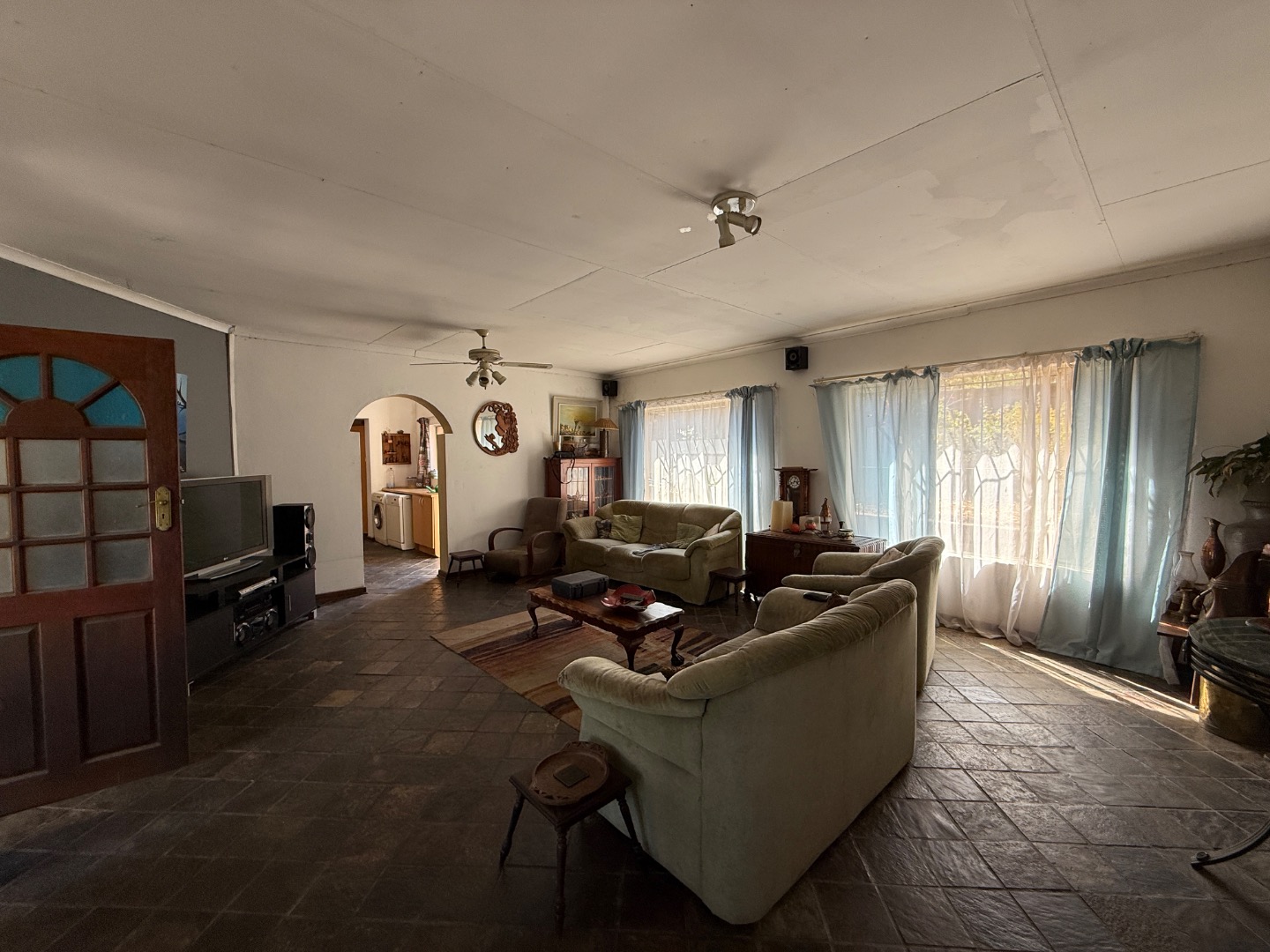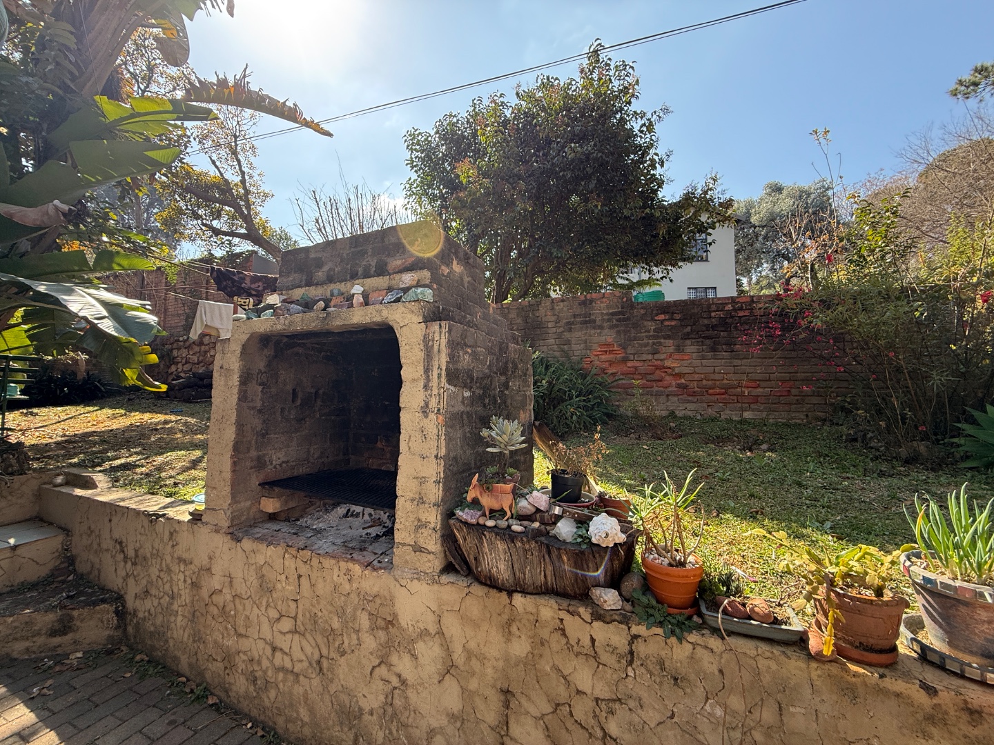 The property currently hosts two separate houses, offering rental income potential or accommodation during development. A large swimming pool and established garden enhance the appeal for both short-term use and long-term vision.