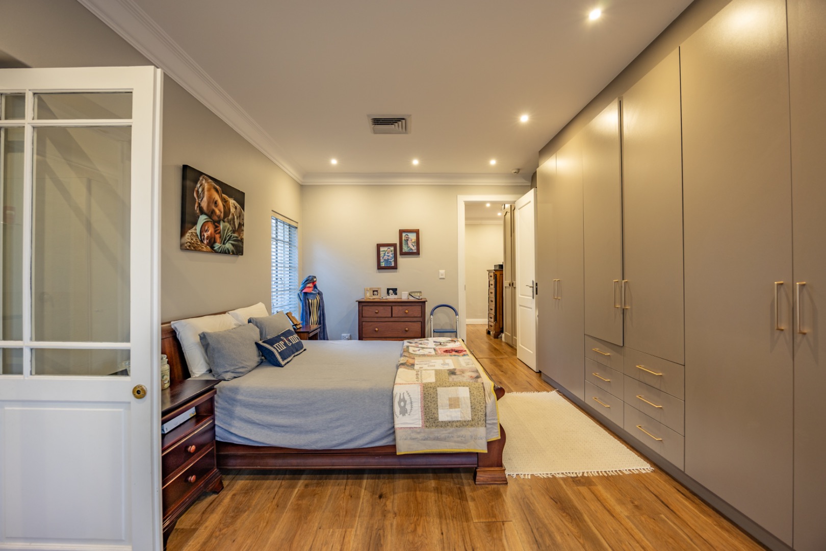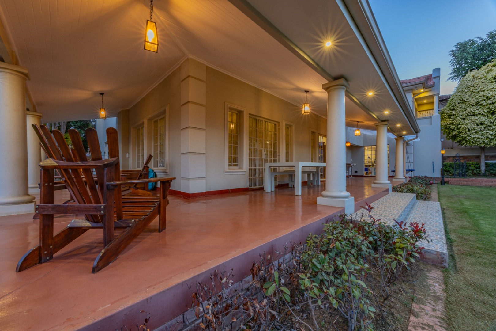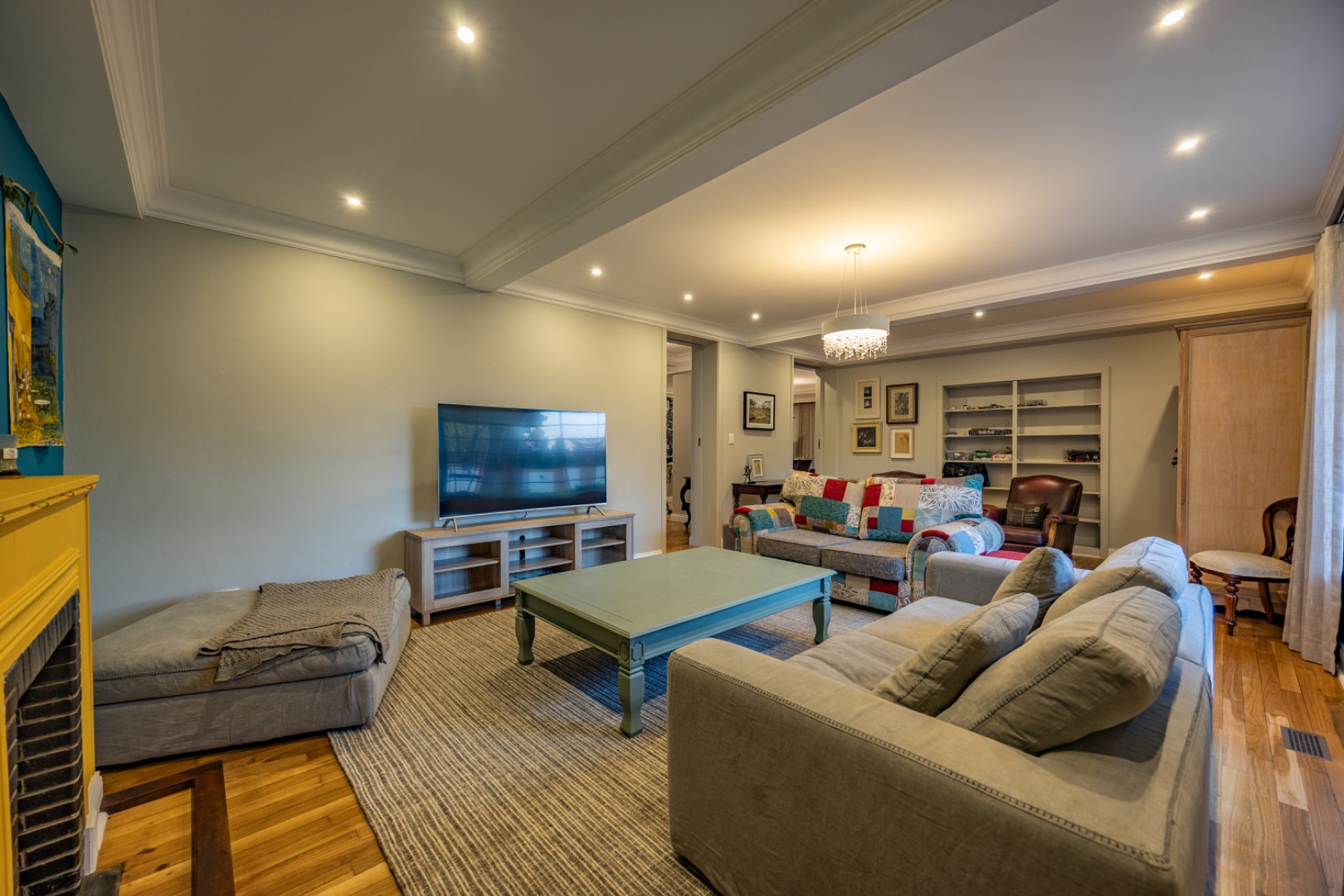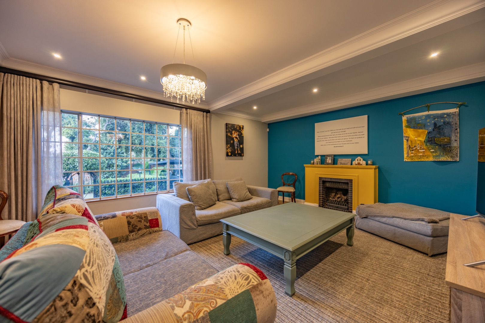 This beautiful residence offers the perfect balance of elegance, comfort, and functionality. Upon entering, you are welcomed by a spacious entrance hall that immediately sets the tone for the home’s warm yet sophisticated atmosphere. To the left, a generously sized TV lounge with a gas fireplace creates a cozy space for family gatherings, while a private lounge with a built-in bookshelf provides a quieter retreat, ideal for reading or intimate conversations. The formal dining room is designed for effortless entertaining, flowing seamlessly onto a wraparound patio that overlooks a landscaped garden and sparkling swimming pool. The layout is perfect for hosting both indoor and outdoor occasions, with a guest toilet conveniently located for visitors.