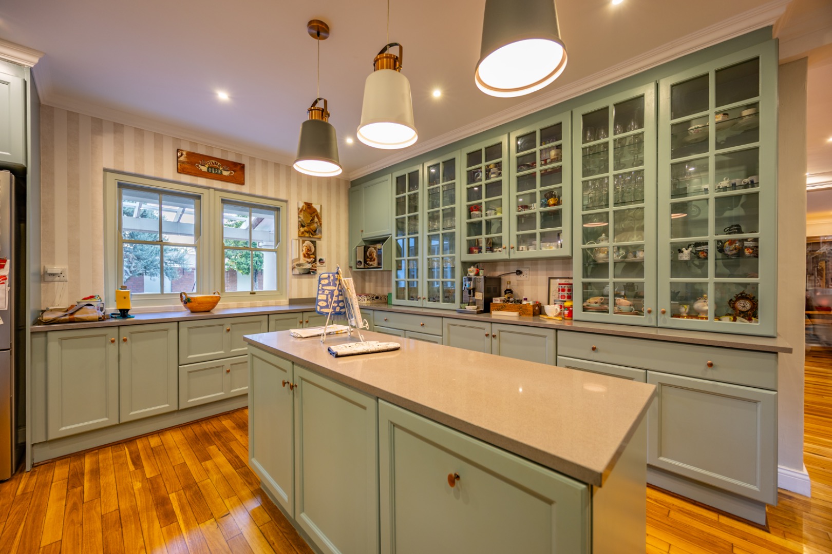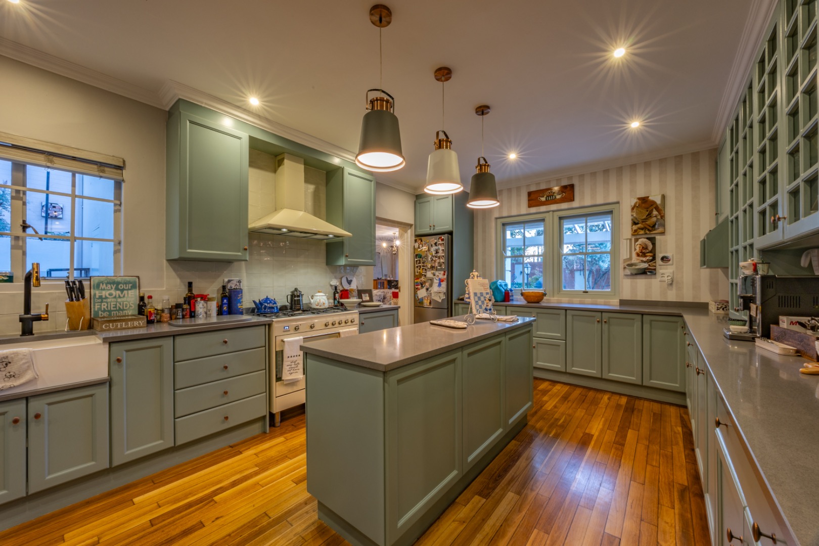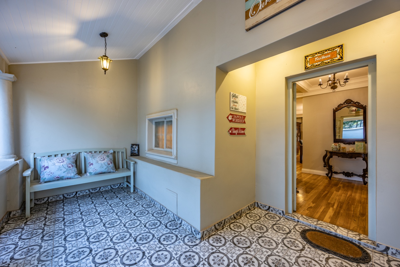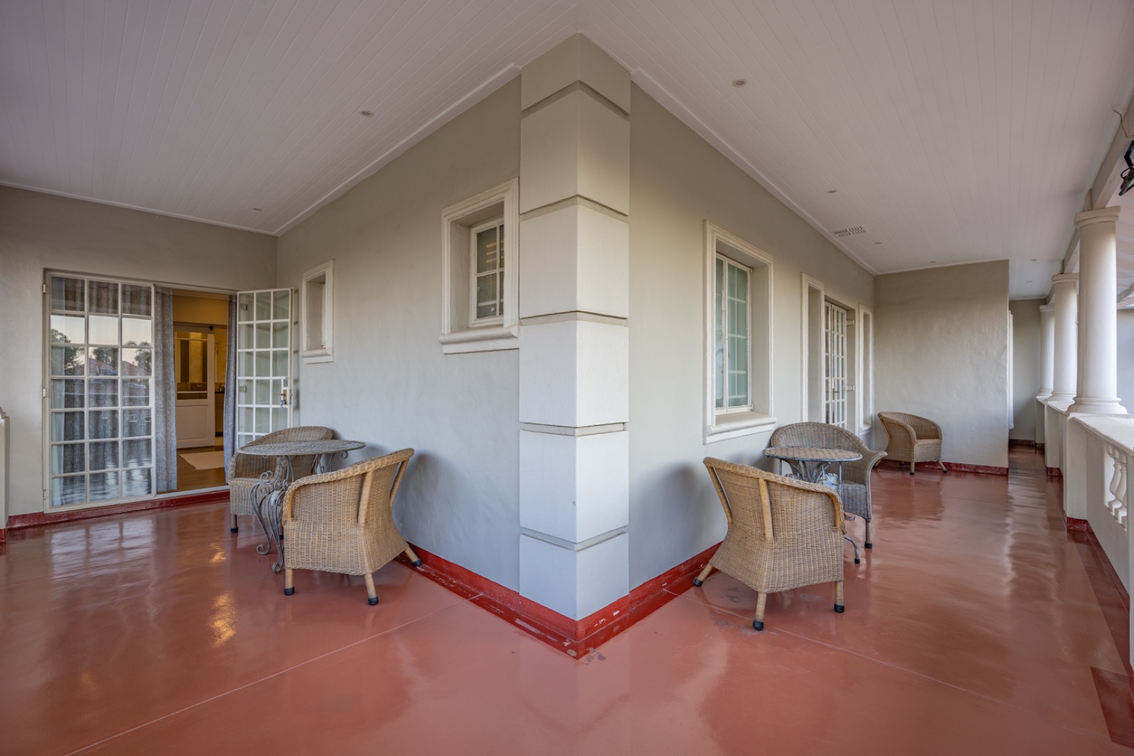 The kitchen is a chef’s delight, fitted with both a Smeg gas oven and an electric oven, offering versatility for all culinary needs. It is further enhanced by a spacious scullery, a walk-in pantry, and a separate laundry room, ensuring that every practical requirement of family living is met with ease.