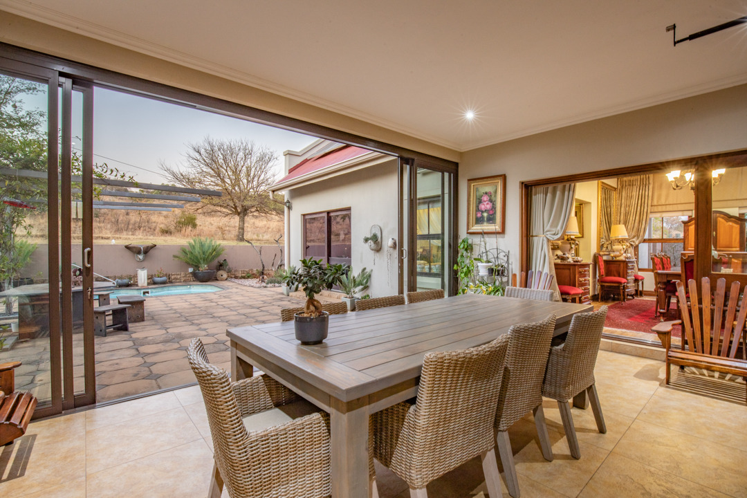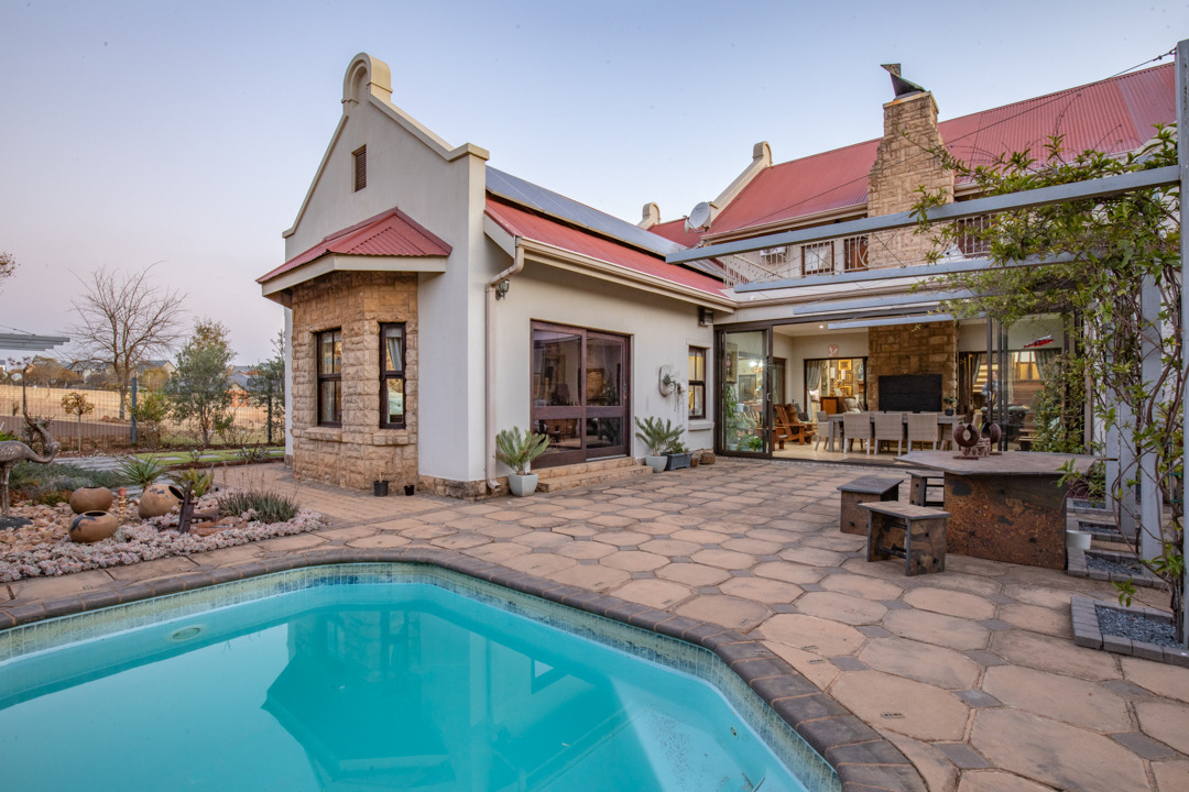 Upstairs, elegance and comfort continue with a pajama lounge that includes a mini-kitchen and opens onto a balcony with its own built-in braai. Two additional bedrooms feature built-in cupboards, air conditioning, and balcony access, while another spacious bedroom includes a walk-in cupboard and full ensuite bathroom. An extra bathroom with a shower completes the layout. Added conveniences include a double garage fitted with an inverter, battery, and solar panels for energy efficiency. Living in Waterlake Farm Estate means enjoying top-class facilities such as a gym and indoor pool, surrounded by breathtaking scenery and abundant wildlife. Here, the tranquillity of country living is beautifully paired with the convenience of city amenities—making this exceptional property an opportunity not to be missed.