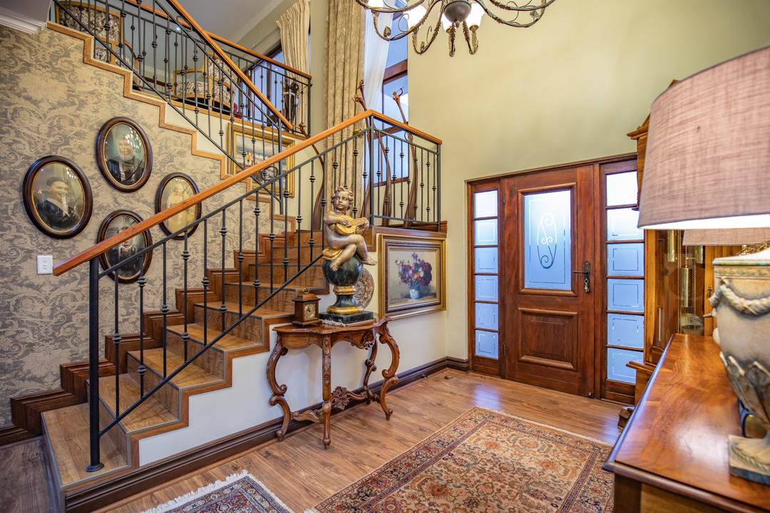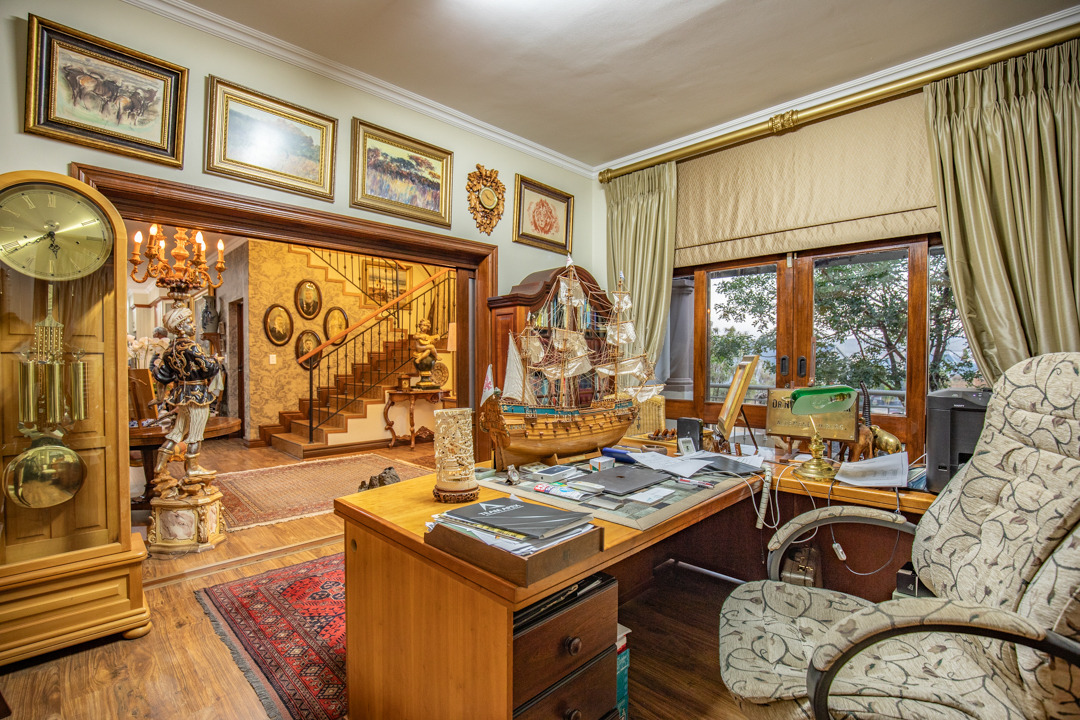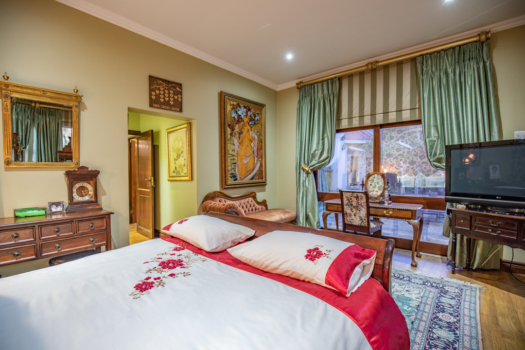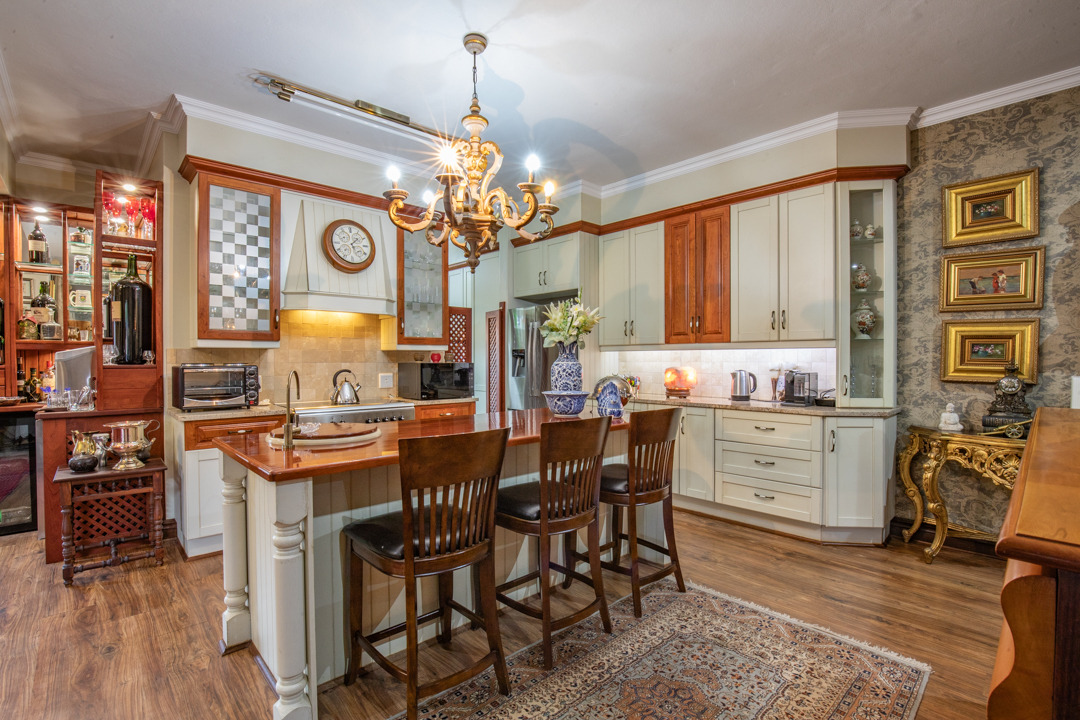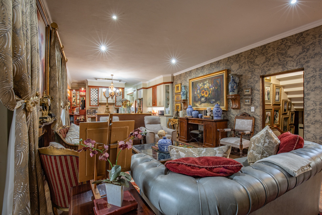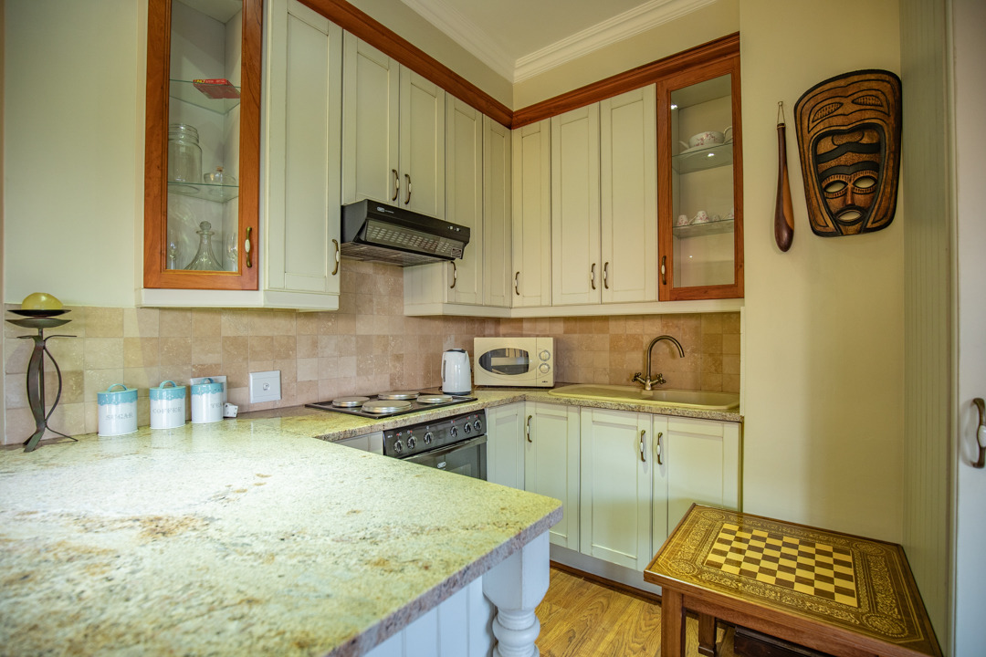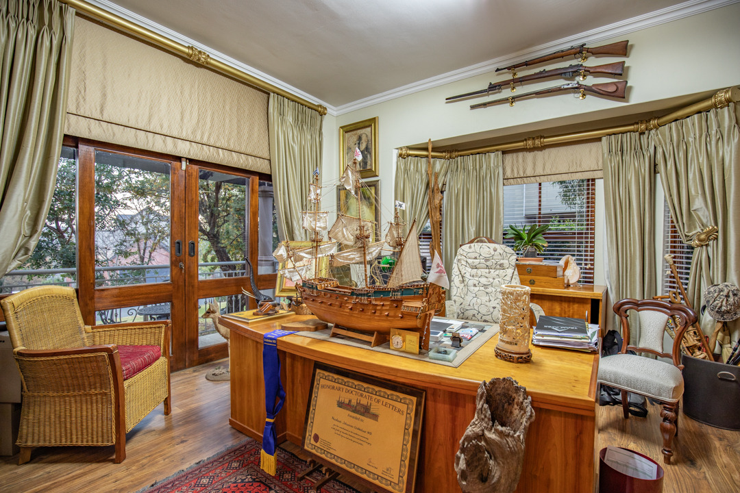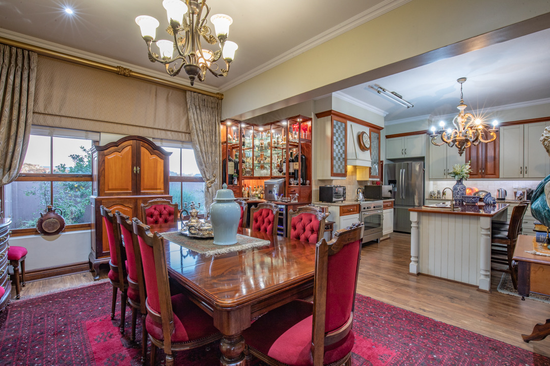 Nestled in the prestigious Waterlake Farm Estate, this beautiful 4-bedroom home perfectly balances modern luxury with serene natural surroundings. The ground floor features a spacious study with built-in shelves, laminate floors, sliding wooden doors, and air conditioning, as well as a stylish guest room with built-in cupboards, double-volume ceilings, and its own full bathroom. The open-plan living area is ideal for gatherings, with a gas fireplace and seamless flow into the kitchen, which boasts rosewood countertops, a gas stove, electric oven, prep bowl with a filter, and space for a double fridge. A separate scullery with pantry, granite countertops, and space for three appliances leads to the courtyard, while the dining area, enhanced by a built-in rosewood bar, adds warmth and charm.