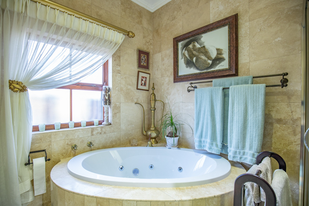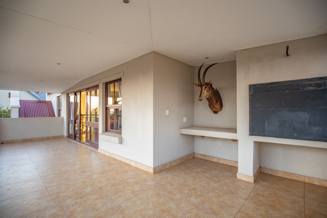The ground floor also offers a luxurious main bedroom retreat with walk-in cupboards, a full ensuite bathroom featuring a spa bath and double basin, and large glazed windows that fill the space with natural light. A smaller study or hobby room adds versatility. The outdoor entertainment area is a highlight, designed for relaxation and entertaining, with a built-in braai (wood or gas), prep bowl, and stack doors opening.