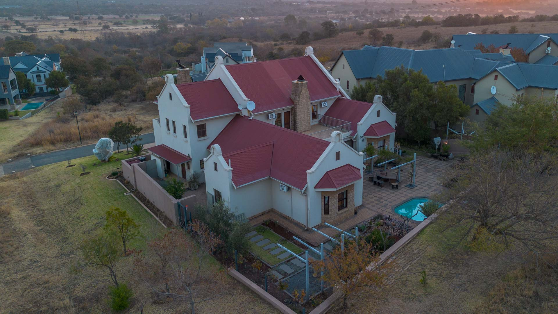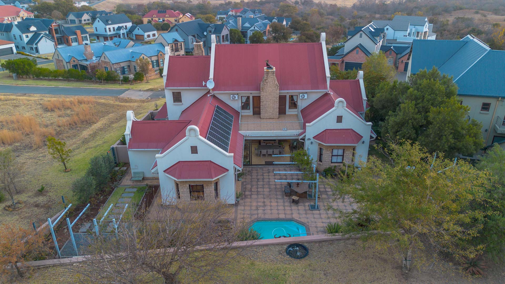 Upstairs, elegance and comfort continue with a pajama lounge that includes a mini-kitchen and opens onto a balcony with its own built-in braai. Two additional bedrooms feature built-in cupboards, air conditioning, and balcony access, while another spacious bedroom includes a walk-in cupboard and full ensuite bathroom. An extra bathroom with a shower completes the layout. Added conveniences include a double garage fitted with an inverter, battery, and solar panels for energy efficiency. Living in Waterlake Farm Estate means enjoying top-class facilities such as a gym and indoor pool, surrounded by breathtaking scenery and abundant wildlife. Here, the tranquillity of country living is beautifully paired with the convenience of city amenities—making this exceptional property an opportunity not to be missed.