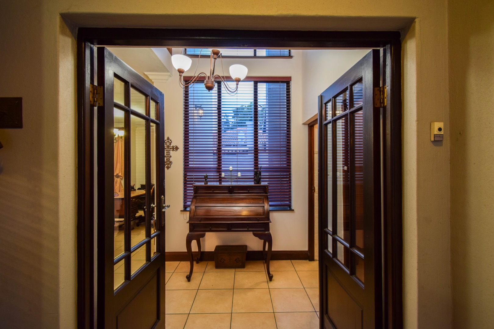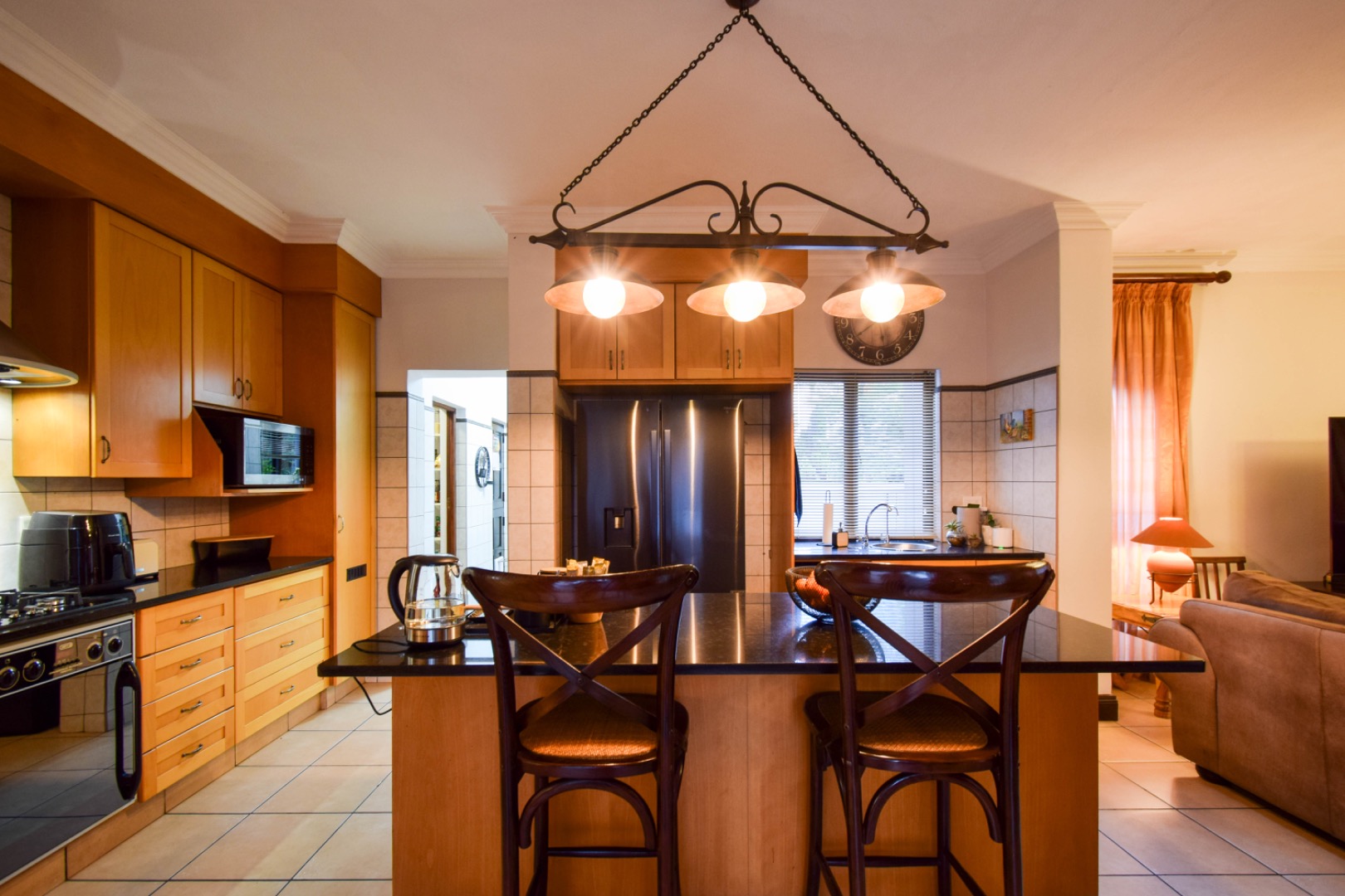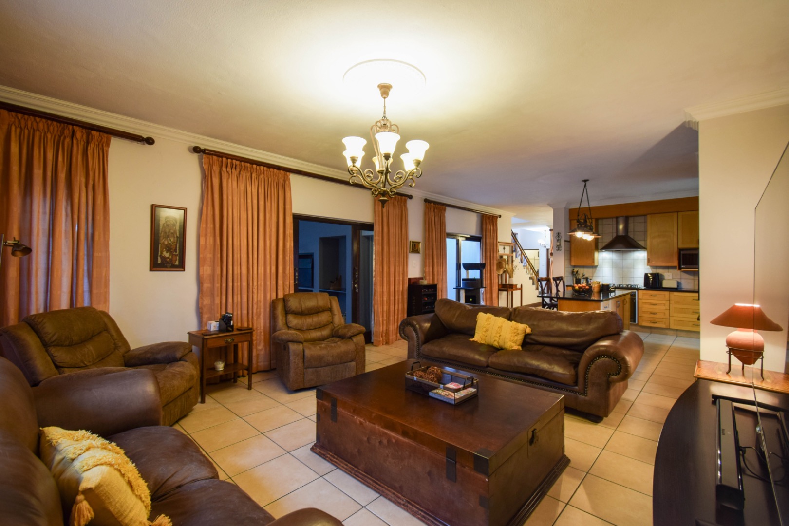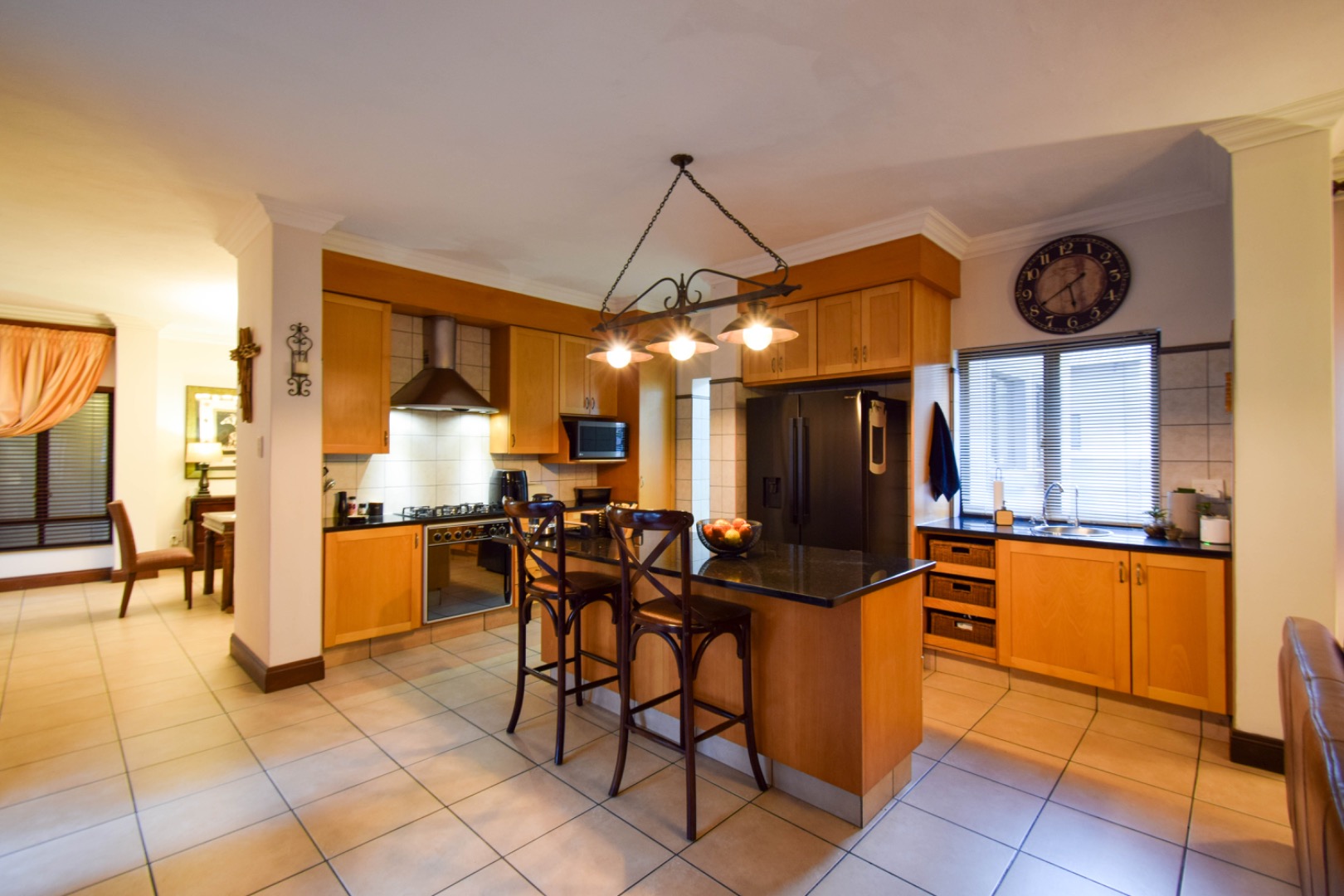 Enjoy outdoor living with a private garden, a welcoming patio, and a balcony, perfect for unwinding. The property also includes a built-in braai and a fireplace, ideal for year-round entertaining. Practical amenities such as staff quarters, a laundry room, storage, and a pantry add to the home's functionality. With two garages and four additional parking spaces, convenience is assured. Modern comforts like air conditioning, fibre internet, and an irrigation system are also in place.