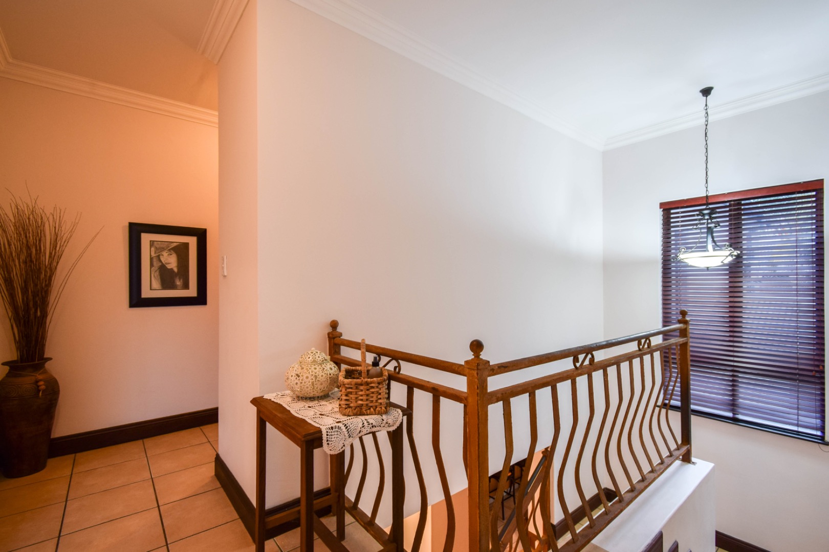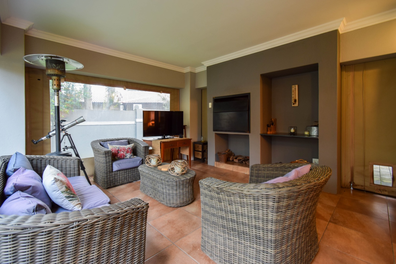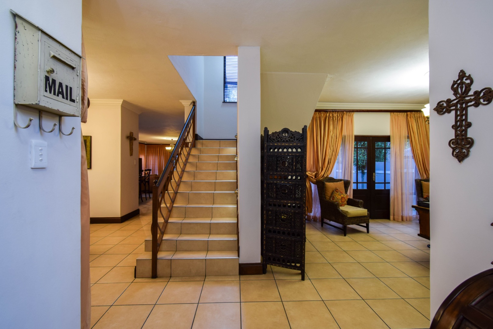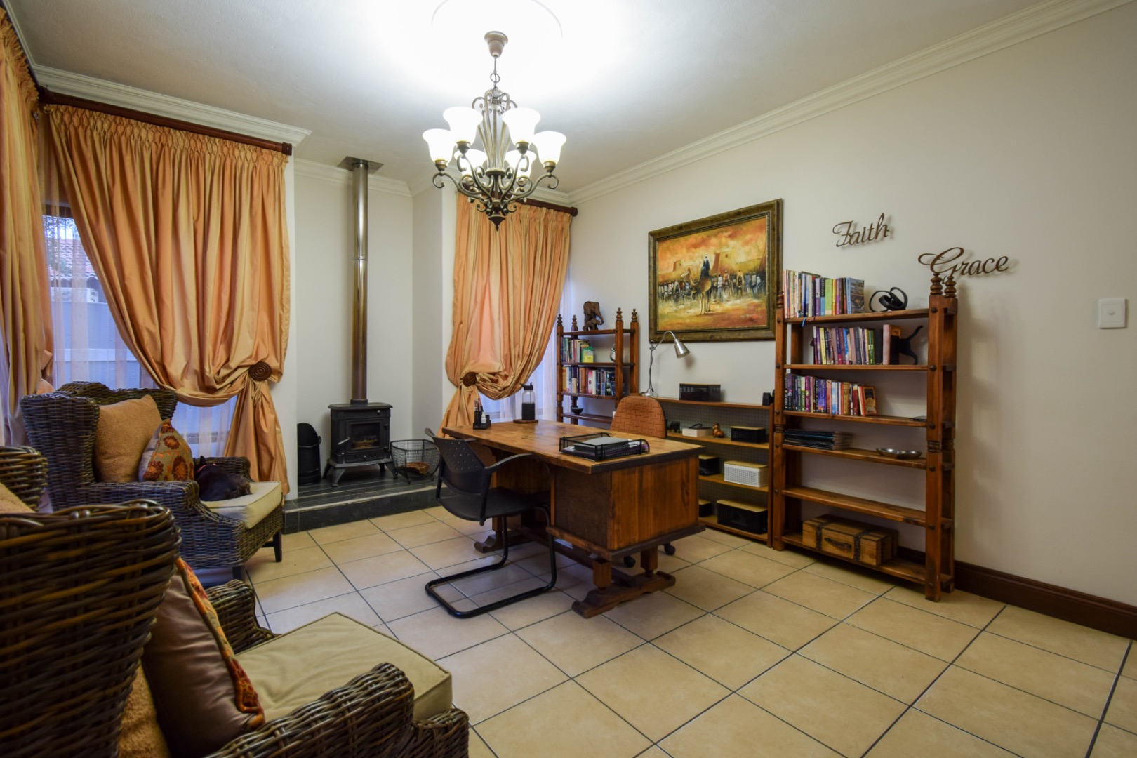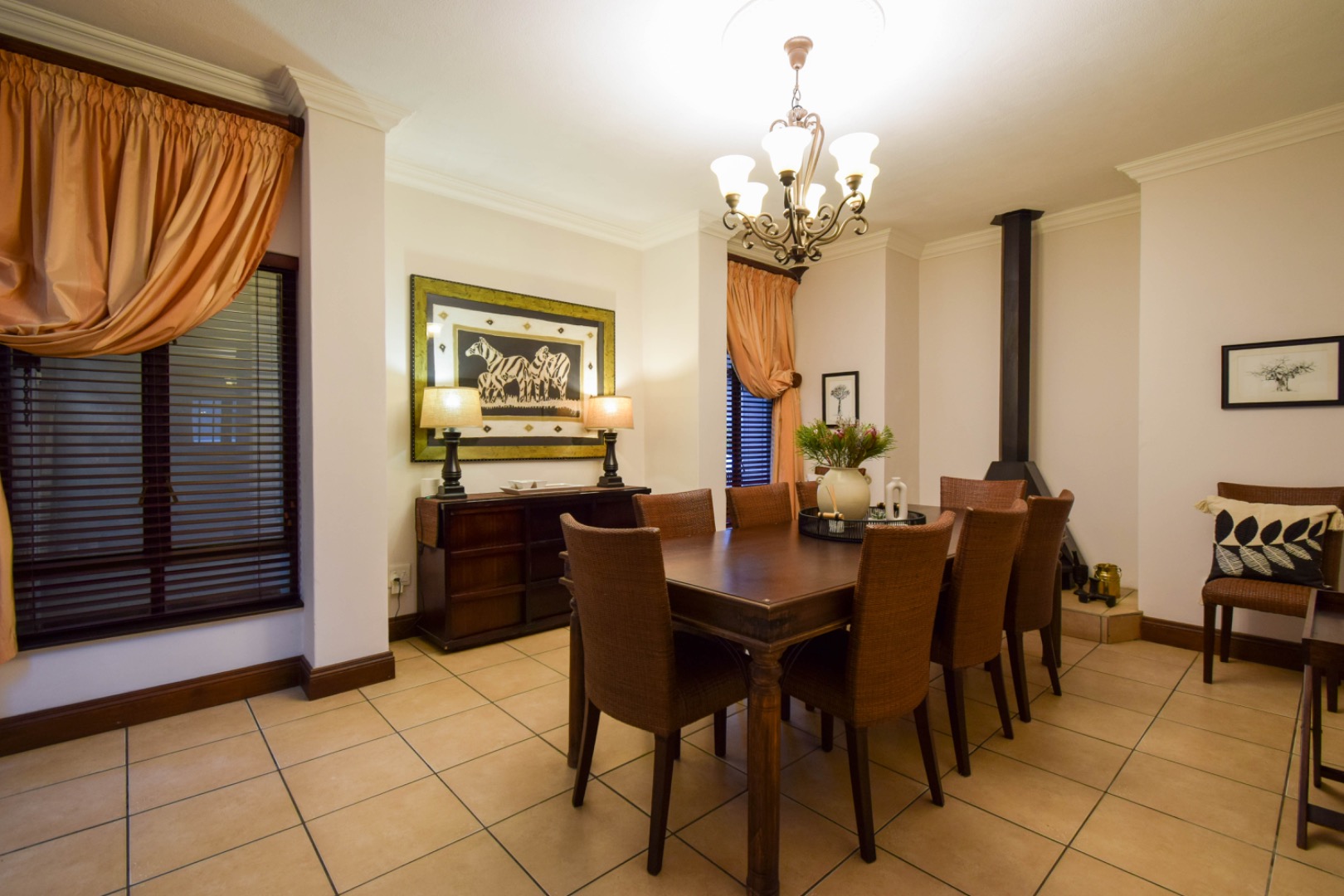 Enjoy outdoor living with a private garden, a welcoming patio, and a balcony, perfect for unwinding. The property also includes a built-in braai and a fireplace, ideal for year-round entertaining. Practical amenities such as staff quarters, a laundry room, storage, and a pantry add to the home's functionality. With two garages and four additional parking spaces, convenience is assured. Modern comforts like air conditioning, fibre internet, and an irrigation system are also in place.