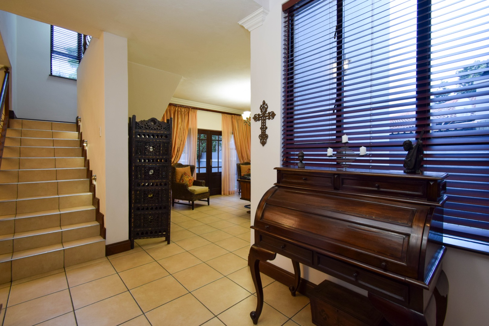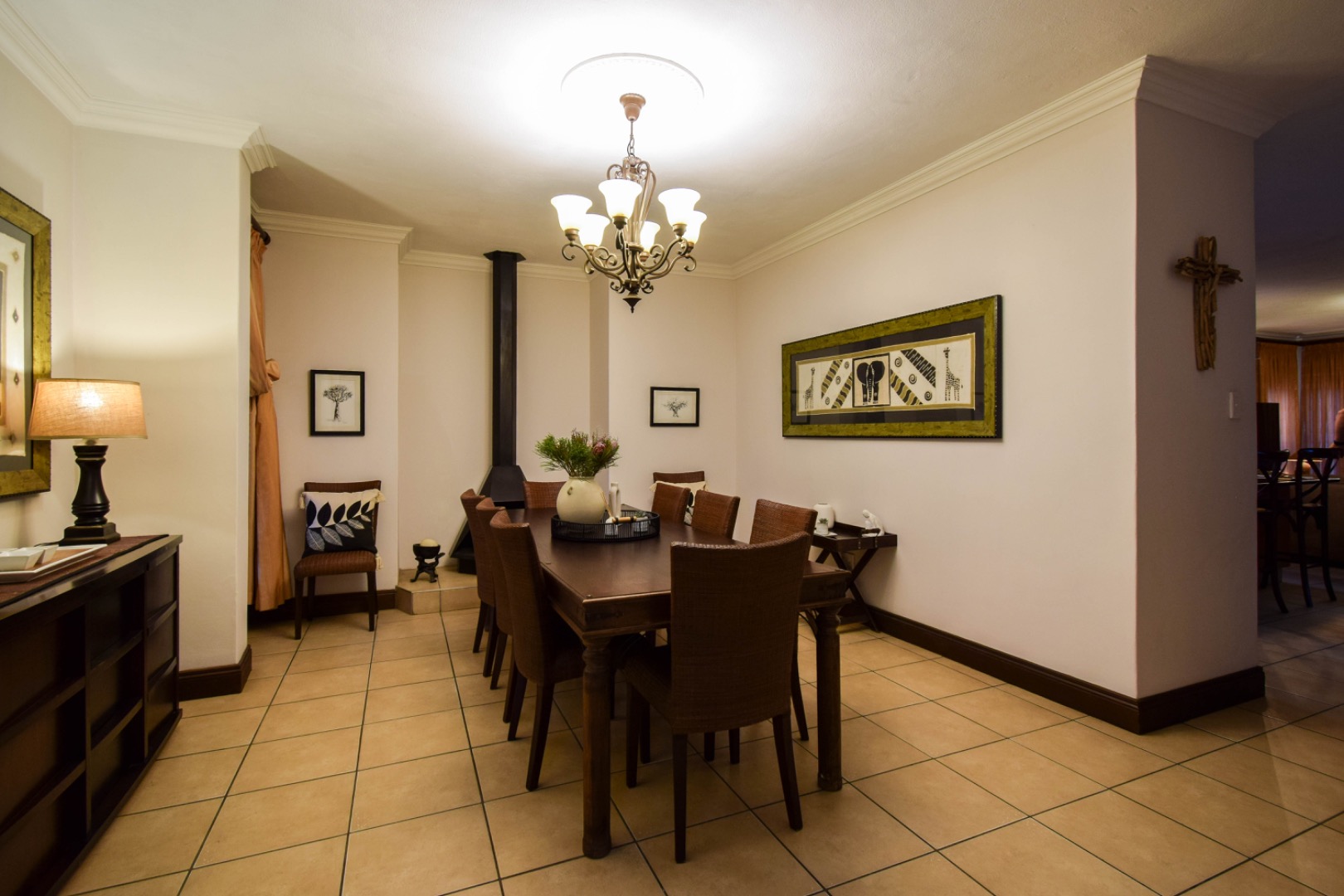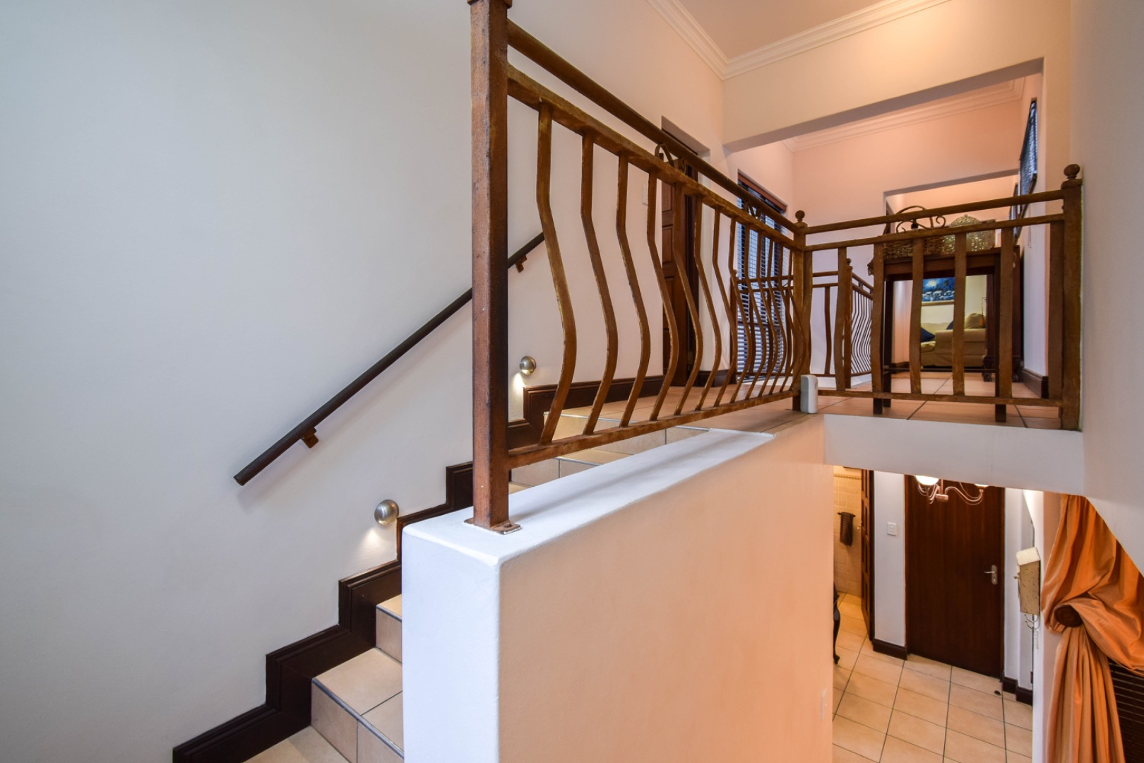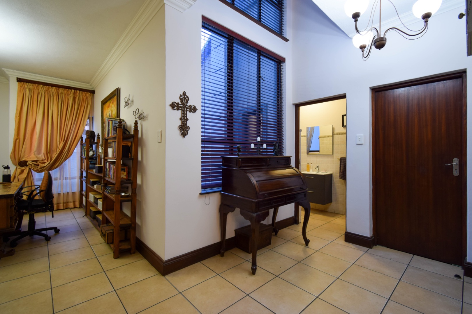 Enjoy outdoor living with a private garden, a welcoming patio, and a balcony, perfect for unwinding. The property also includes a built-in braai and a fireplace, ideal for year-round entertaining. Practical amenities such as staff quarters, a laundry room, storage, and a pantry add to the home's functionality. With two garages and four additional parking spaces, convenience is assured. Modern comforts like air conditioning, fibre internet, and an irrigation system are also in place.