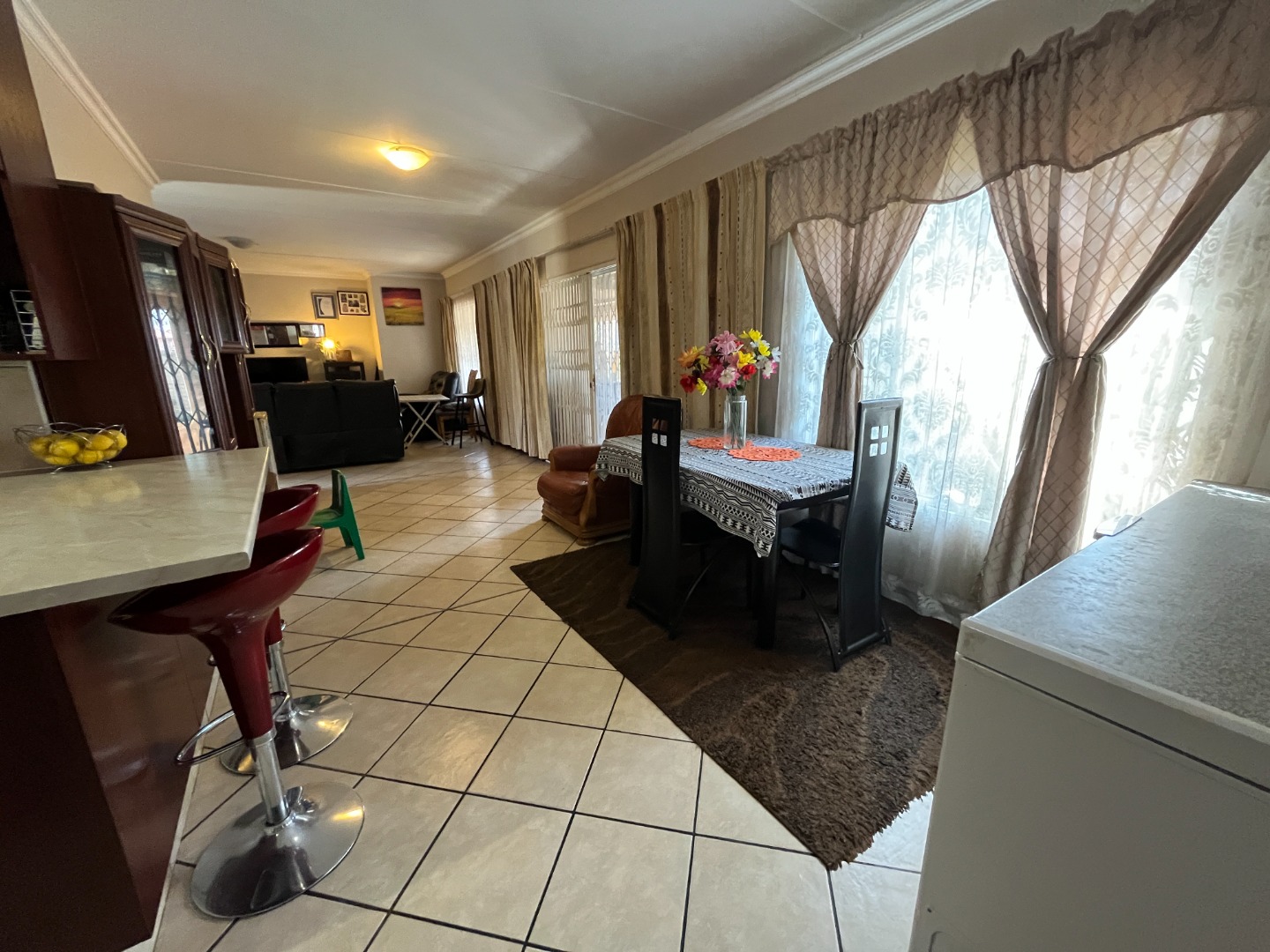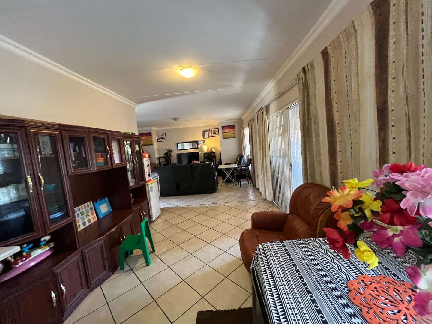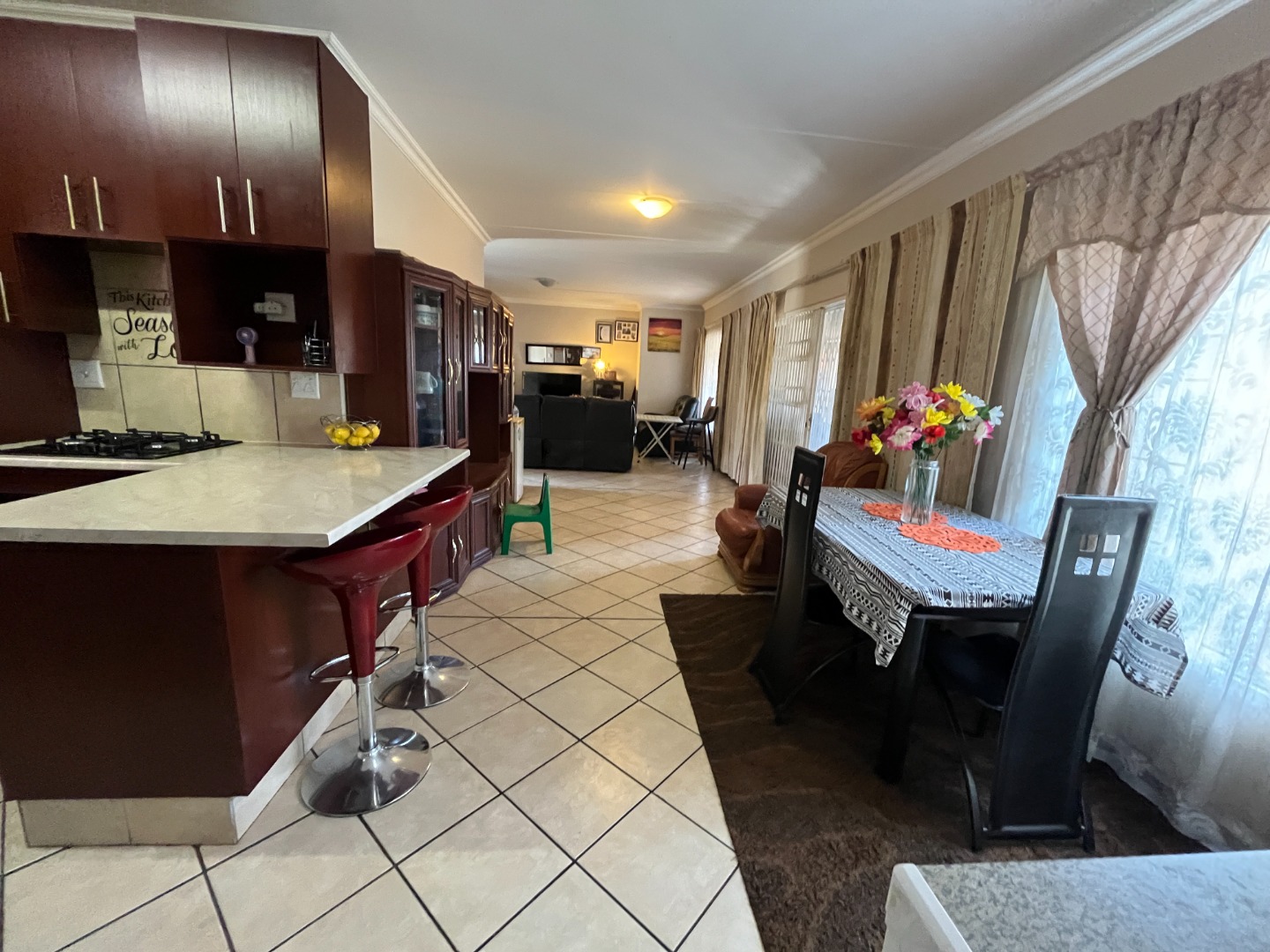 The home features an open-plan kitchen, living, and dining area that seamlessly flows onto an enclosed patio, creating the perfect space for entertaining family and friends.