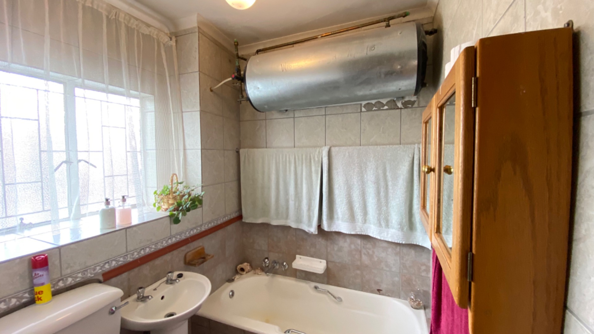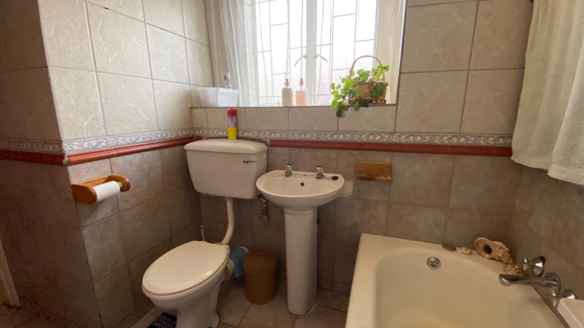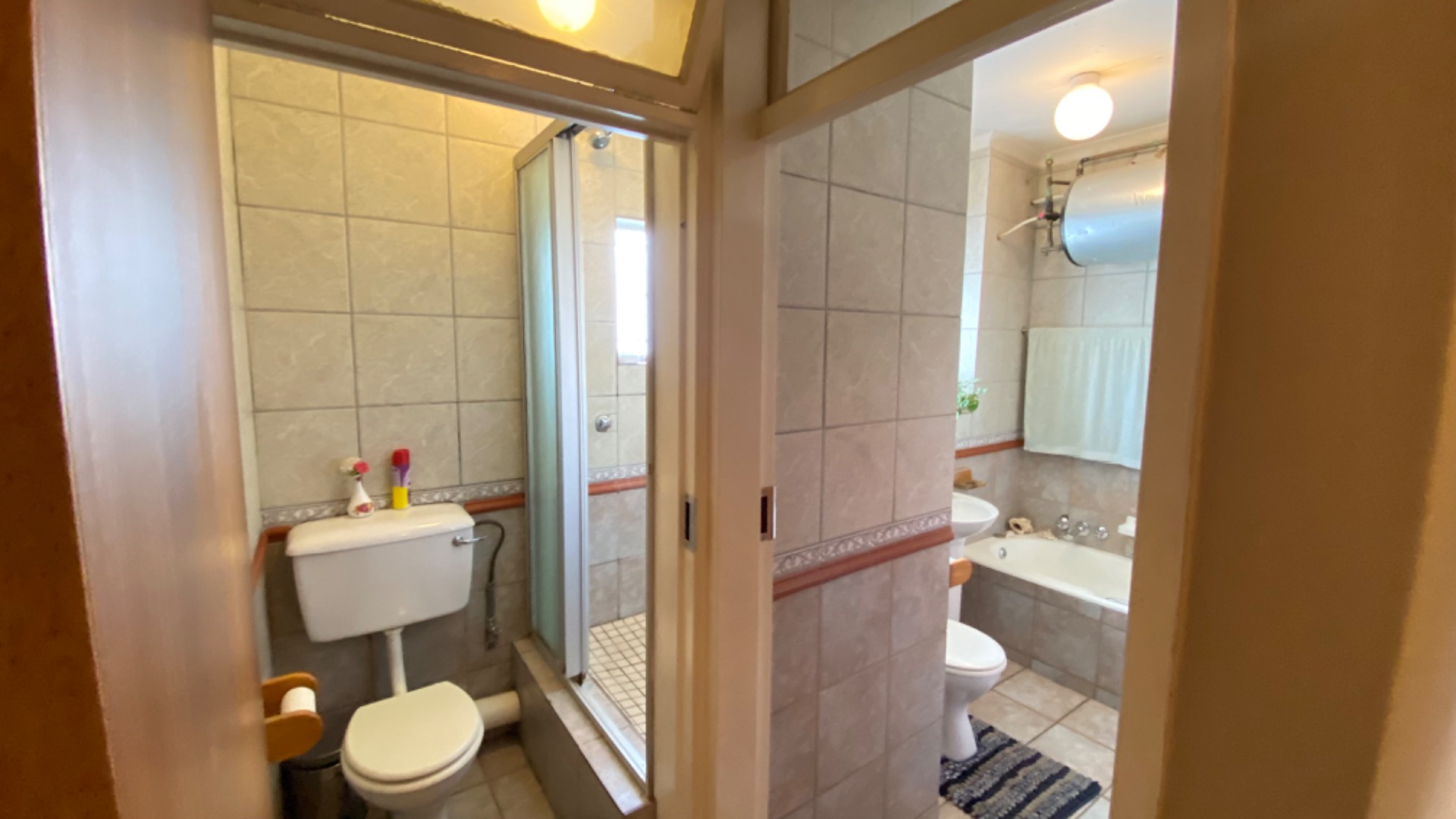 with the bath and the shower being in separate bathrooms and both with a toilet , while the additional guest bathroom has space for washing machine and top loader washing machine . A convenient guest bathroom downstairs adds extra comfort for visitors.