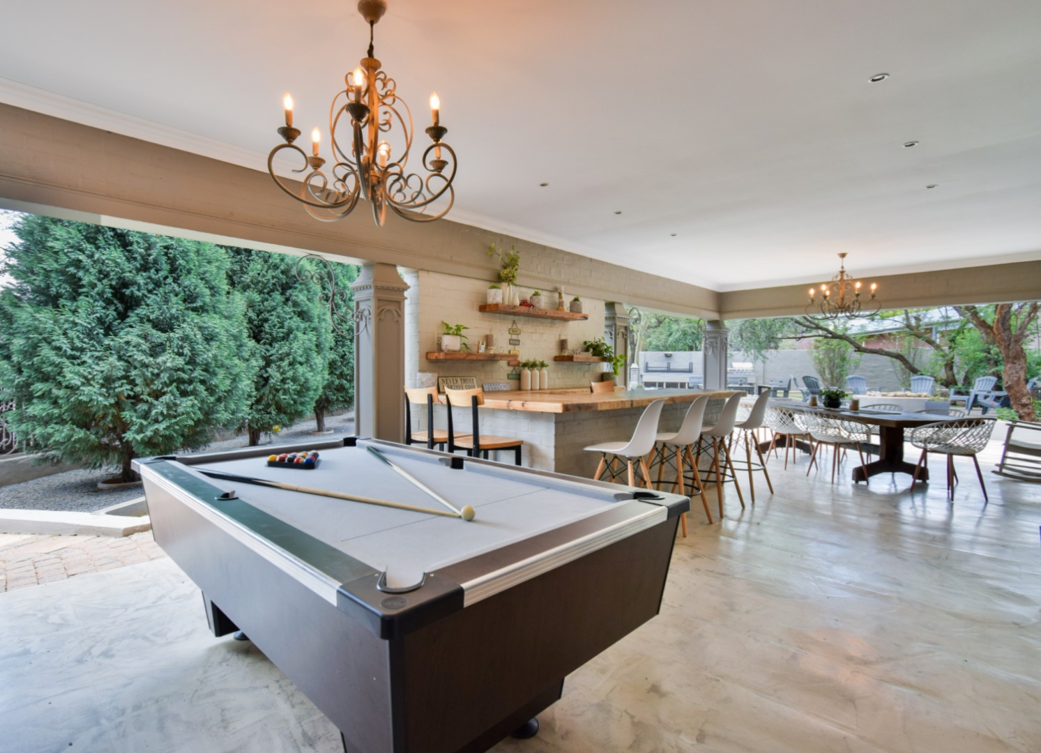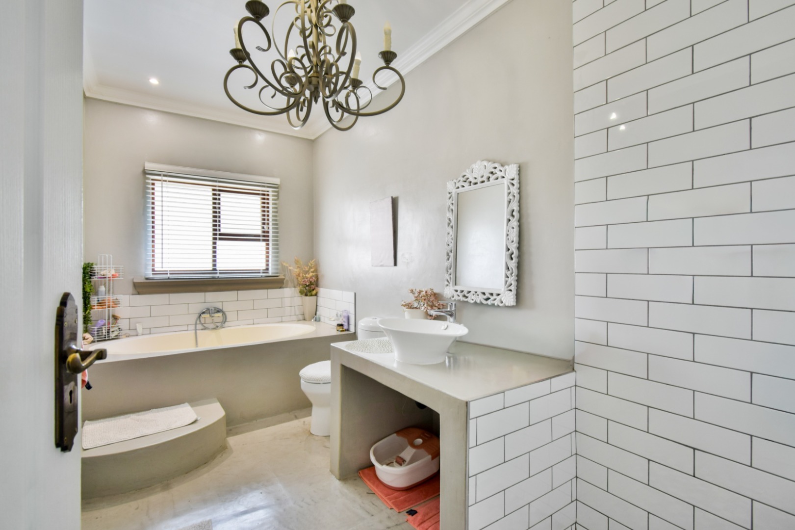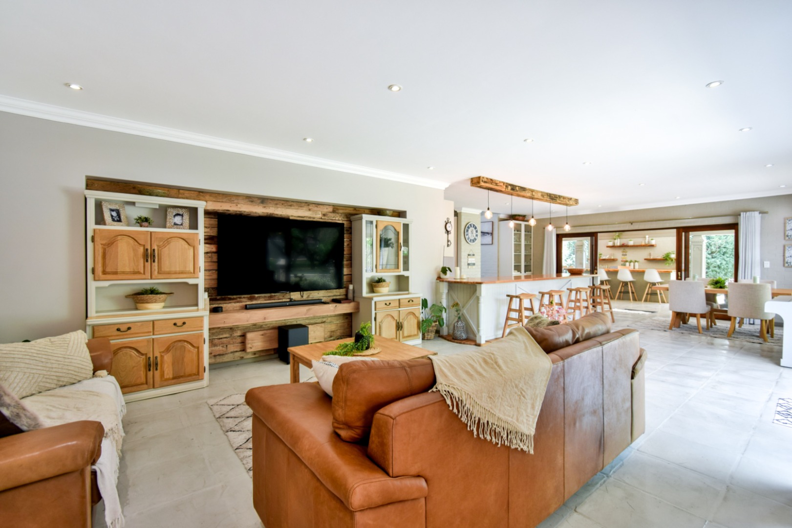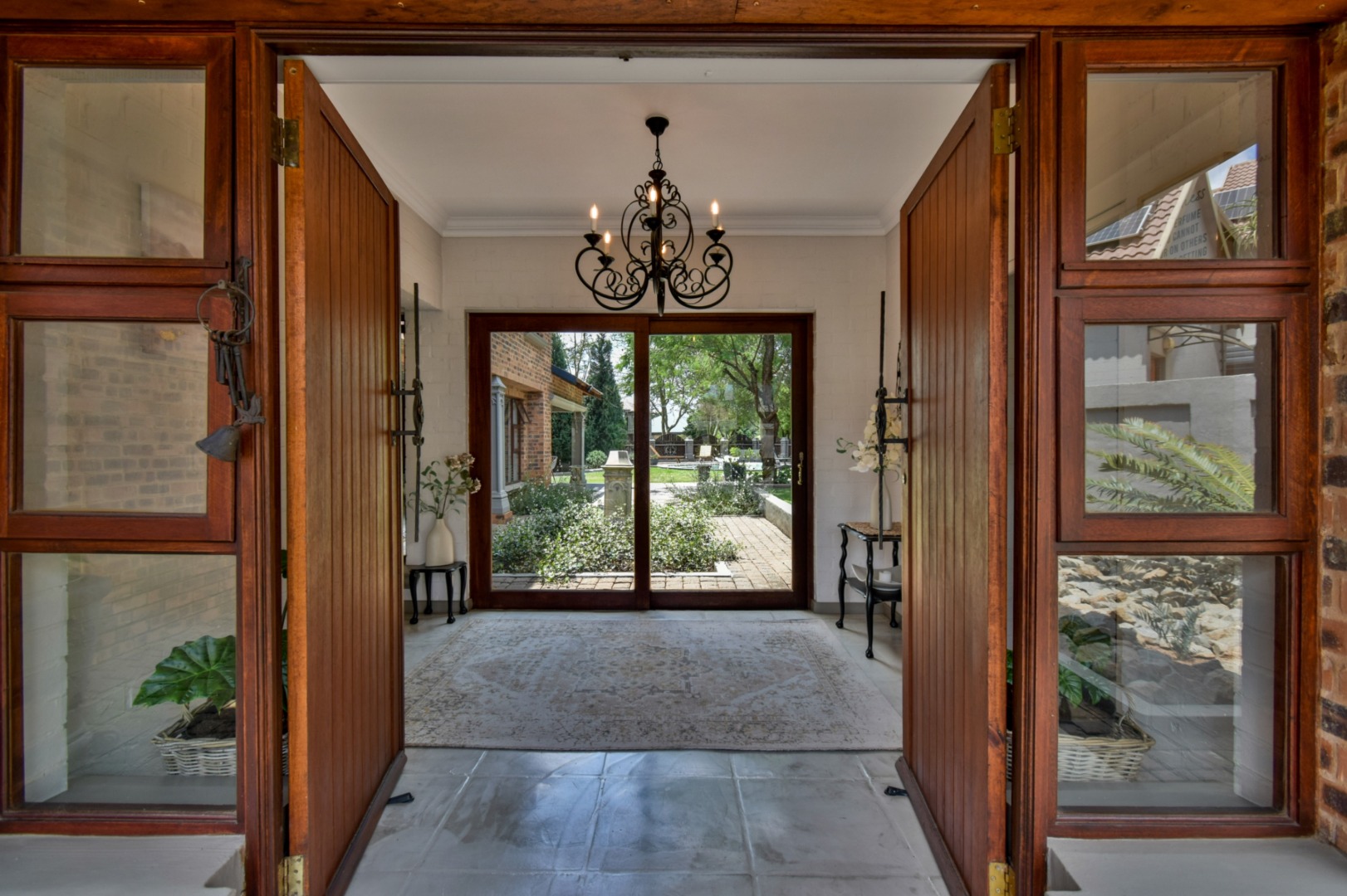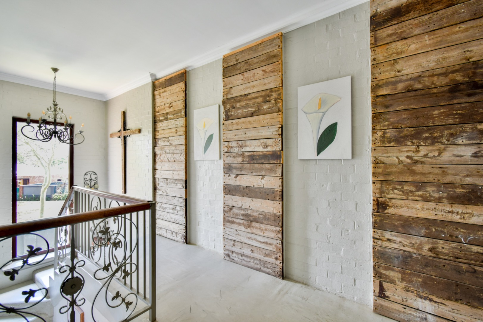 The outdoor areas are designed for relaxation and social gatherings, featuring a built-in braai, bar-style countertops, and seamless access to a serene garden oasis. Enjoy the sparkling round swimming pool and charming boma, creating the perfect backdrop for weekend leisure or evening entertaining. The ground floor also offers a well-appointed guest bedroom with a private bathroom, plus a separate external suite that can serve as staff quarters, a home office, or private accommodation for extended family.