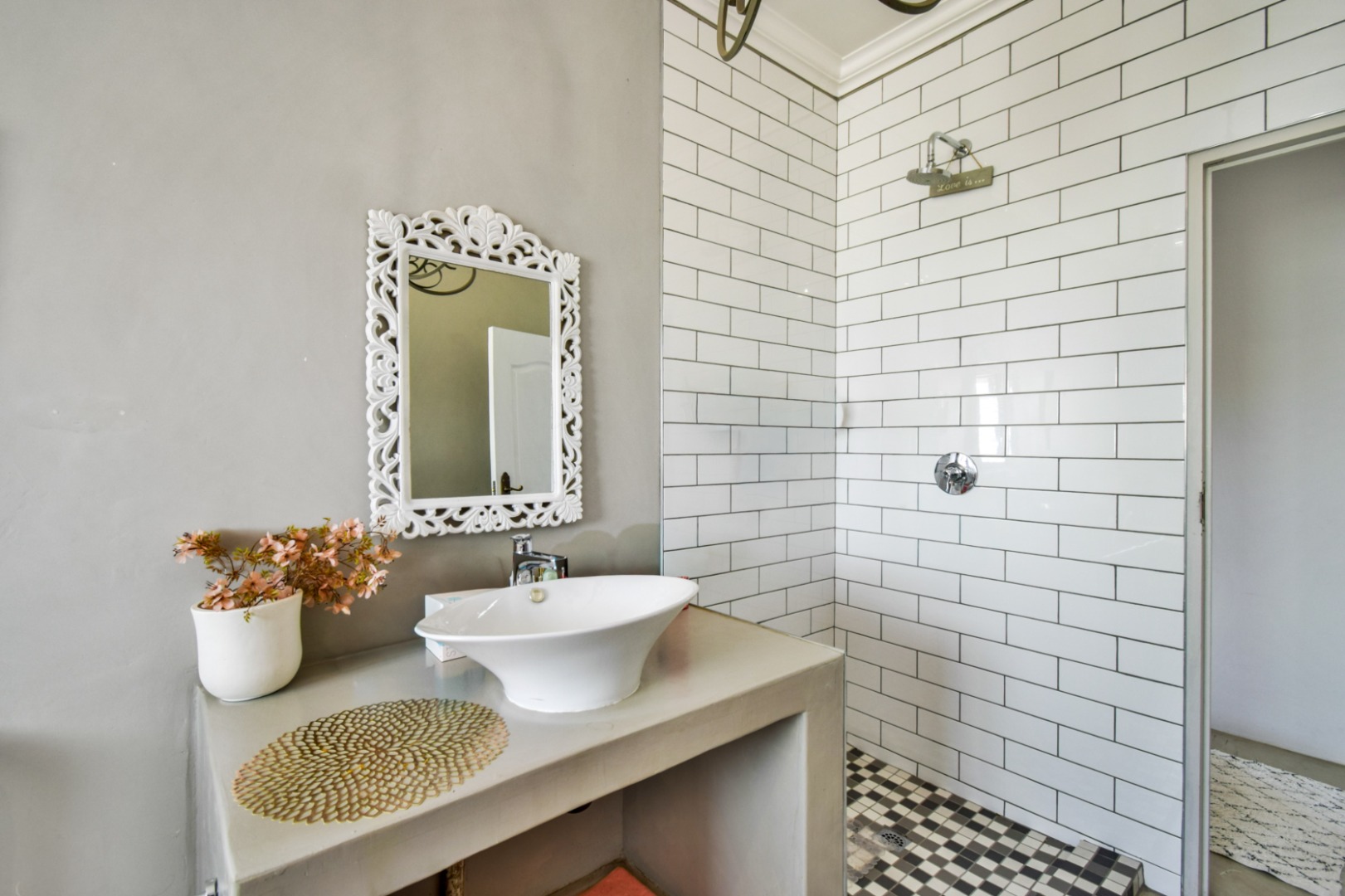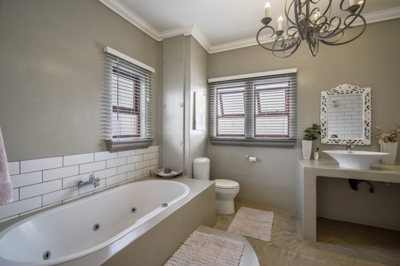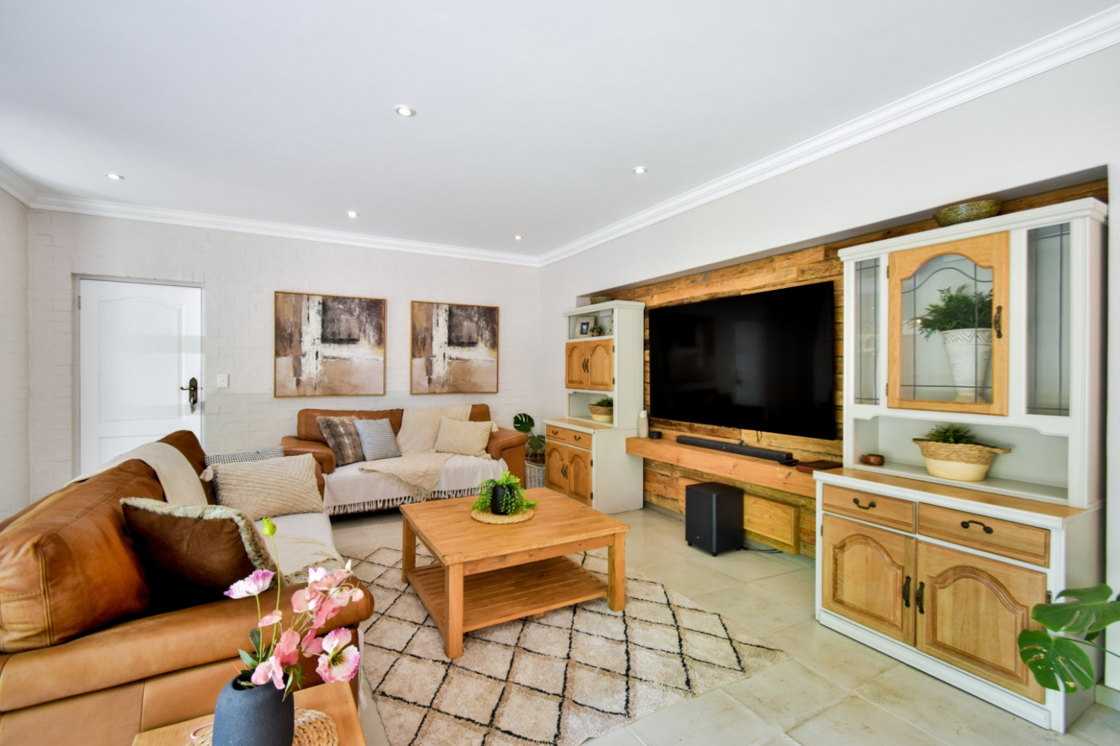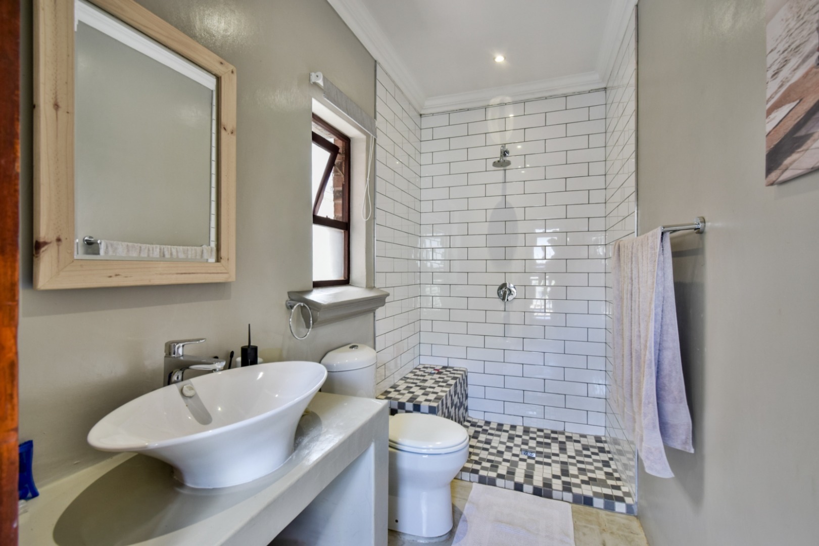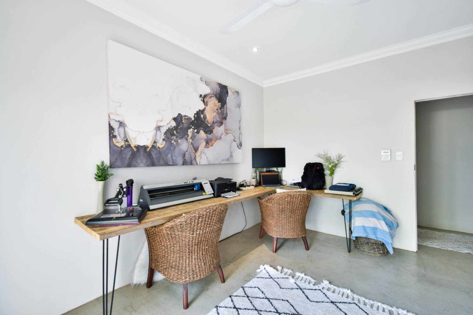 The outdoor areas are designed for relaxation and social gatherings, featuring a built-in braai, bar-style countertops, and seamless access to a serene garden oasis. Enjoy the sparkling round swimming pool and charming boma, creating the perfect backdrop for weekend leisure or evening entertaining. The ground floor also offers a well-appointed guest bedroom with a private bathroom, plus a separate external suite that can serve as staff quarters, a home office, or private accommodation for extended family.