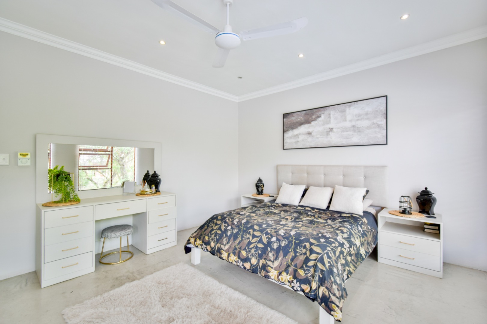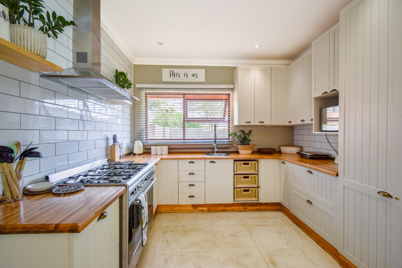 Step into a world of elegance and comfort with this stunning double-storey residence in the prestigious Zambezi Country Estate. The open-plan layout is bathed in natural light, creating a welcoming and airy atmosphere throughout. At the heart of the home lies a gourmet kitchen with stylish pendant lighting, ample cabinetry, a gas stove and oven, and a spacious breakfast counter perfect for casual dining or entertaining. A separate scullery and laundry room add practical functionality, while the adjacent lounge and formal dining areas—with sliding doors that lead to the enclosed entertainment patio—offer ideal spaces for hosting friends and family.