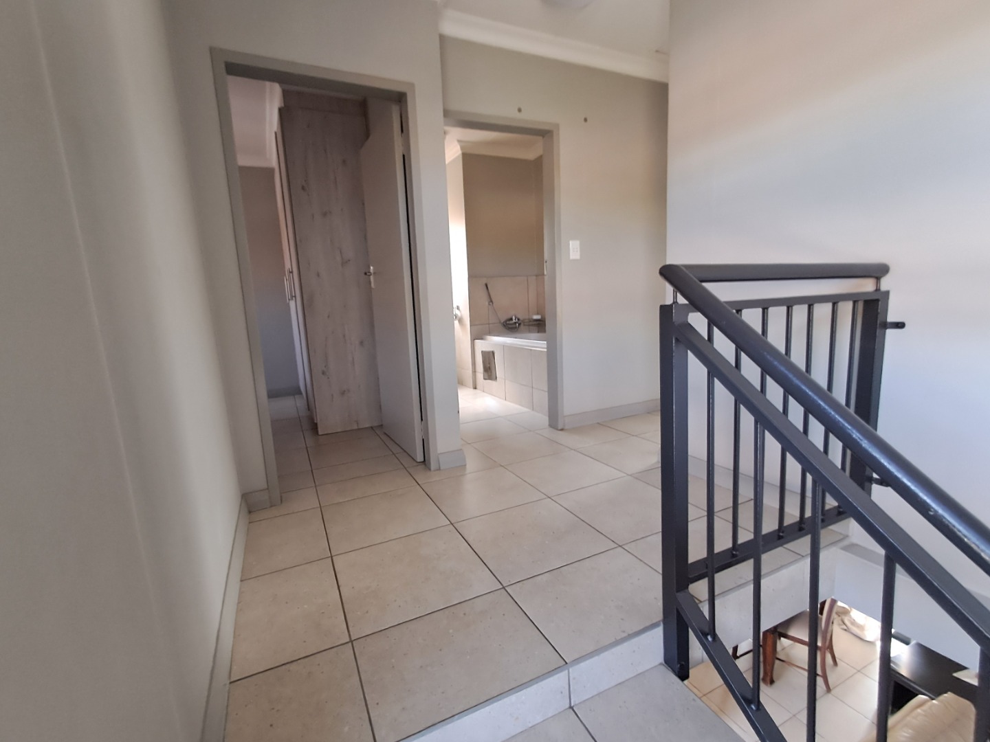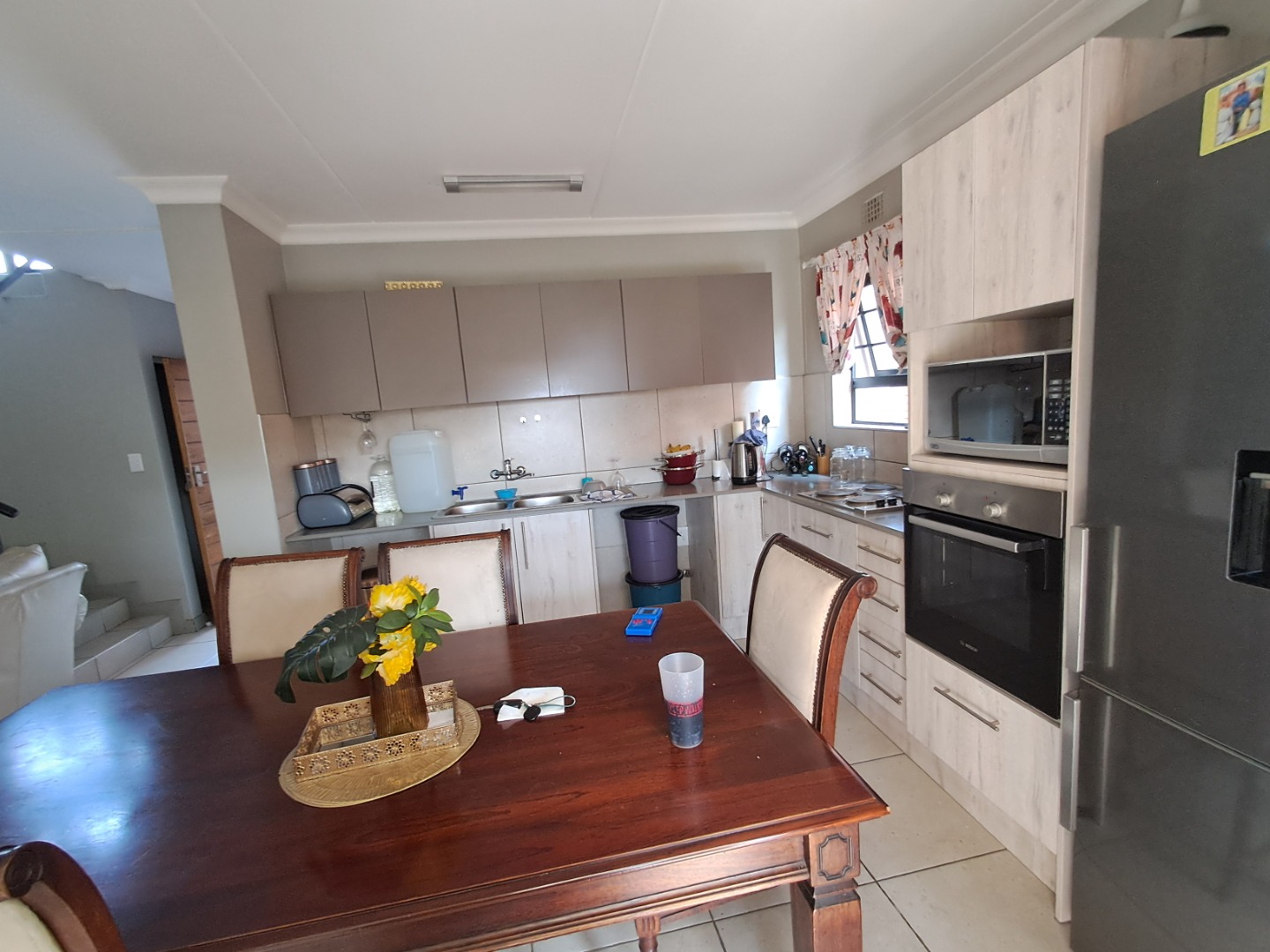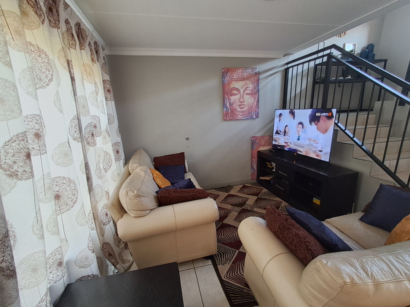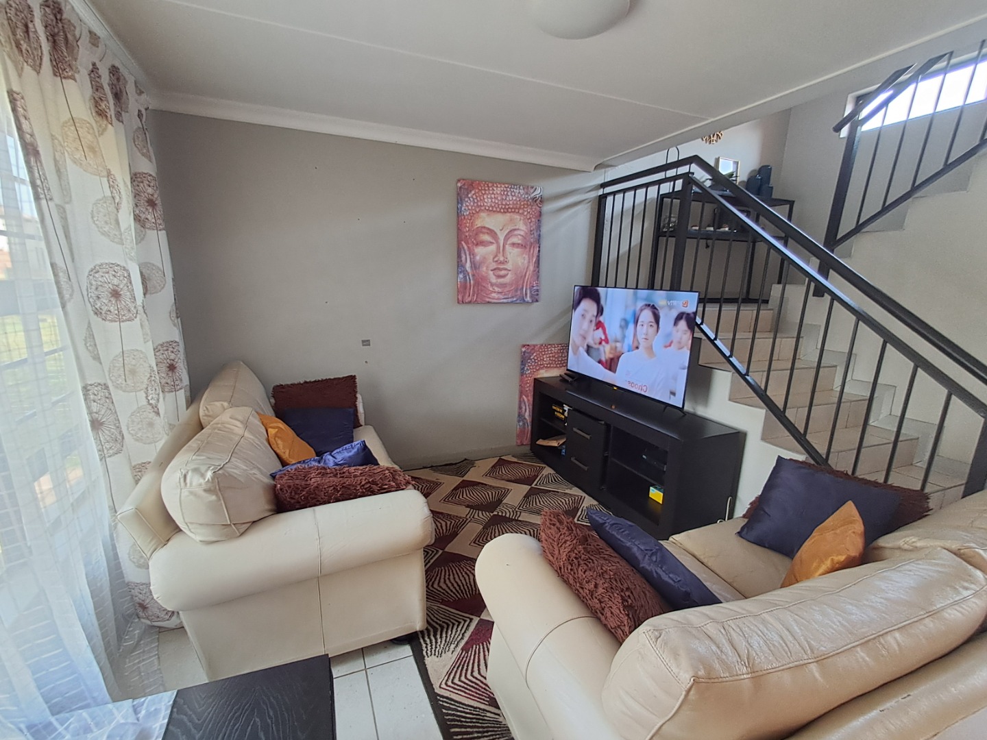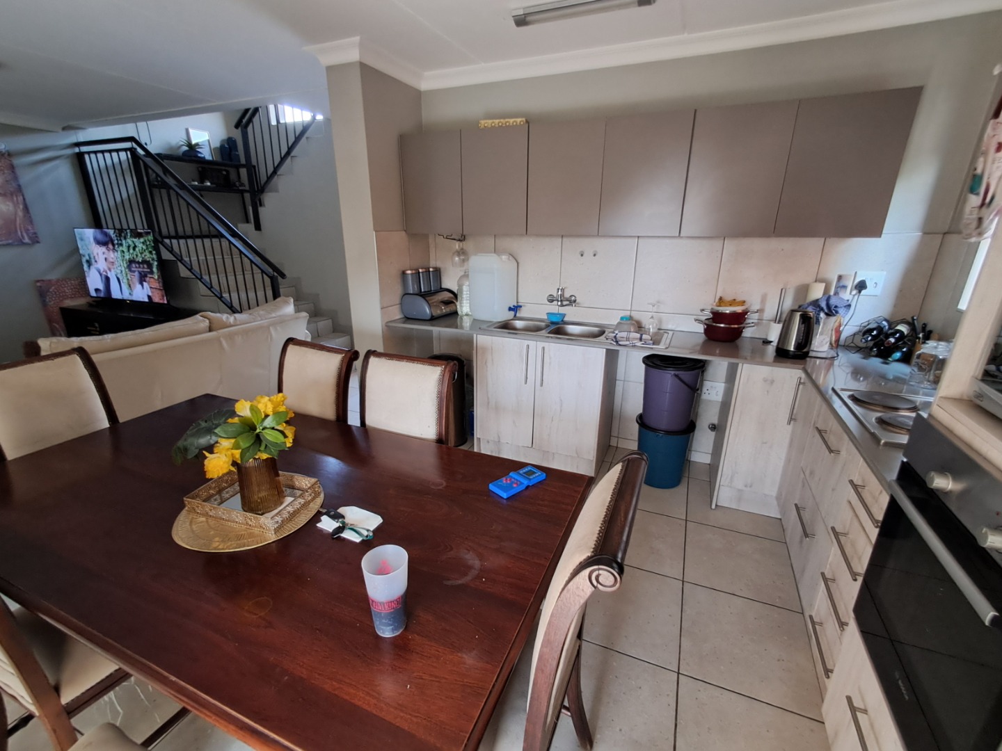 Discover modern living in this inviting 3-bedroom, 2-bathroom townhouse, perfectly situated within a secure lifestyle estate. The property boasts a contemporary brick exterior with stylish black-framed windows, offering excellent kerb appeal. Enjoy outdoor moments on the covered, tiled patio, which extends to a private lawn area, ideal for relaxation or entertaining. The thoughtful design includes security bars on ground floor windows, enhancing peace of mind within this well-maintained complex. Step inside to an open-plan layout that seamlessly connects the living, dining, and kitchen areas, all featuring durable tiled flooring for easy maintenance. The kitchen is equipped with modern upper cabinets, a built-in hob, and an oven, providing a functional space for culinary pursuits. A prominent staircase with modern black railings leads to the upper level, adding to the home's multi-level appeal and spacious feel. Natural light floods the living spaces, creating a bright and welcoming atmosphere. This residence offers three comfortable bedrooms and two well-appointed bathrooms, including one en-suite, ensuring privacy and convenience for residents. The layout is designed for practical family living, with ample space for personal retreats. Beyond the interior, the property includes a single garage and two additional parking spaces, catering to your vehicle needs. The estate provides a communal playground, fostering a family-friendly environment. Security is paramount, with features such as 24-hour security, CCTV surveillance, an access gate, electric fencing, and a security gate, ensuring a safe and protected living experience. Connectivity is available with ADSL. Located in Zambezi Manor Lifestyle Estate, Pretoria, this area offers a desirable blend of suburban tranquility and convenient access to city amenities. It's a sought-after location for those seeking a secure and community-oriented lifestyle. Key Features: * 3 Bedrooms, 2 Bathrooms (1 En-suite) * Open-plan living, dining, and kitchen * Modern kitchen with built-in hob and oven * Covered, tiled patio and private garden * Single garage plus 2 additional parking spaces * Secure estate with 24-hour security and CCTV * Communal playground * Tiled flooring throughout * Access gate and electric fencing