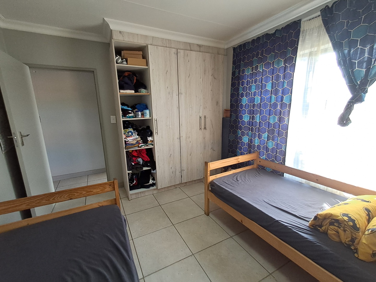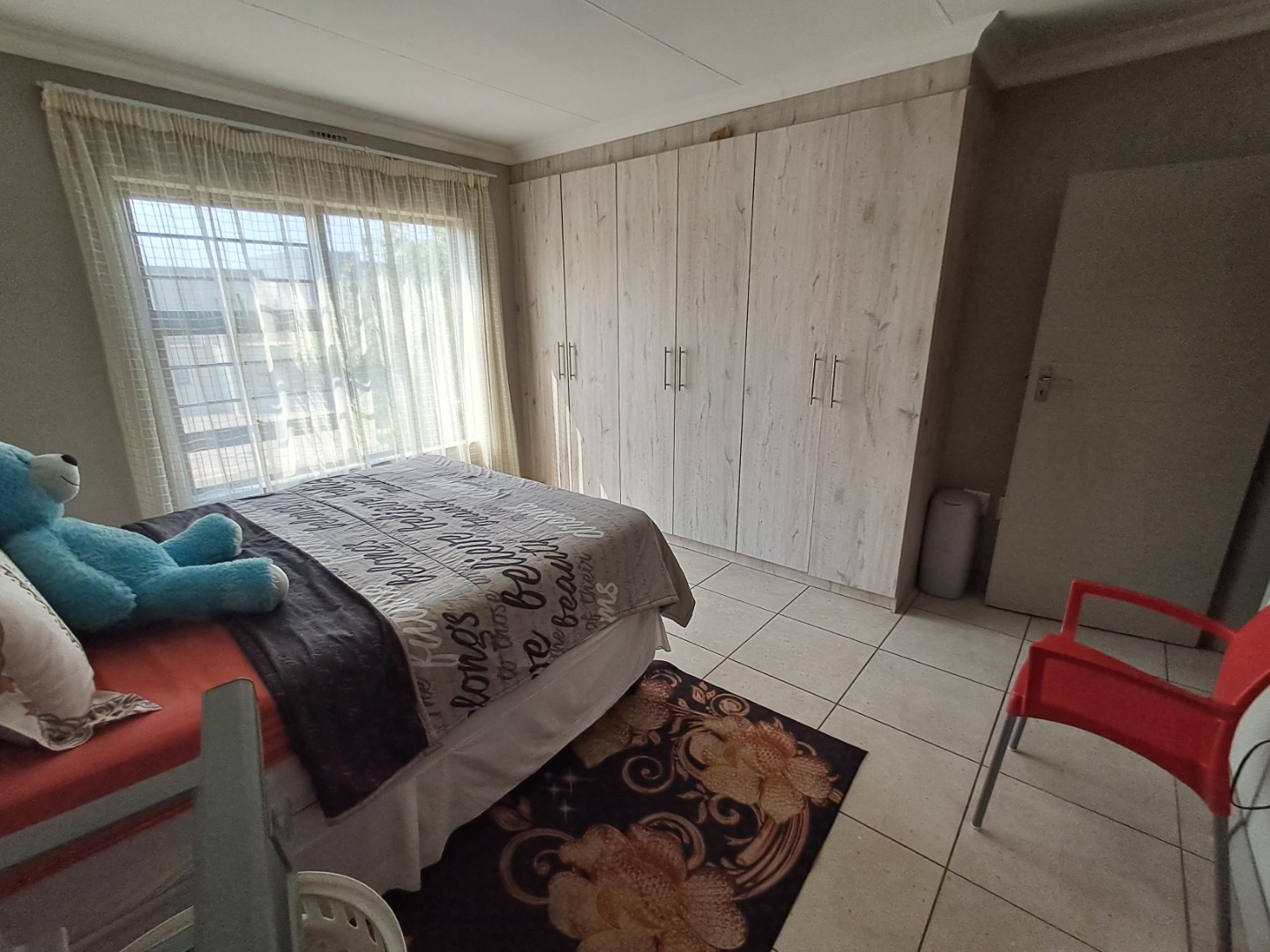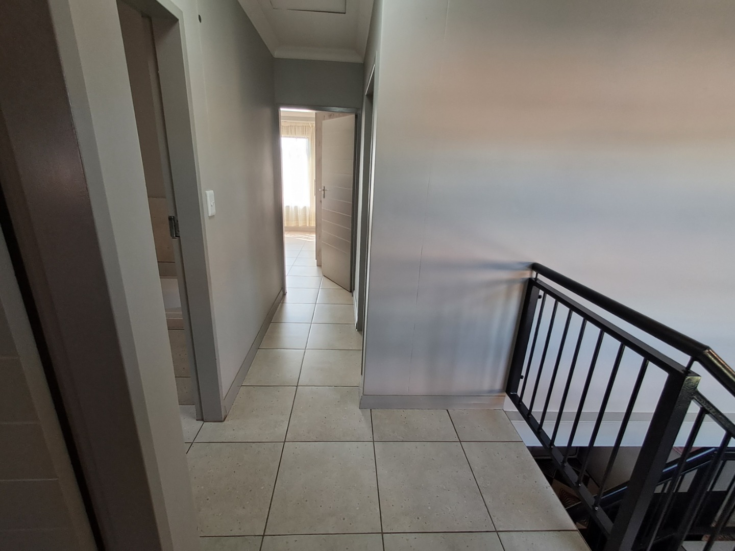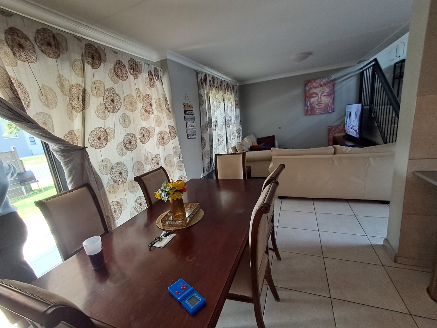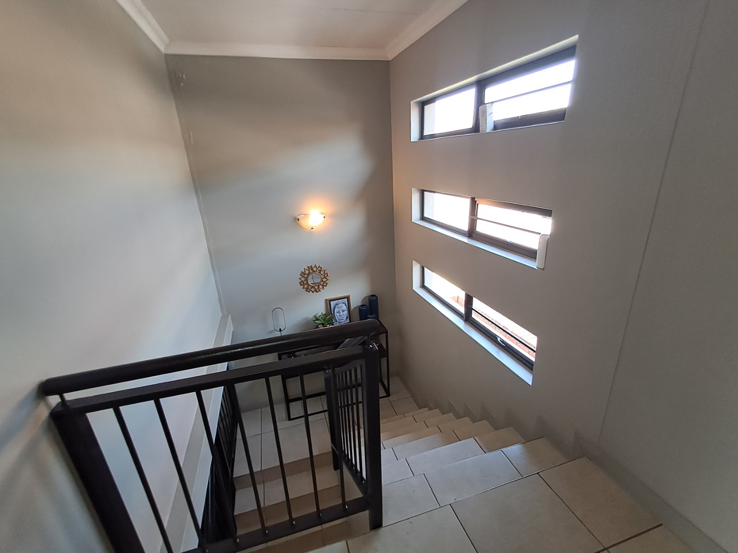 Discover modern living in this inviting 3-bedroom, 2-bathroom townhouse, perfectly situated within a secure lifestyle estate. The property boasts a contemporary brick exterior with stylish black-framed windows, offering excellent kerb appeal. Enjoy outdoor moments on the covered, tiled patio, which extends to a private lawn area, ideal for relaxation or entertaining. The thoughtful design includes security bars on ground floor windows, enhancing peace of mind within this well-maintained complex. Step inside to an open-plan layout that seamlessly connects the living, dining, and kitchen areas, all featuring durable tiled flooring for easy maintenance. The kitchen is equipped with modern upper cabinets, a built-in hob, and an oven, providing a functional space for culinary pursuits. A prominent staircase with modern black railings leads to the upper level, adding to the home's multi-level appeal and spacious feel. Natural light floods the living spaces, creating a bright and welcoming atmosphere. This residence offers three comfortable bedrooms and two well-appointed bathrooms, including one en-suite, ensuring privacy and convenience for residents. The layout is designed for practical family living, with ample space for personal retreats. Beyond the interior, the property includes a single garage and two additional parking spaces, catering to your vehicle needs. The estate provides a communal playground, fostering a family-friendly environment. Security is paramount, with features such as 24-hour security, CCTV surveillance, an access gate, electric fencing, and a security gate, ensuring a safe and protected living experience. Connectivity is available with ADSL. Located in Zambezi Manor Lifestyle Estate, Pretoria, this area offers a desirable blend of suburban tranquility and convenient access to city amenities. It's a sought-after location for those seeking a secure and community-oriented lifestyle. Key Features: * 3 Bedrooms, 2 Bathrooms (1 En-suite) * Open-plan living, dining, and kitchen * Modern kitchen with built-in hob and oven * Covered, tiled patio and private garden * Single garage plus 2 additional parking spaces * Secure estate with 24-hour security and CCTV * Communal playground * Tiled flooring throughout * Access gate and electric fencing
