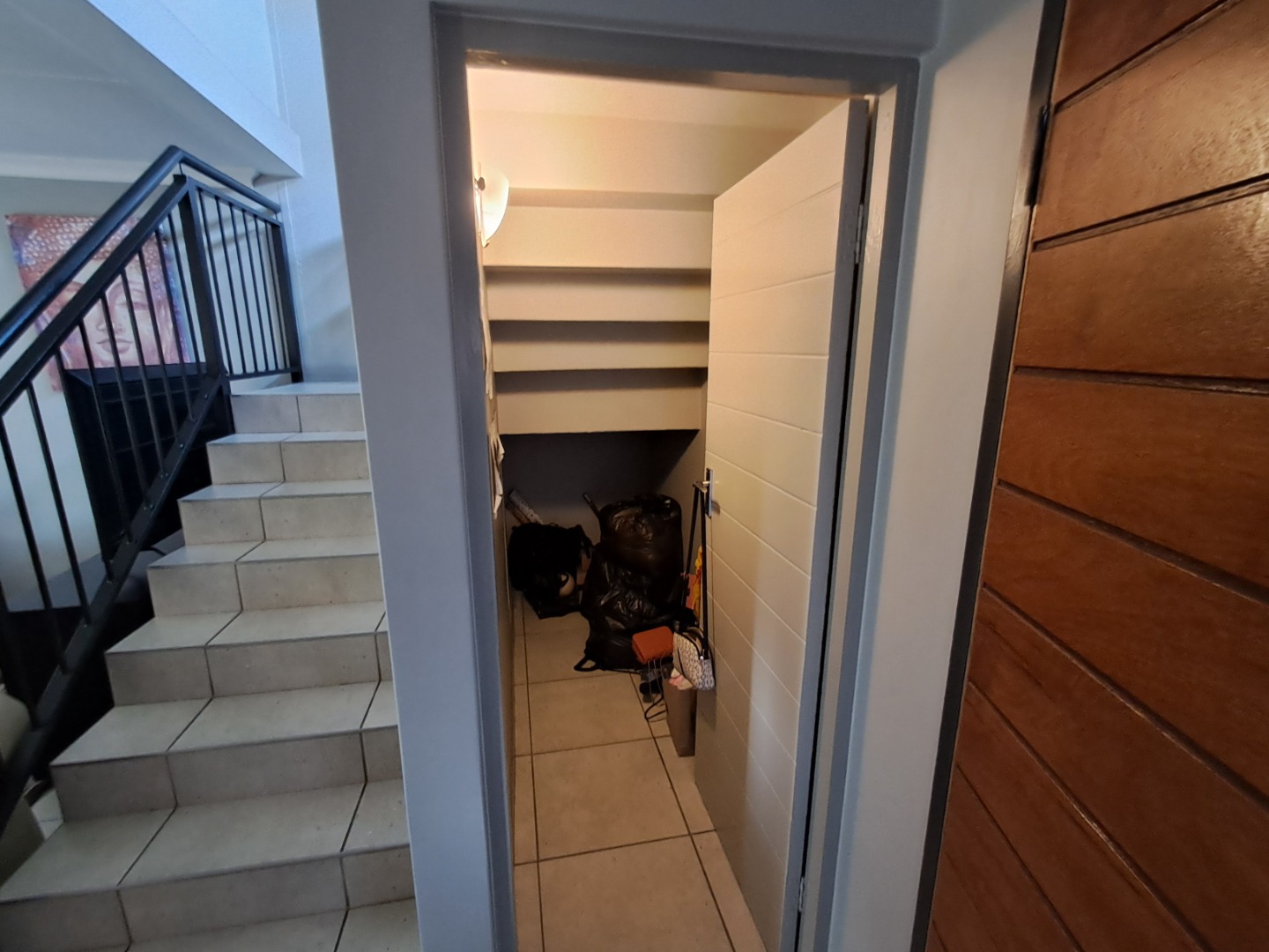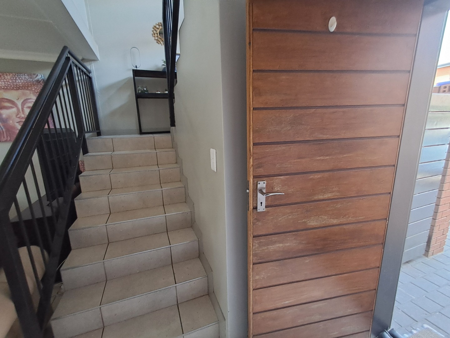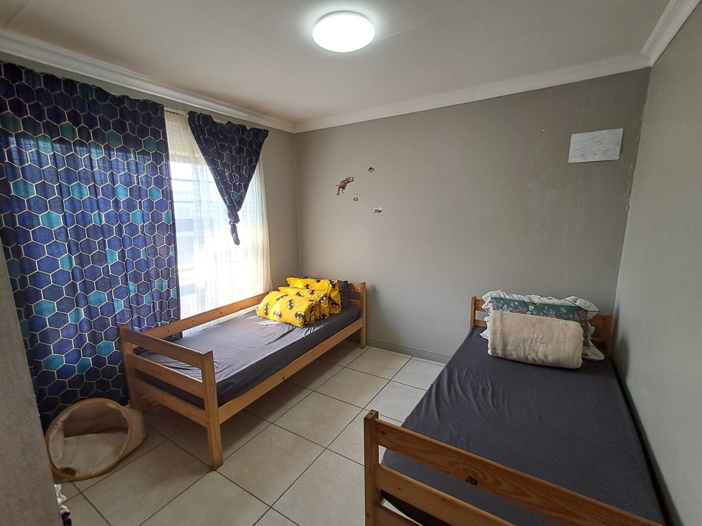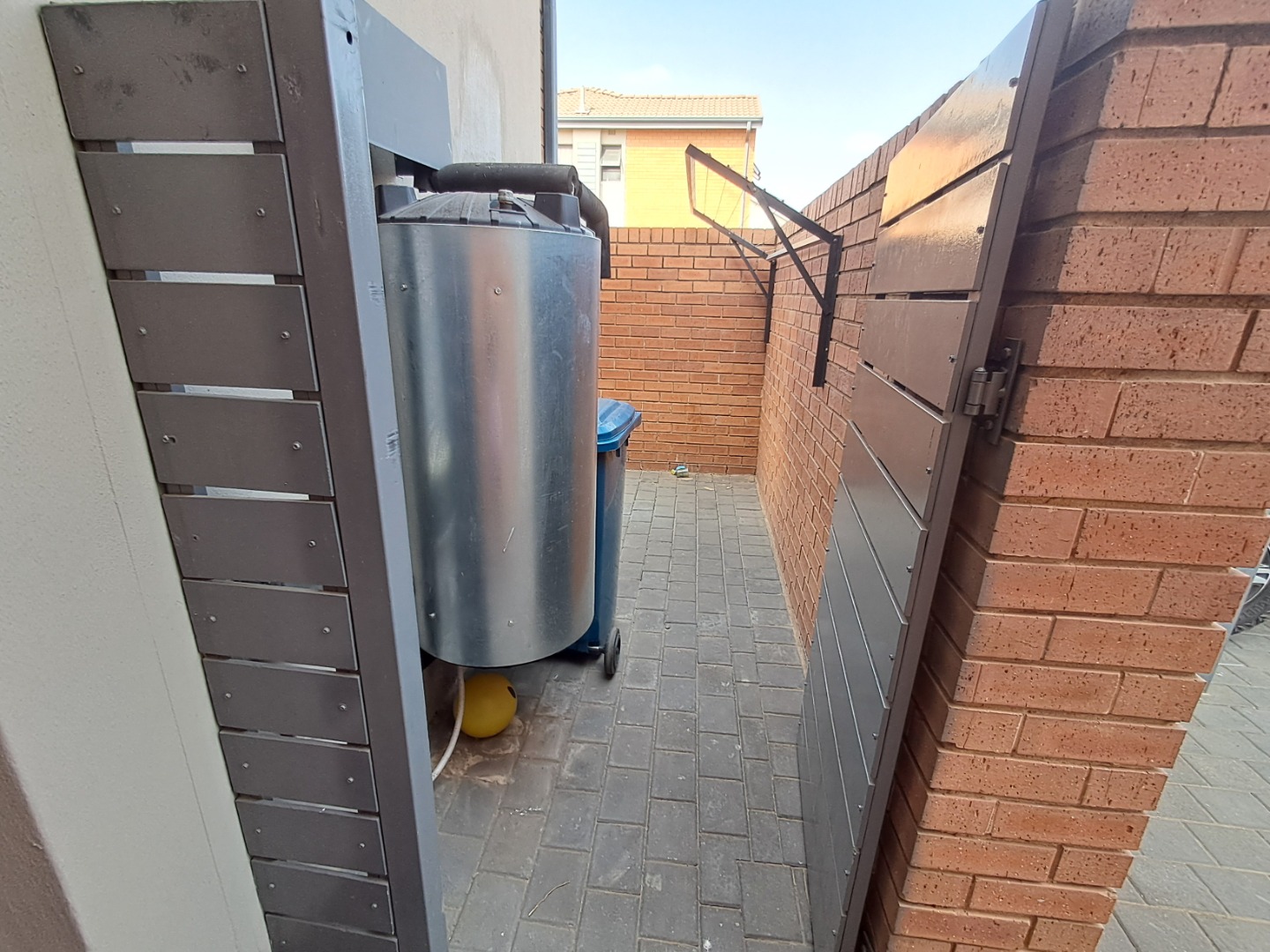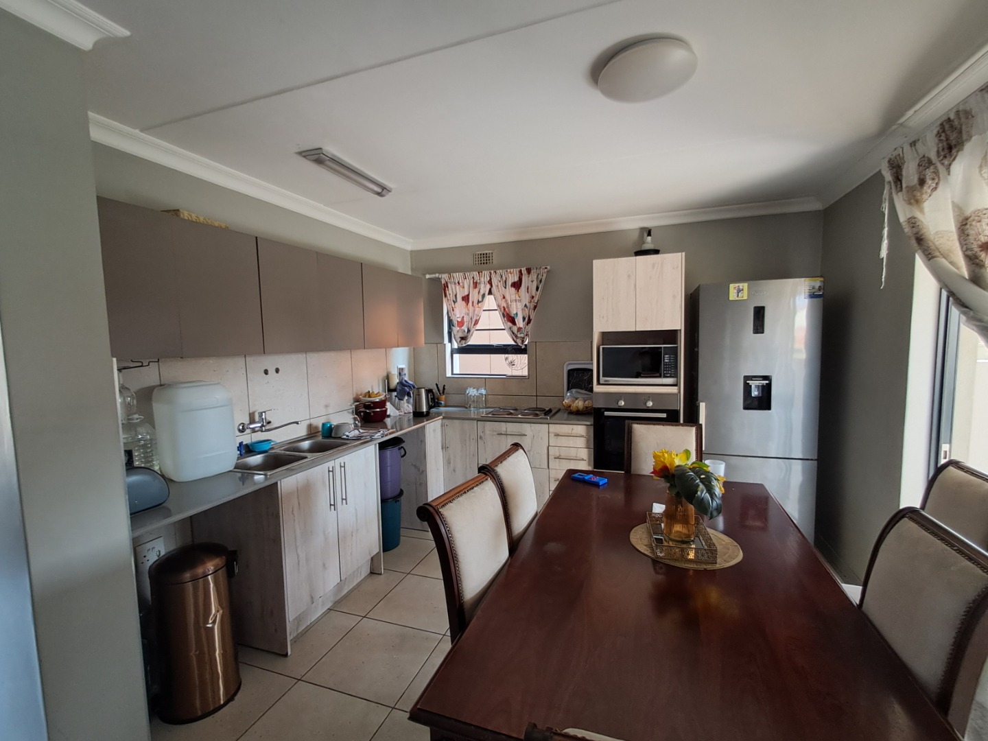 Discover modern living in this inviting 3-bedroom, 2-bathroom townhouse, perfectly situated within a secure lifestyle estate. The property boasts a contemporary brick exterior with stylish black-framed windows, offering excellent kerb appeal. Enjoy outdoor moments on the covered, tiled patio, which extends to a private lawn area, ideal for relaxation or entertaining. The thoughtful design includes security bars on ground floor windows, enhancing peace of mind within this well-maintained complex. Step inside to an open-plan layout that seamlessly connects the living, dining, and kitchen areas, all featuring durable tiled flooring for easy maintenance. The kitchen is equipped with modern upper cabinets, a built-in hob, and an oven, providing a functional space for culinary pursuits. A prominent staircase with modern black railings leads to the upper level, adding to the home's multi-level appeal and spacious feel. Natural light floods the living spaces, creating a bright and welcoming atmosphere. This residence offers three comfortable bedrooms and two well-appointed bathrooms, including one en-suite, ensuring privacy and convenience for residents. The layout is designed for practical family living, with ample space for personal retreats. Beyond the interior, the property includes a single garage and two additional parking spaces, catering to your vehicle needs. The estate provides a communal playground, fostering a family-friendly environment. Security is paramount, with features such as 24-hour security, CCTV surveillance, an access gate, electric fencing, and a security gate, ensuring a safe and protected living experience. Connectivity is available with ADSL. Located in Zambezi Manor Lifestyle Estate, Pretoria, this area offers a desirable blend of suburban tranquility and convenient access to city amenities. It's a sought-after location for those seeking a secure and community-oriented lifestyle. Key Features: * 3 Bedrooms, 2 Bathrooms (1 En-suite) * Open-plan living, dining, and kitchen * Modern kitchen with built-in hob and oven * Covered, tiled patio and private garden * Single garage plus 2 additional parking spaces * Secure estate with 24-hour security and CCTV * Communal playground * Tiled flooring throughout * Access gate and electric fencing