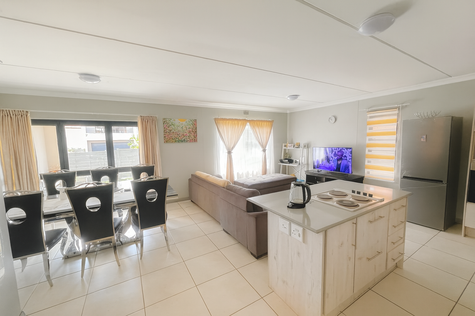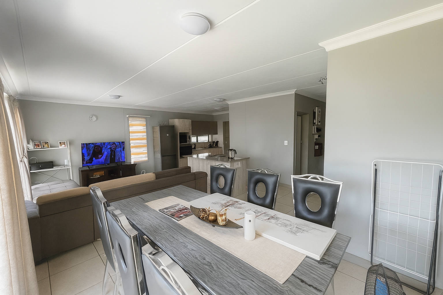 Nestled within the secure and highly sought-after Zambezi Manor Lifestyle Estate, this beautifully designed three-bedroom home offers the perfect blend of modern convenience, comfort, and family living. The open-plan layout creates a seamless flow between the living, dining, and kitchen areas, allowing for easy entertaining and day-to-day connection. Large windows fill the space with natural light, enhancing the warm and welcoming atmosphere.