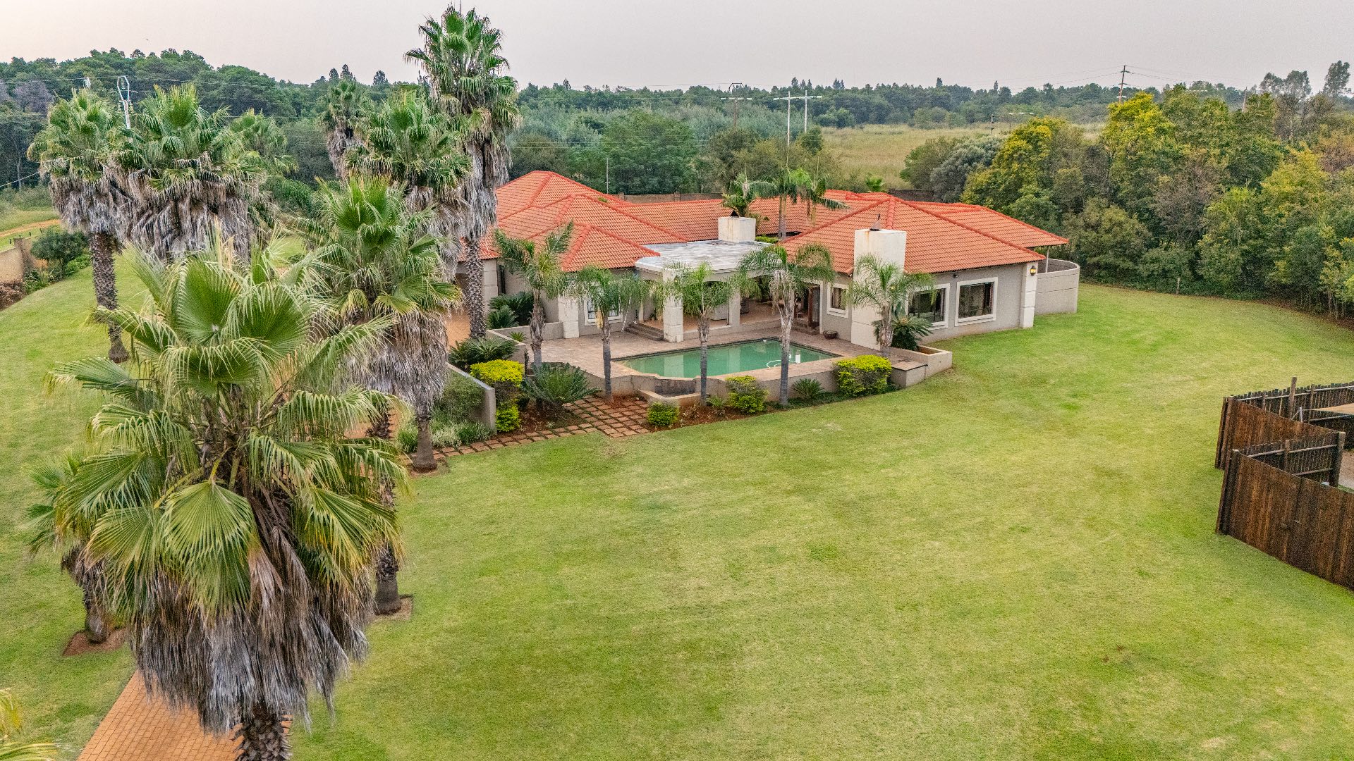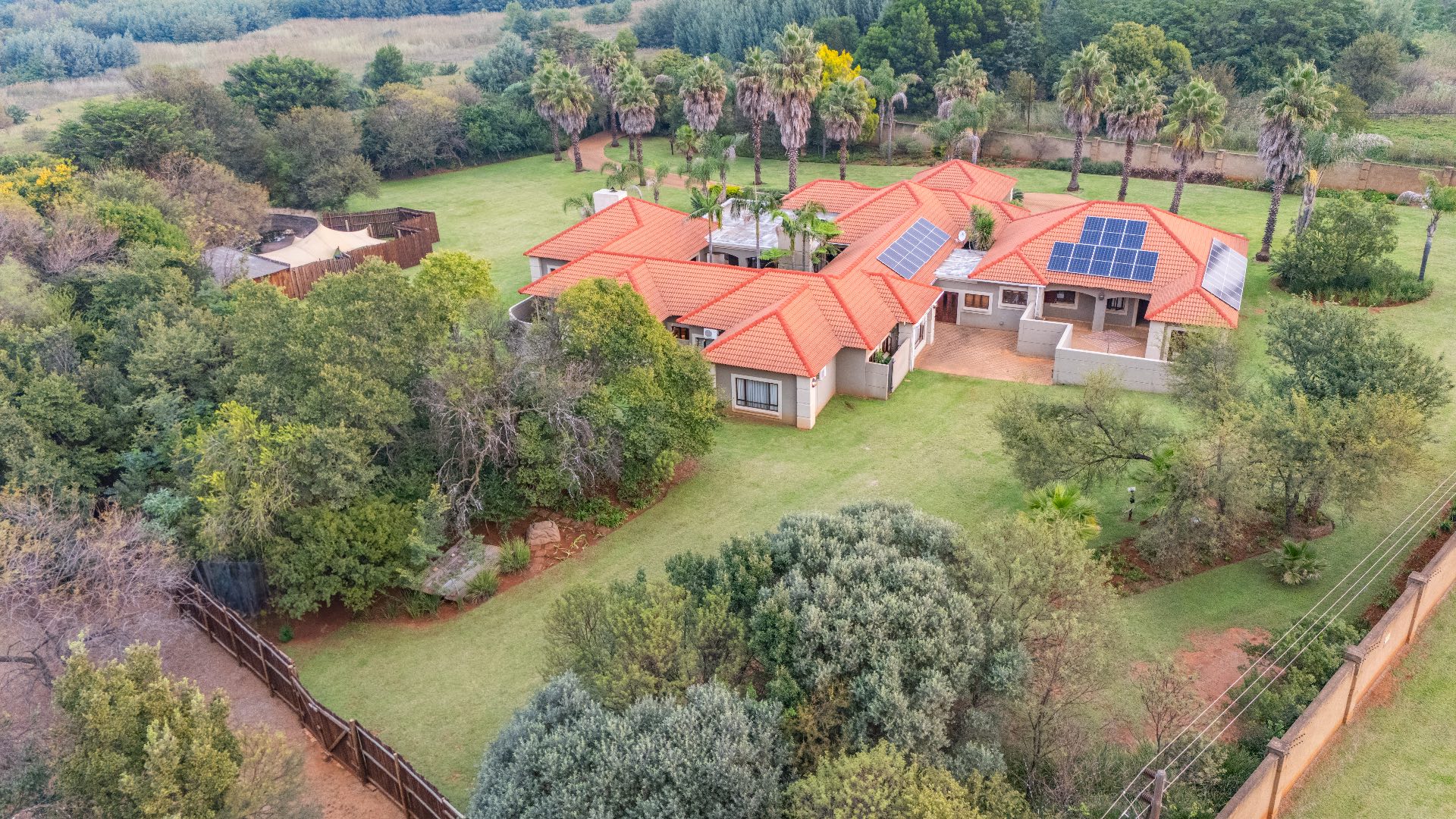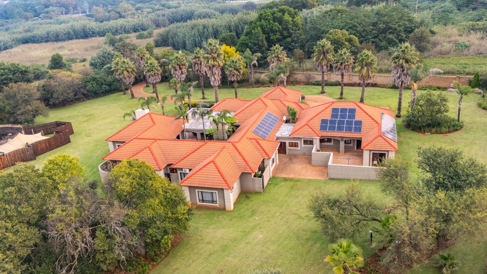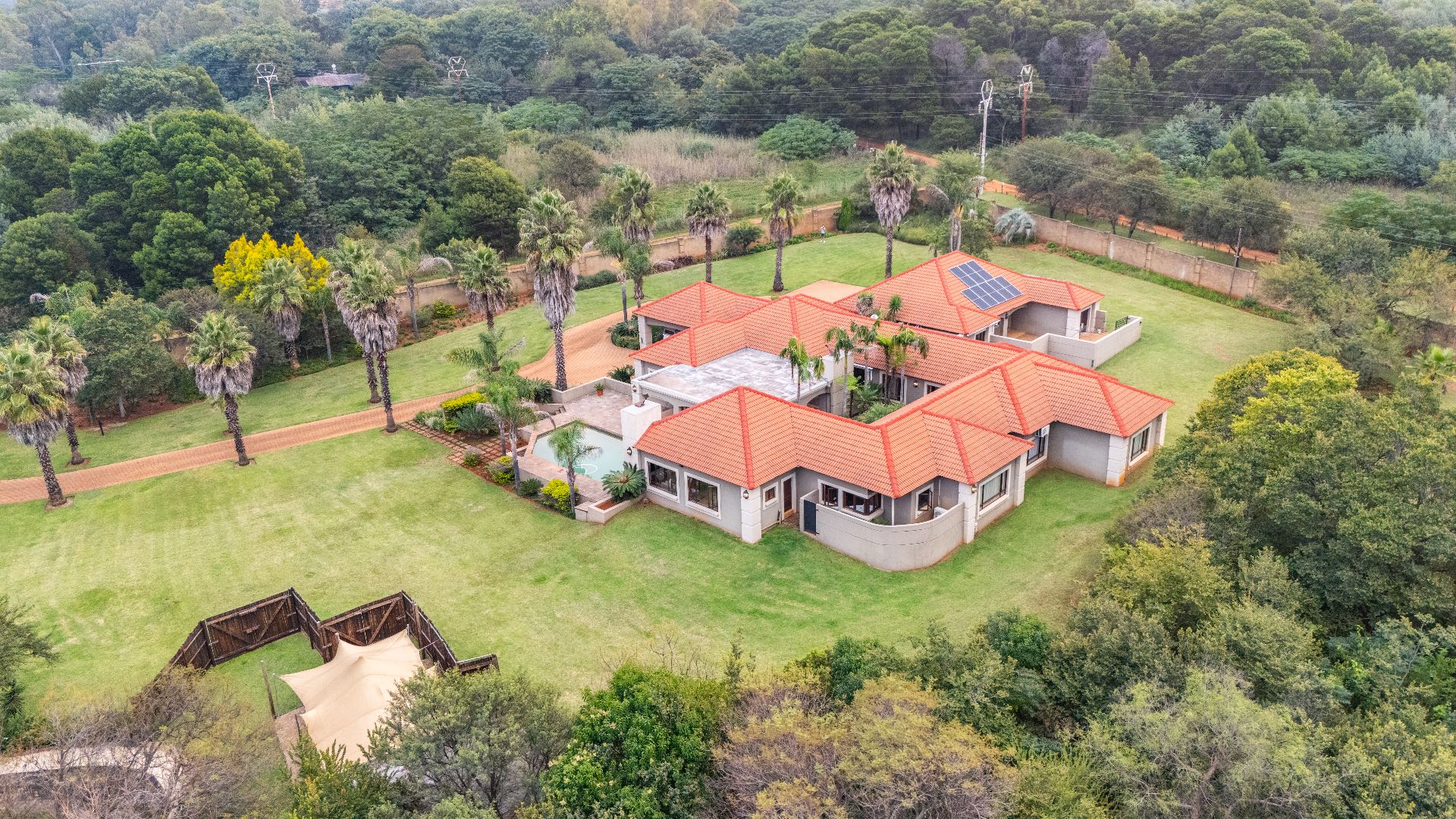 Set within a secure, landscaped 1-hectare enclosure with aesthetic high perimeter walls, the meticulously designed 800 m² residence epitomizes elegant country living with contemporary comfort.
