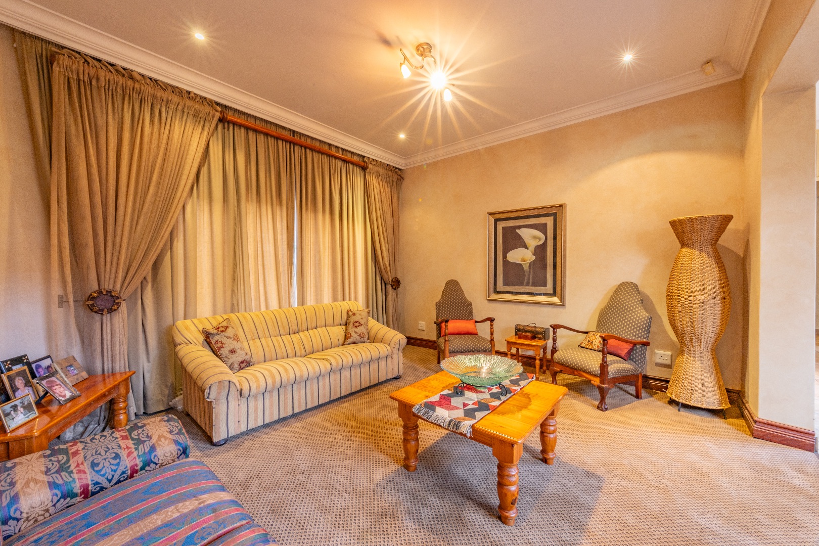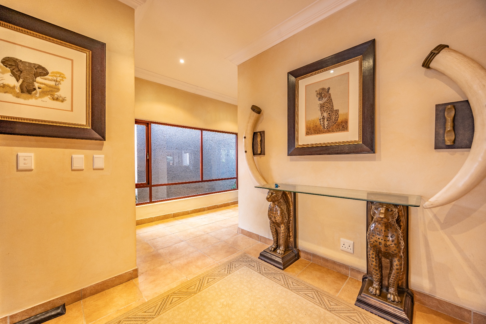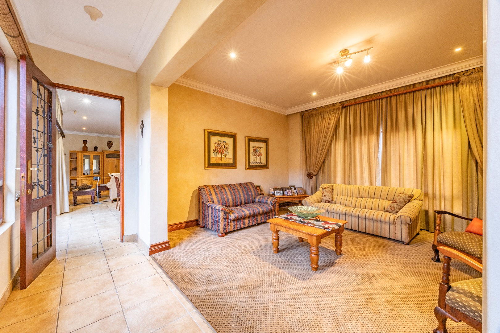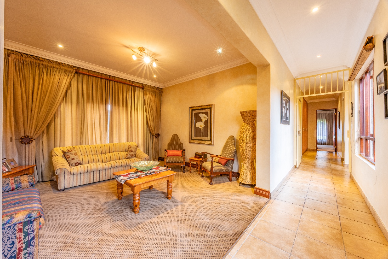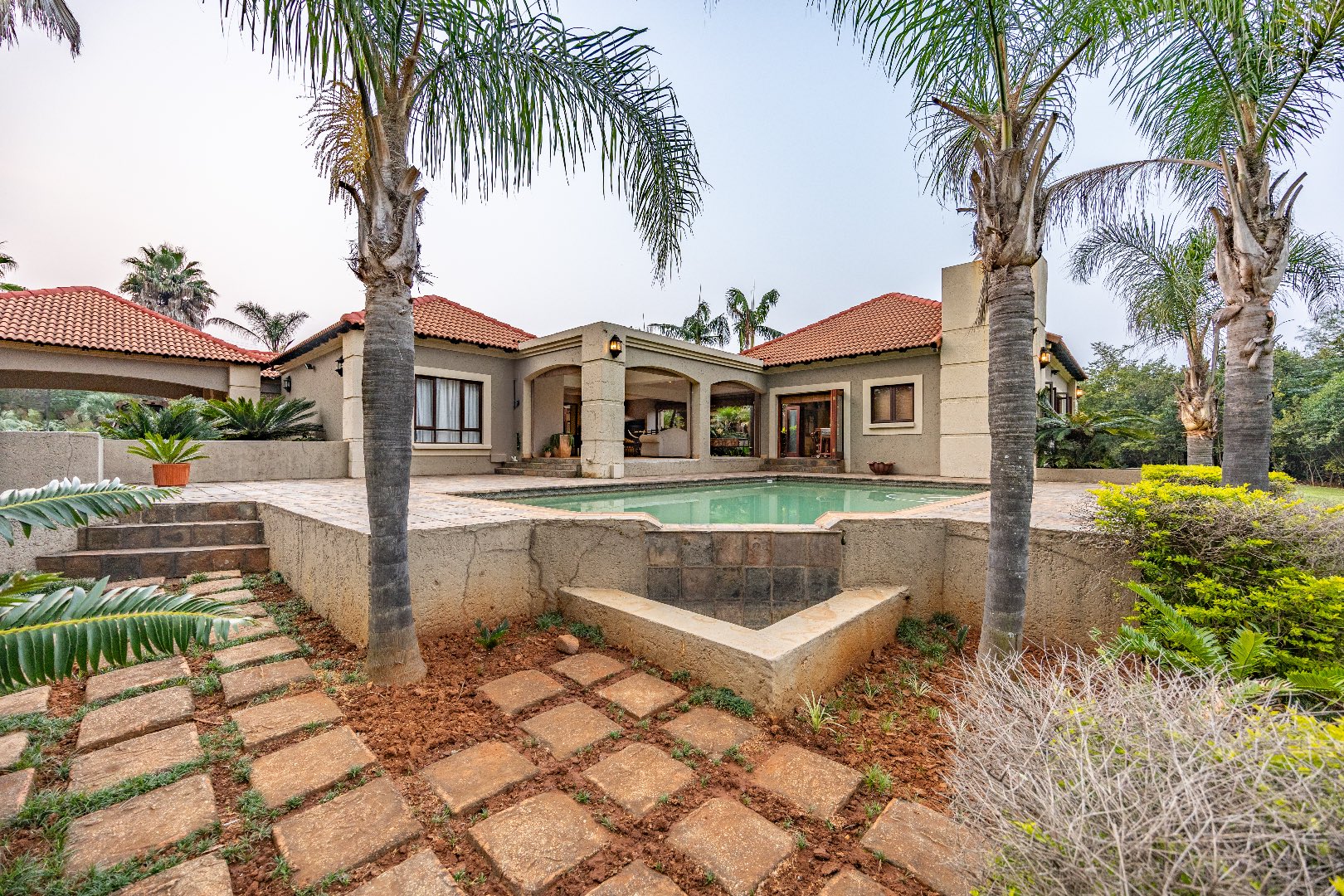 Set within a secure, landscaped 1-hectare enclosure with aesthetic high perimeter walls, the meticulously designed 800 m² residence epitomizes elegant country living with contemporary comfort.