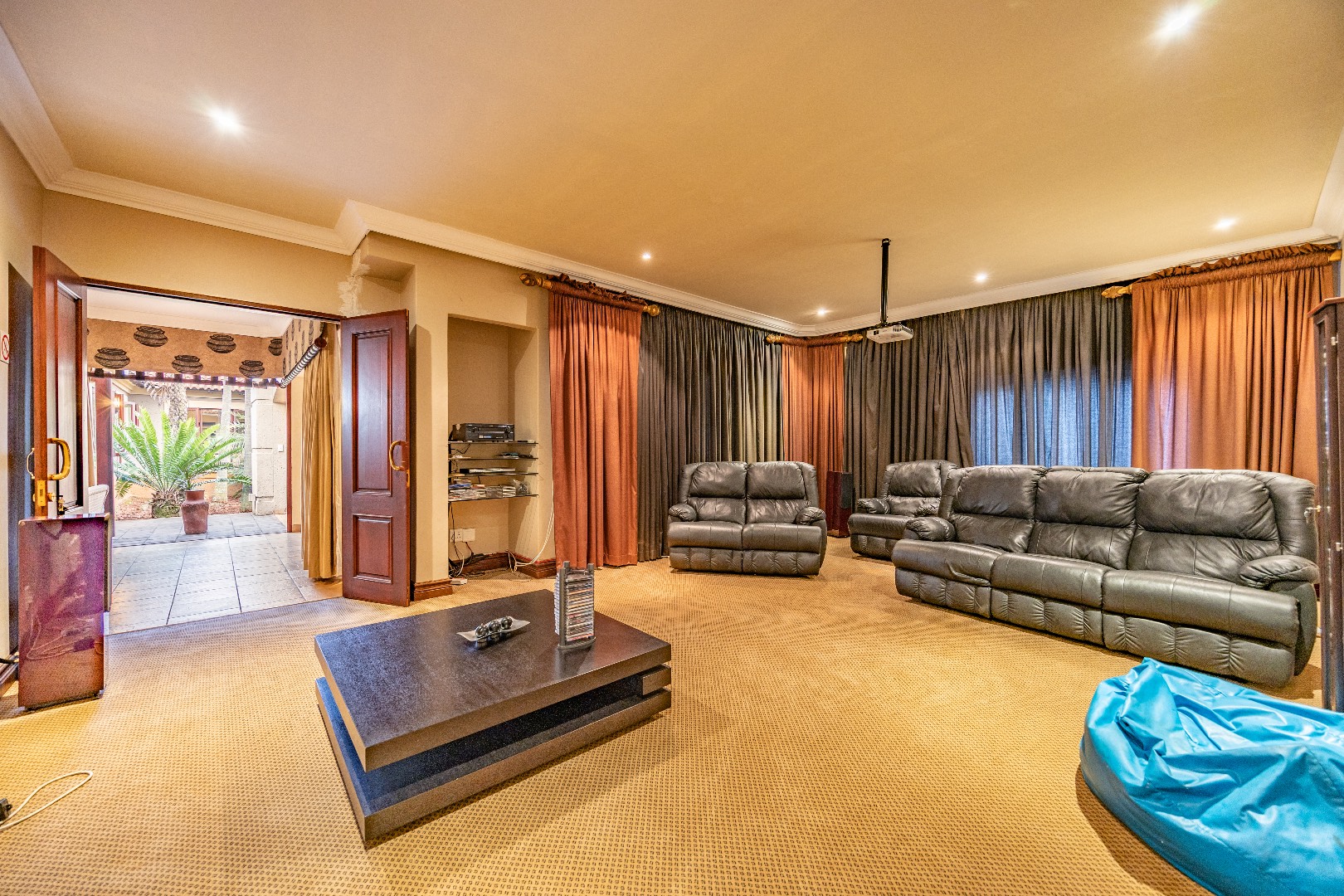 This entertainer’s dream home features four spacious bedrooms, each with luxurious en-suite bathrooms and large windows that fill the interiors with natural light. The open-plan living areas, enhanced by wide stack doors, seamlessly connect to an expansive patio and entertainment area — complete with a built-in bar, poolside toilet facilities, and sparkling swimming pool. A fully equipped cinema room provides the ultimate private viewing experience.