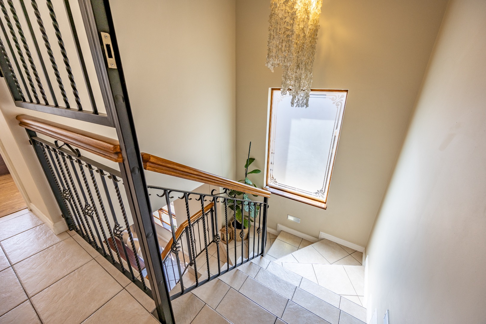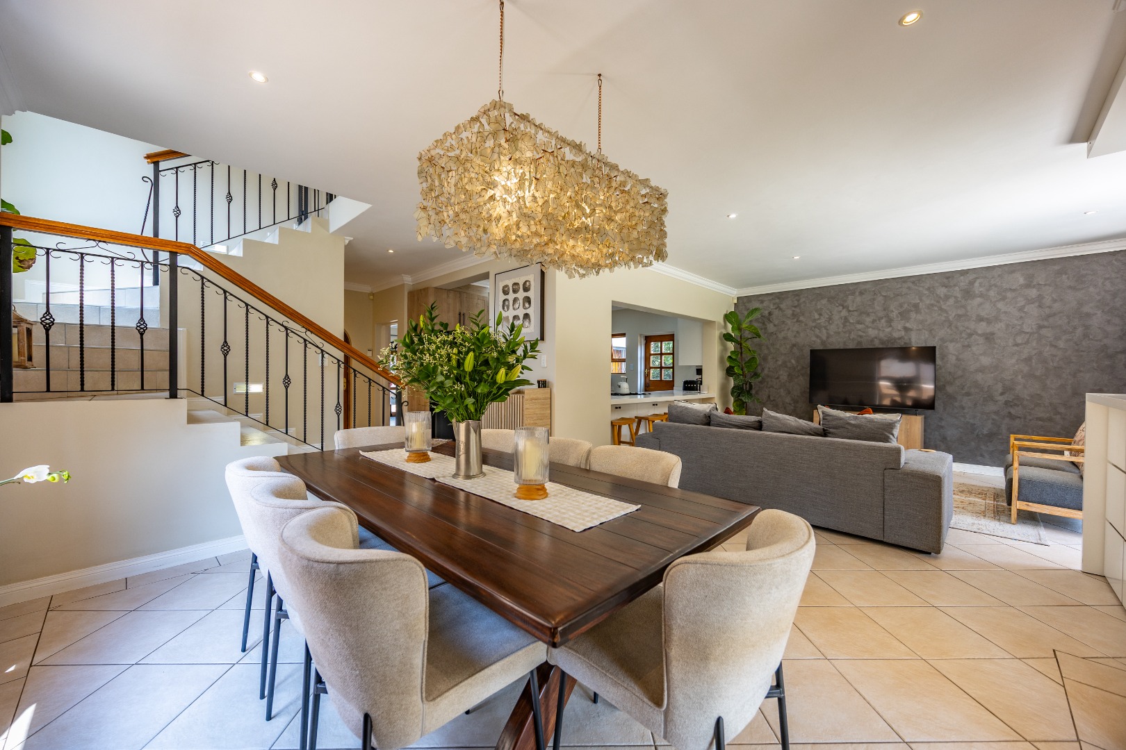 Luxury touches include bespoke chandeliers by Stephen Pikus in the stairwell and dining room, adding unique elegance to the home.