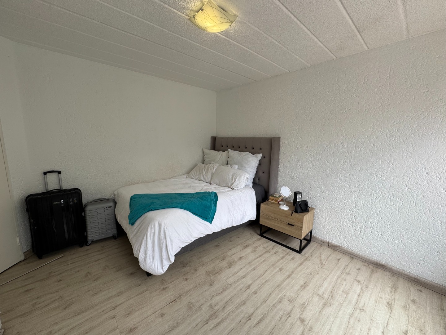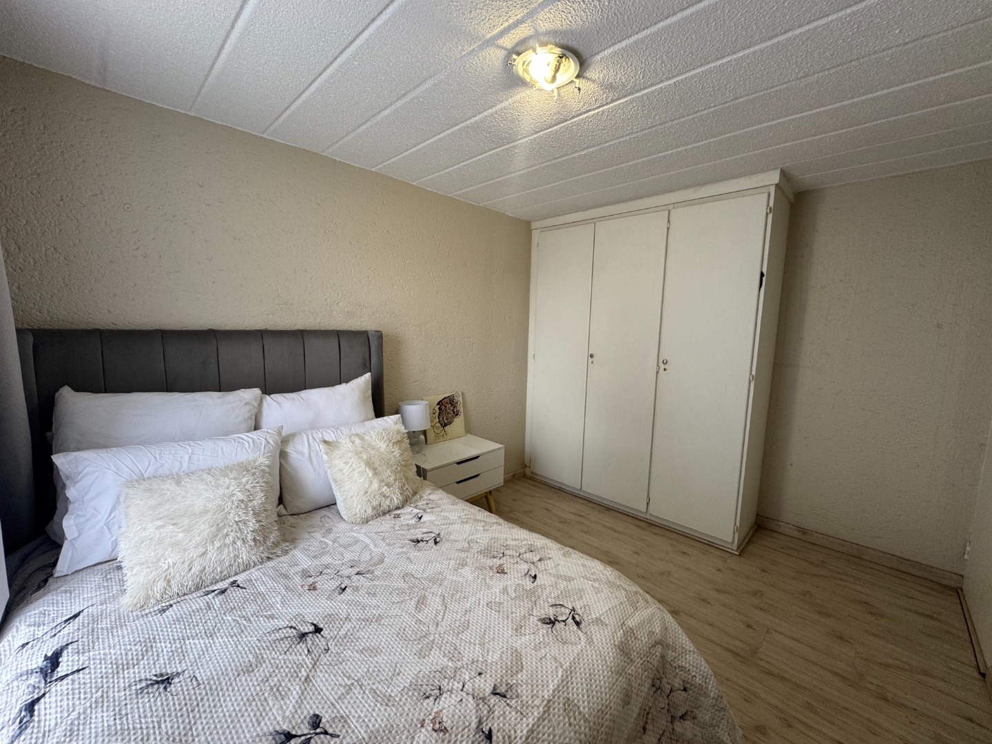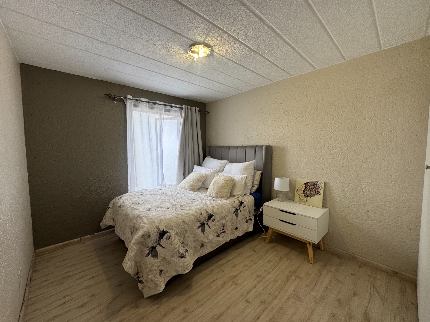 Discover modern living in this inviting 2-bedroom, 1-bathroom apartment located in the desirable Sandown suburb of Sandton, South Africa. The complex features a contemporary grey exterior set amidst lush, mature gardens, offering a serene environment within a vibrant suburban setting. Step inside to an open-plan living and kitchen area, designed for contemporary comfort with sleek tiled flooring and abundant natural light. The modern kitchen boasts stylish grey cabinetry, dark granite countertops, a white subway tile backsplash, and integrated appliances including an oven, hob, and extractor fan. A dedicated workspace is thoughtfully incorporated. The apartment offers two comfortable bedrooms, each finished with modern laminate wood flooring and neutral walls. One bedroom benefits from direct access to a private balcony. A well-appointed bathroom serves both bedrooms. Residents will appreciate the secure complex environment, featuring an access gate and security post. The property includes one dedicated parking bay. Fibre connectivity ensures high-speed internet access. Key Features: * 2 Bedrooms, 1 Bathroom * Open-plan living and kitchen * Modern kitchen with integrated appliances * Laminate and tiled flooring * Dedicated workspace * Private balcony access * Fibre ready * Secure complex living * 1 Parking bay