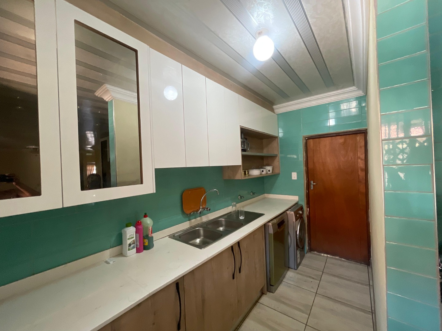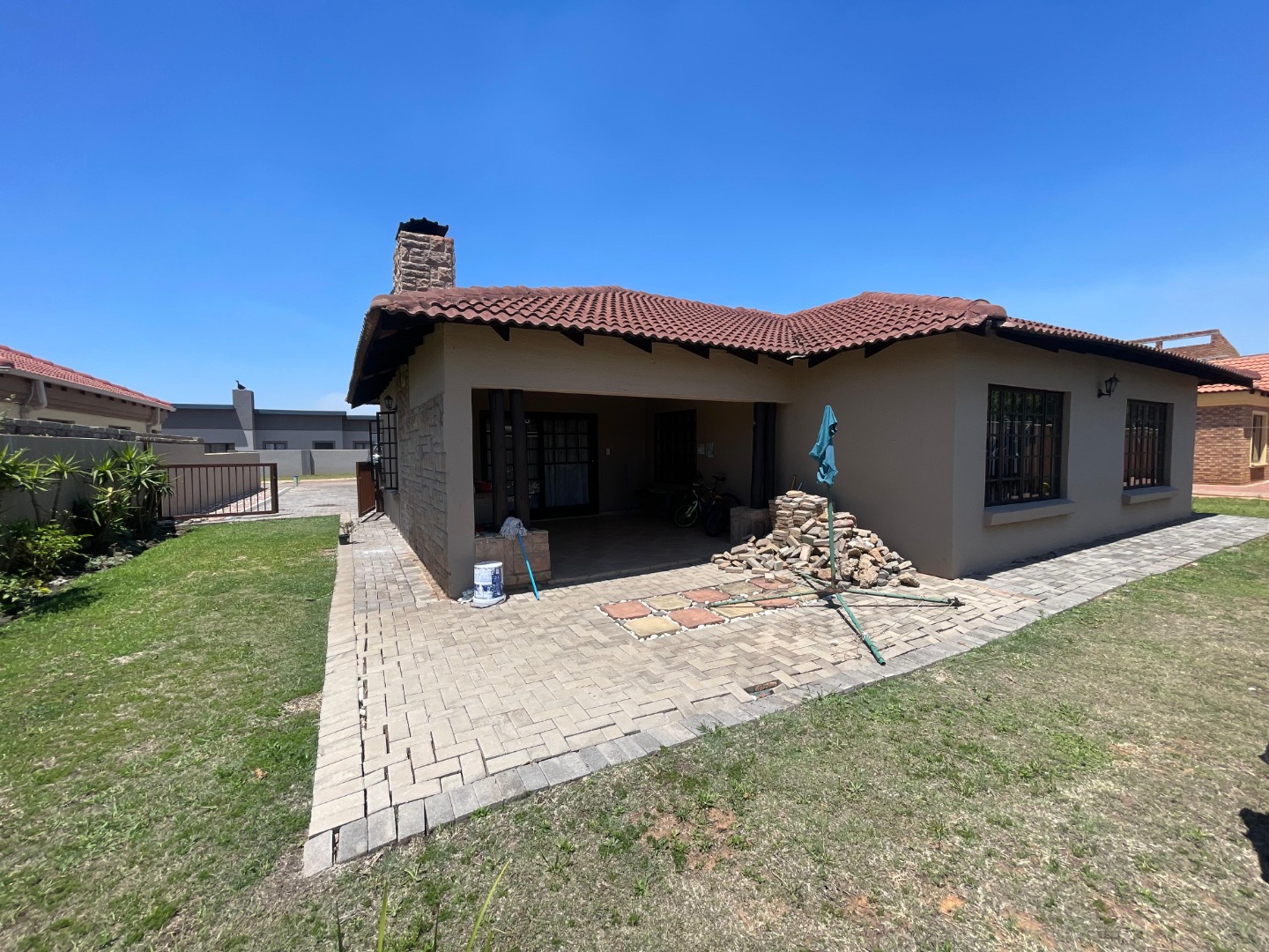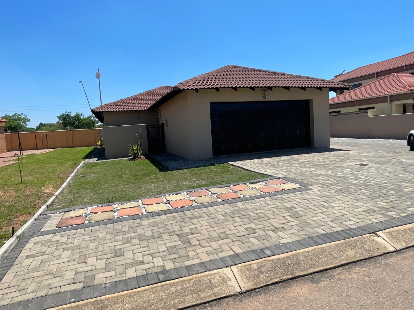 Discover this inviting 3-bedroom, 2-bathroom family home situated within a secure golf estate in Akasia, Pretoria North. The property immediately impresses with its well-maintained exterior, featuring a classic terracotta tiled roof and a spacious paved driveway offering ample parking for up to four vehicles, including a double garage.