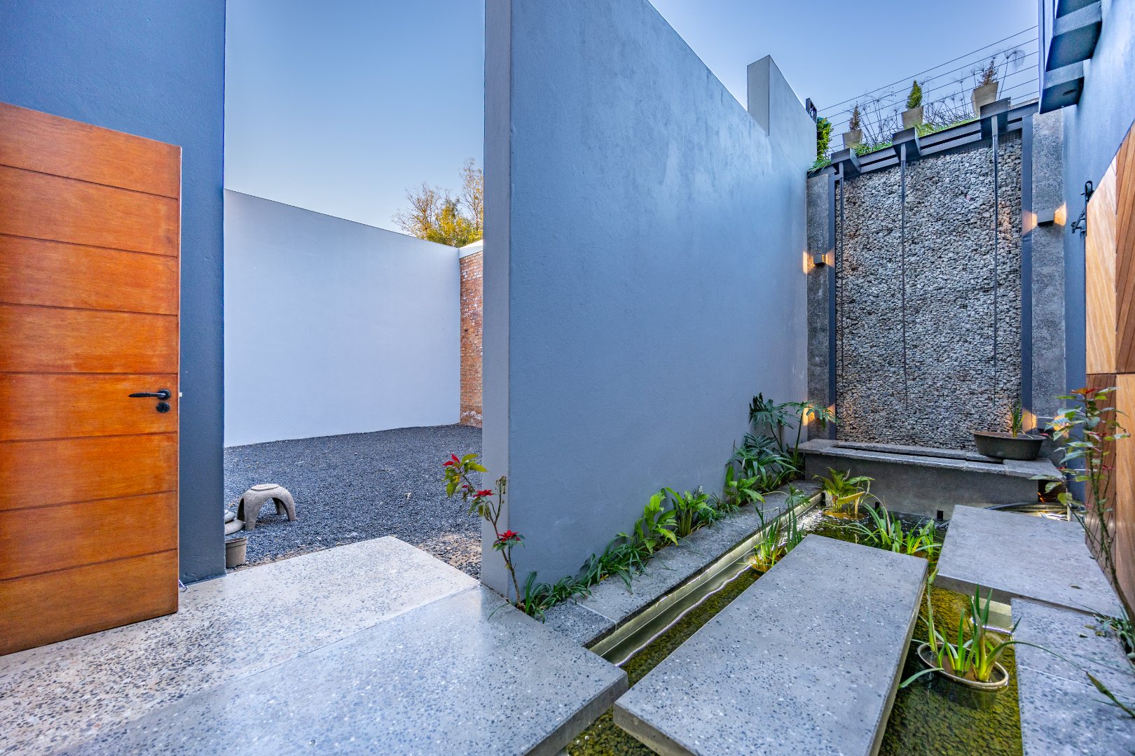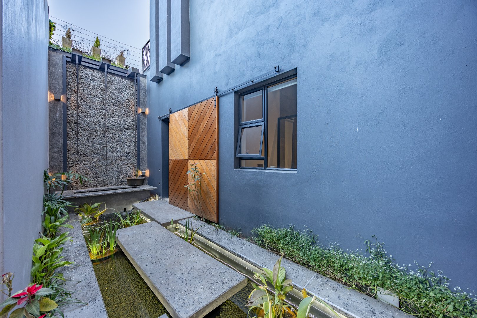 As you enter the home, you're welcomed by a serene fish pond at the front door — a peaceful feature that sets the tone for what lies beyond. The entrance opens into a thoughtfully designed layout that flows seamlessly across all three levels.