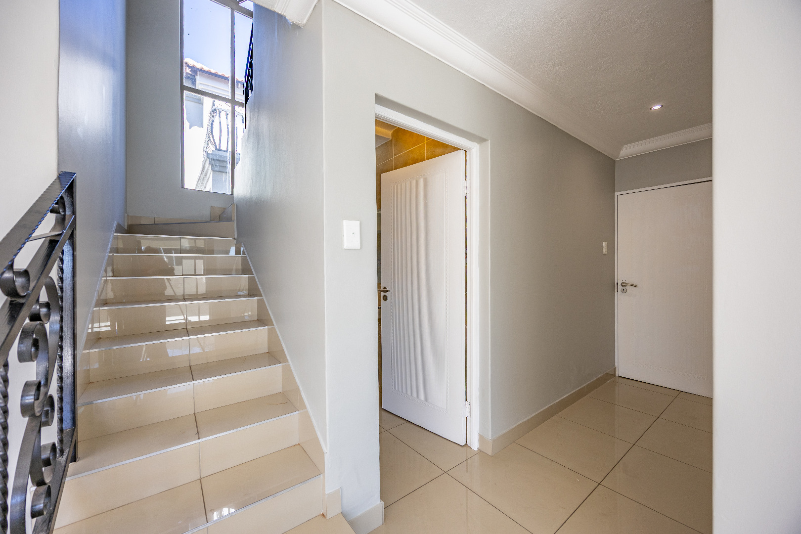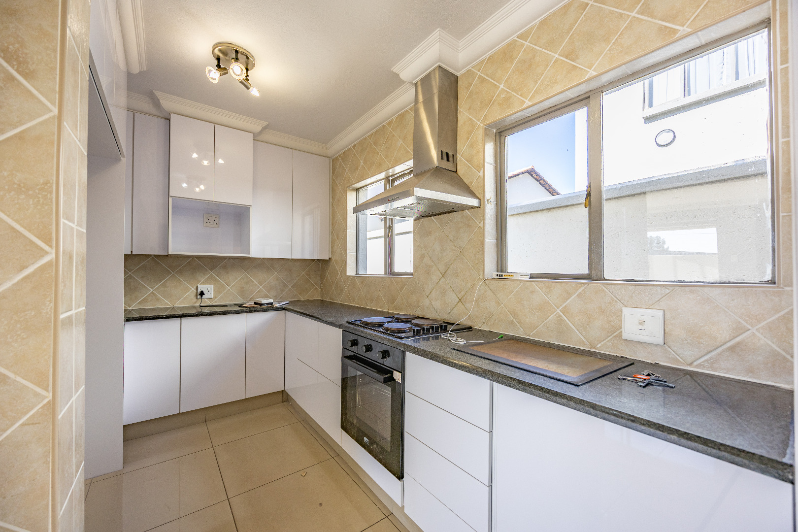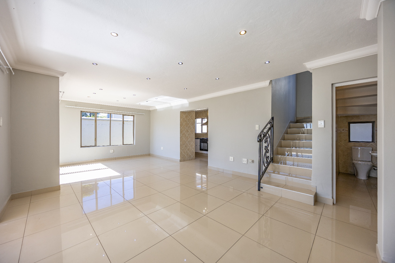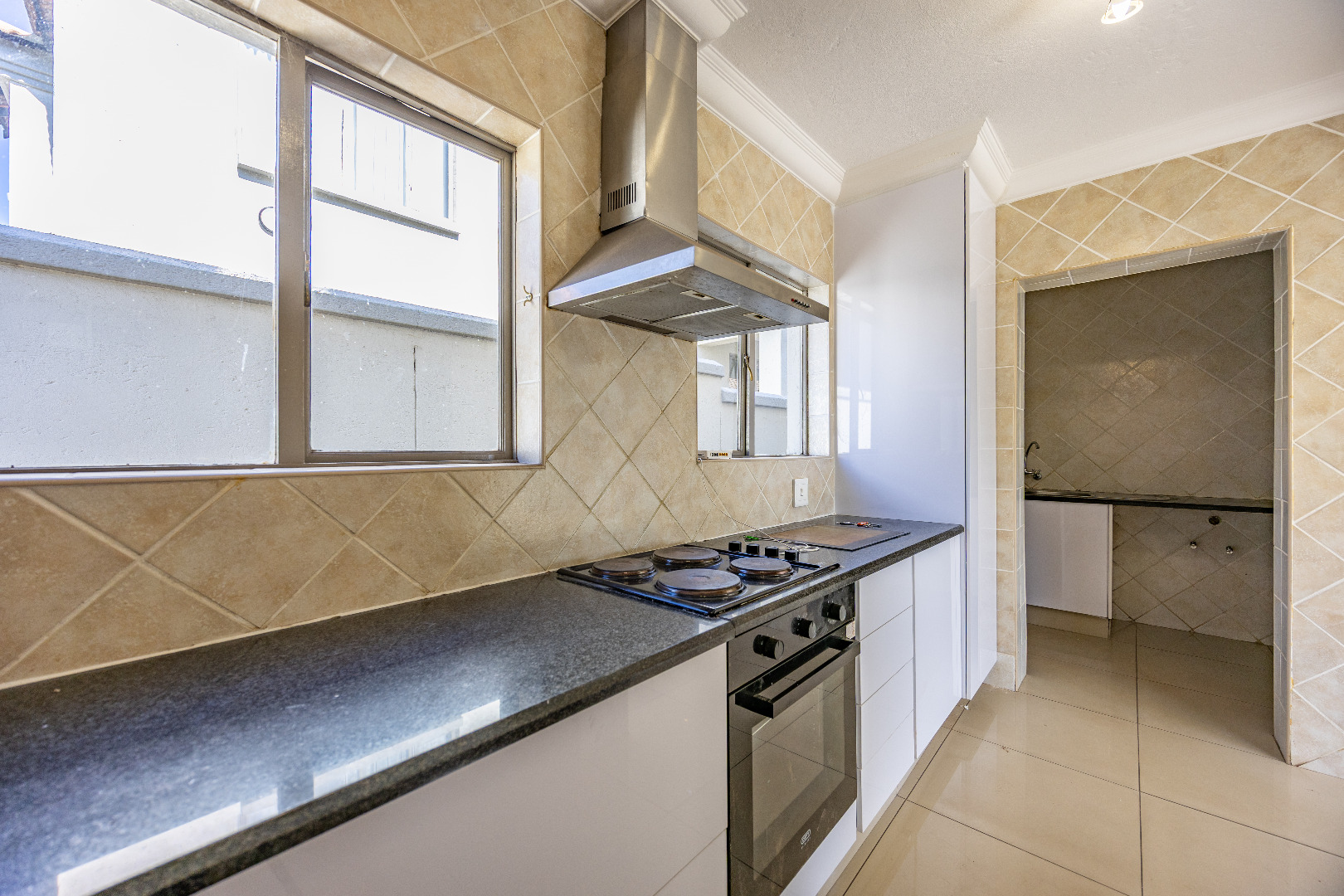This charming 4-bedroom duplex offers generous space and practical features, ideal for family living. The open-plan kitchen includes a separate scullery with space for two appliances and accommodates a double-door fridge. The layout flows into the spacious living and dining area, complemented by a guest bathroom and direct access to the garage for added convenience.