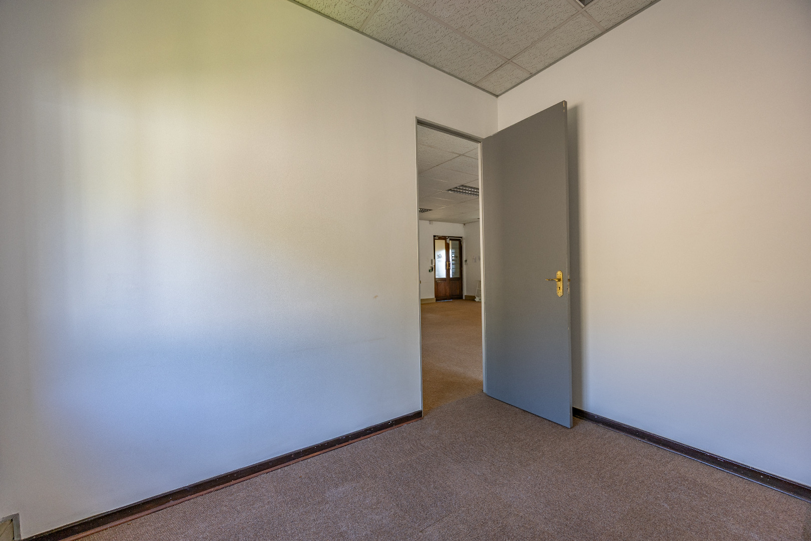 The office spans approximately 130 m² and includes a neatly fitted kitchen and two restrooms. First-floor offices enjoy a private balcony with views of the surrounding park. The layout allows for flexible configuration, making it suitable for open-plan workspaces or more private office divisions.