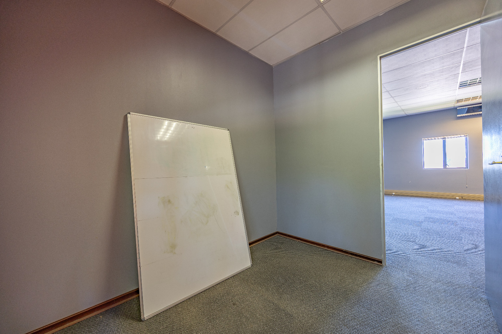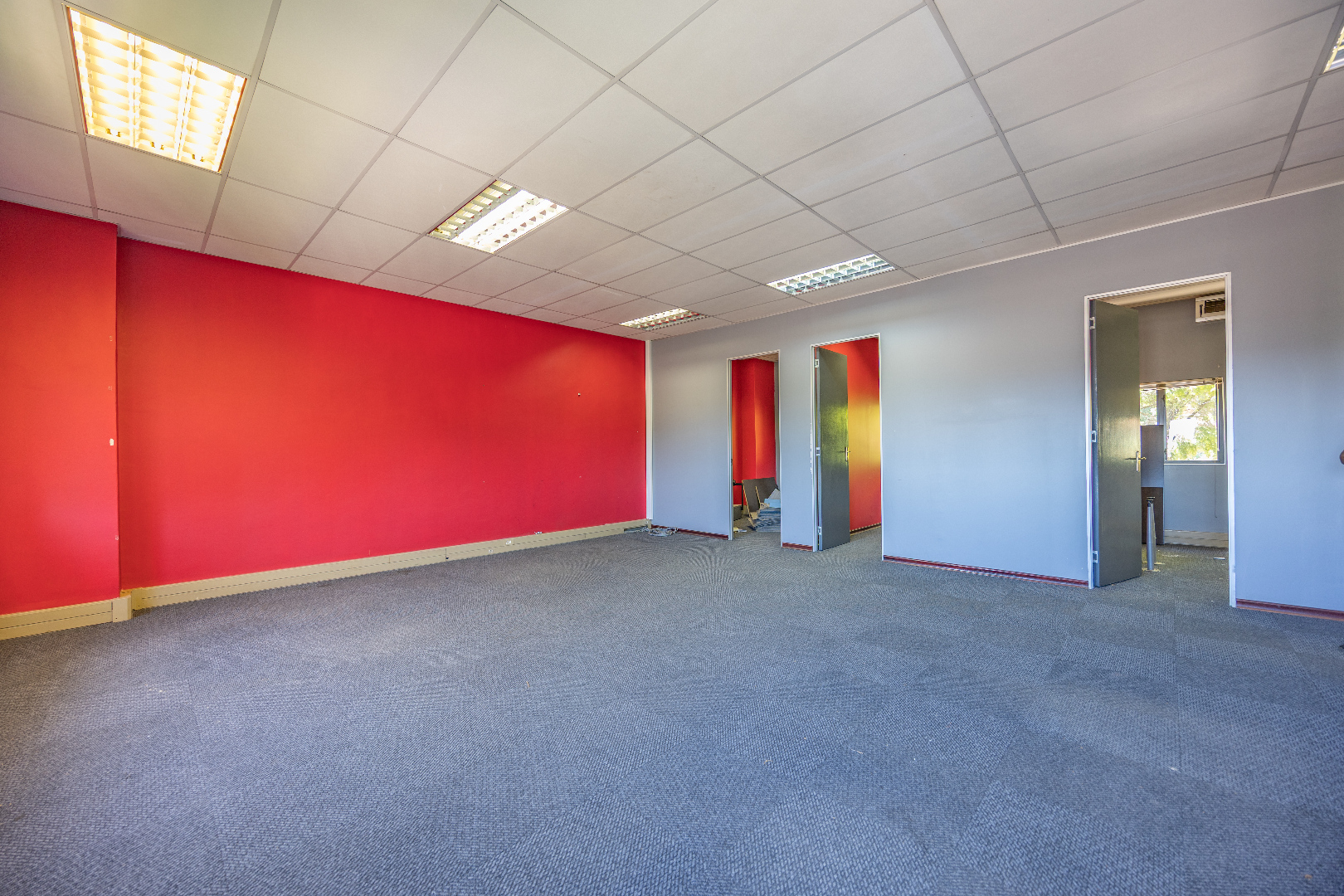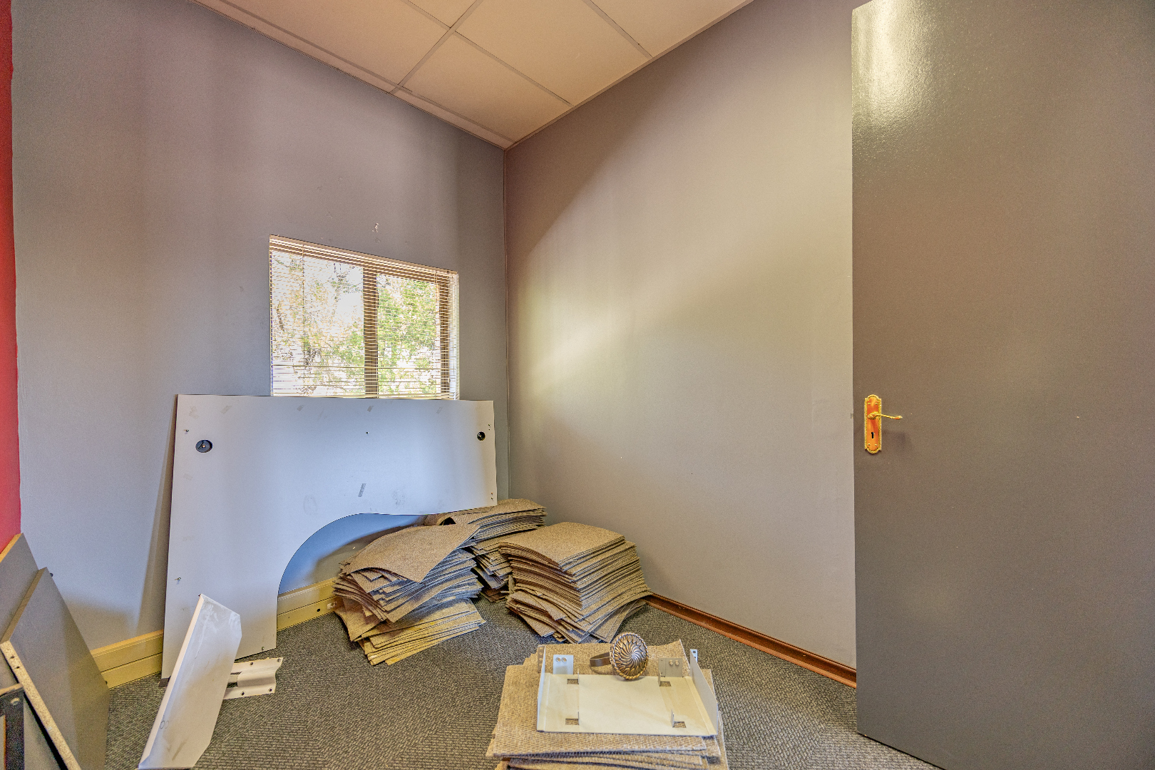 Safety and peace of mind are ensured through 24-hour on-site security, CCTV monitoring, and controlled access at all entry points. The office park is further protected by an electric fence, entry booms, and roller shutters that are secured each evening. The unit itself is equipped with an alarm system, Trellidor gate, and security gate at the rear door. Tenants also enjoy access to a shared entertainment area fitted with a built-in braai, TV, sound system, and catering facilities — ideal for staff functions or business events.